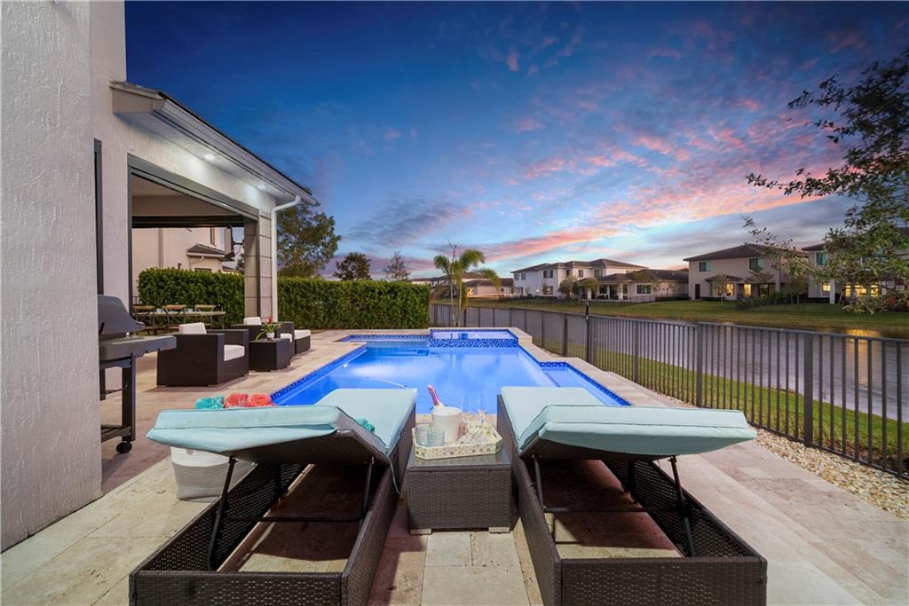 Upgraded & Contemporary 5 Beds + Huge Loft, 4 Baths Dream Home On Cul-De-Sac! Resort Style Patio Area w/Upgraded Pool & Heated Spa, Extended Paveres w/Retractable Screens Perfect For Entertaining & Taking In Amazing Sunsets! Fenced-In Yard Ideal For Your Children! Open Floor Plan, One Full Bed & Cabana Bath Downstairs, On-Suite Bed & Bath w/Balcony Upstairs. Loft Perfect For Cinema Or Game Room, Gym Area, Or Office. Impact Windows/Doors, Custom Window Treatments, Built-In Closets, Large Family Room, Spacious & Modern Kitchen w/Island, Quartz Counters, Stainless Steel Appliances, Oversized Private Primary Bed w/Sitting Area, Walk-In Closets, Luxurious Bath w/Separate Tub & Shower, A-Rated Schools, Guard Gated, 2 Resort-Style Clubhouse Amenities, Better Than New Construction! HURRY!