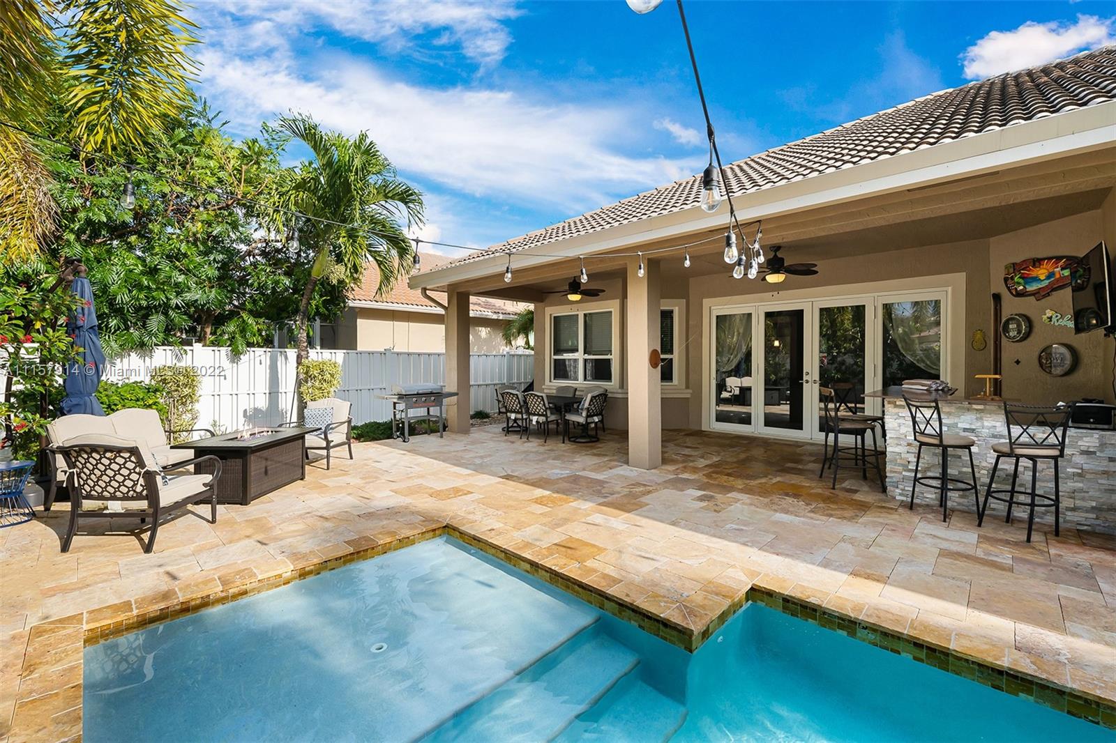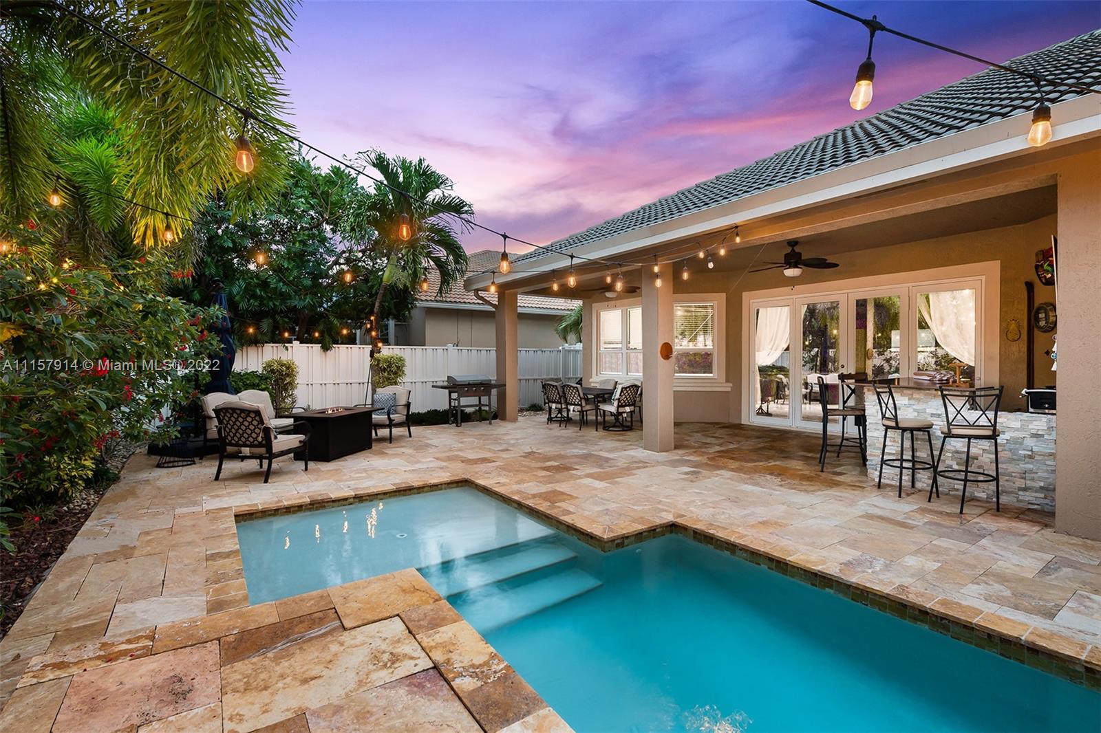 Fantastic opportunity to own this beautiful, updated home in highly sought-after Grand Reserve. This 4-bedroom 2-bathroom home is move in ready. Enjoy this beautiful backyard that is perfect for entertaining with a built in bar and oversized pool. BRAND NEW kitchen with quartz countertops, double ovens and large island. This move in ready home has impact windows and a NEW ac. Walking distance to the Community pool, clubhouse & playground. Close to Top-Rated Schools, shopping, dining & Sawgrass. 4th Bedroom has been converted to a Den, easy to convert back.
