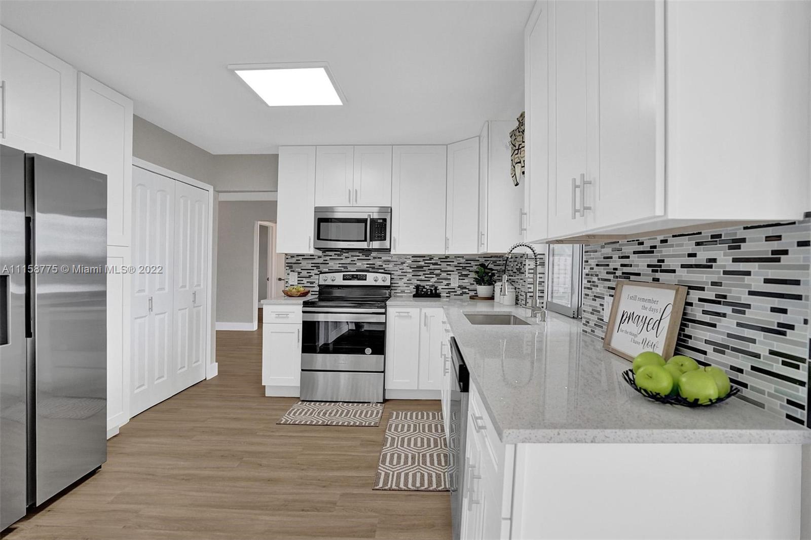 Gorgeous super spacious 2beds/2baths + 1 car garage + flex space for 3rd bedroom. Extensively Remodeled, over 90K in recent upgrades (2021-2022). Nestled away on a quiet street overlooking a breathtaking lake. ALL AGES, NO HOA! Features Brand New Roof, New AC, New Gas water heater, New gourmet kitchen with white shaker cabinets, quartz countertops, glass backsplash & stainless steel appliances. New waterproof laminate floors throughout. Tastefully remodeled bathrooms, walk-in closet with custom built-ins. Custom window treatment. High-end fixtures throughout. New Hurricane garage door, Accordion shutters. Huge backyard, room for a pool, great for entertaining. Large remodeled shed. Upgrades are too many to list. Perfect location, close to shopping, entertainment and highways. Hurry!!!