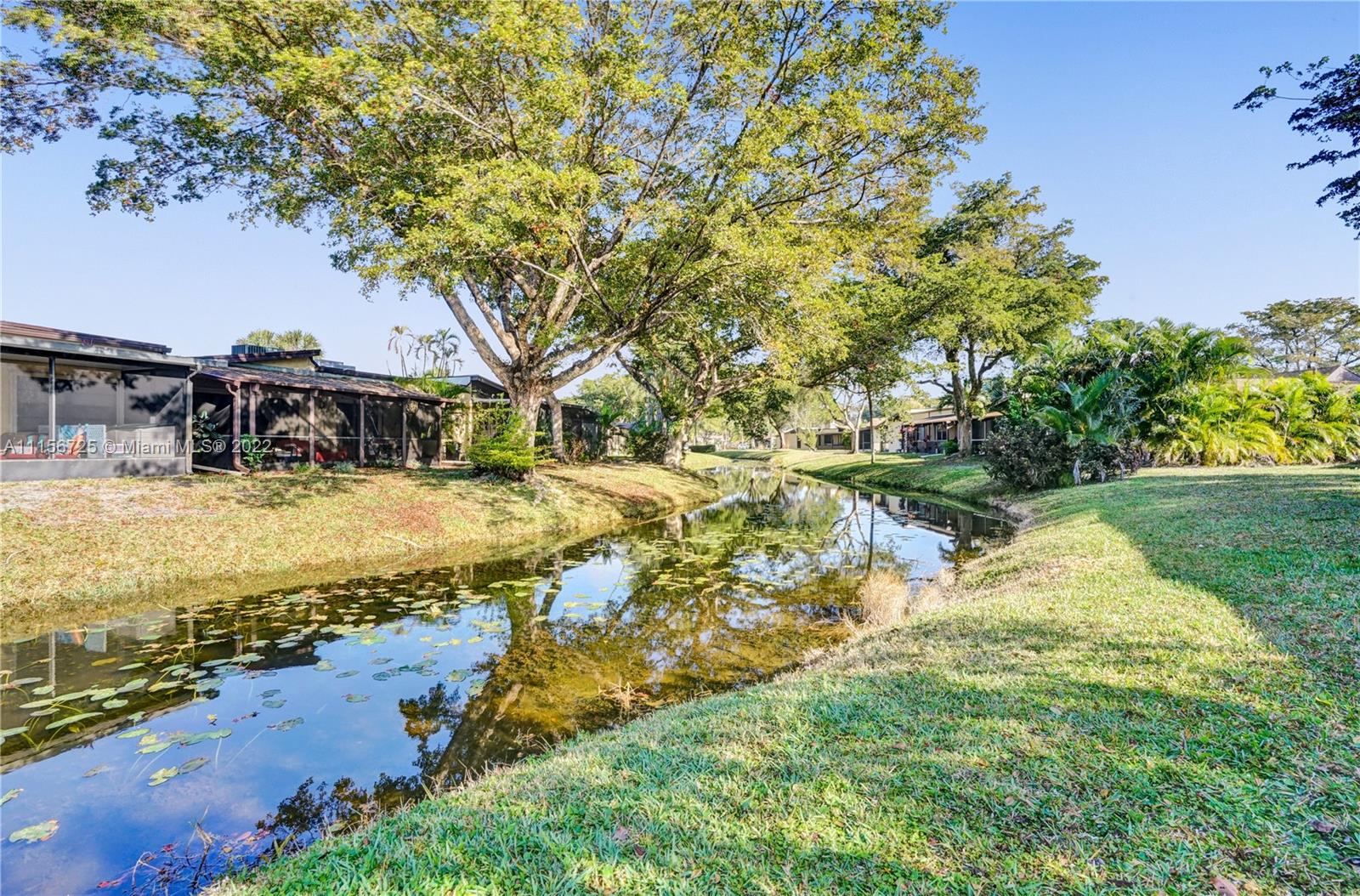 Make this beautiful, move-in ready villa yours today. Located in the revered gated community of Carriage Hills - a 55+ community! Incredible vaulted ceilings with natural wood finish. Tile floors in living area & bathrooms. Tranquil canal views from back patio. Private courtyard entrance. New roof installed in 2019. Short walk to satellite pool & walk around lake to main clubhouse, pool, jacuzzi, tennis courts, exercise room, billiard tables, shuffle board, bocce ball, bingo & bunco nights & more. All furniture is negotiable.