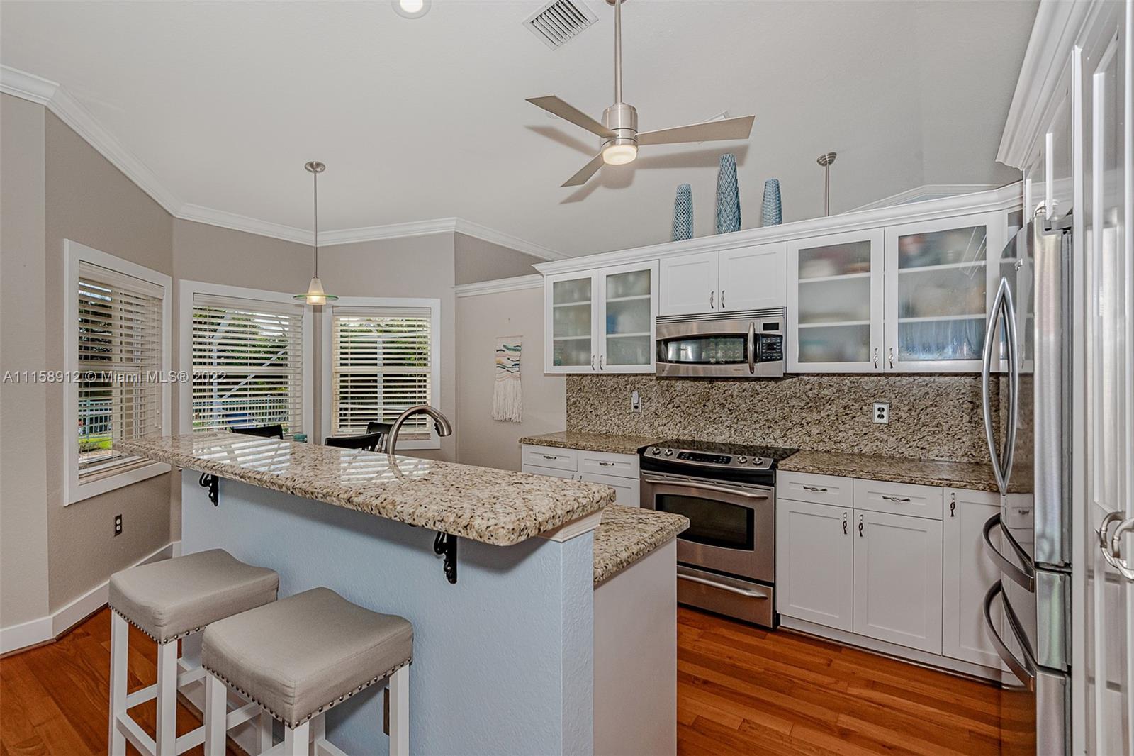 Immaculate 3/2 single family home for sale in the desirable Alhambra gated community. High ceiling in living room, family room, formal dining and breakfast area. Open, updated kitchen with granite countertop. Recently painted all interior rooms, remodeled\new bathrooms, AC updated with new condenser motor, capacitor, and thermostat installed; new water heater and new washer and dryer. Beautiful screened pool with a canal view. The pool has a new tank cartridge system installed and new filter housing. The house is very well maintained and ready to move in with no need for any repairs. Double car garage and beautiful landscaping. Excellent neighborhood.