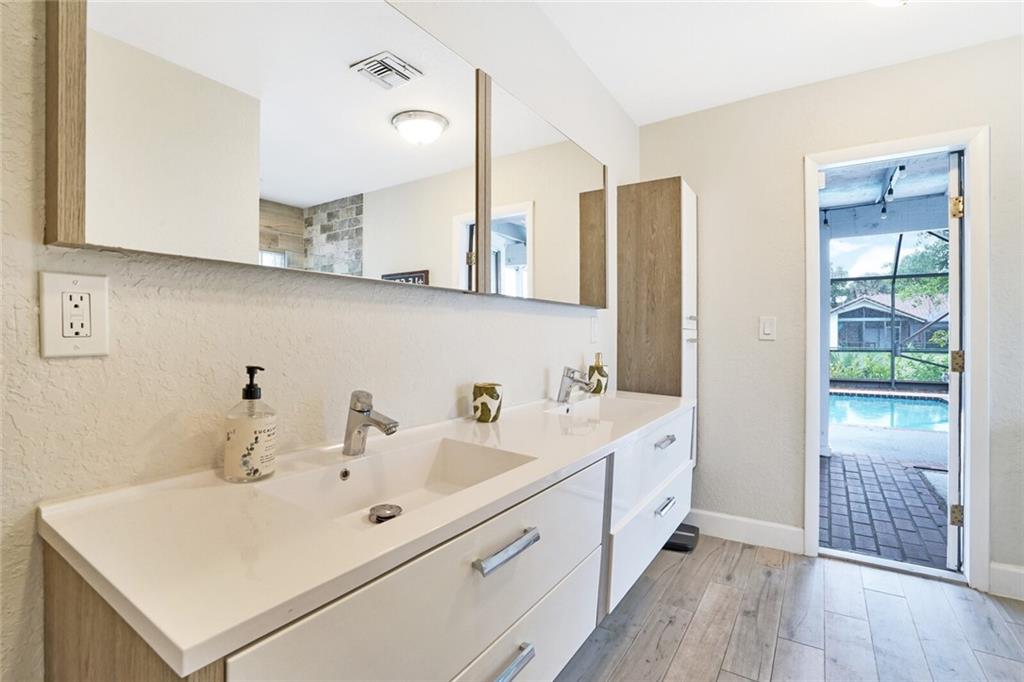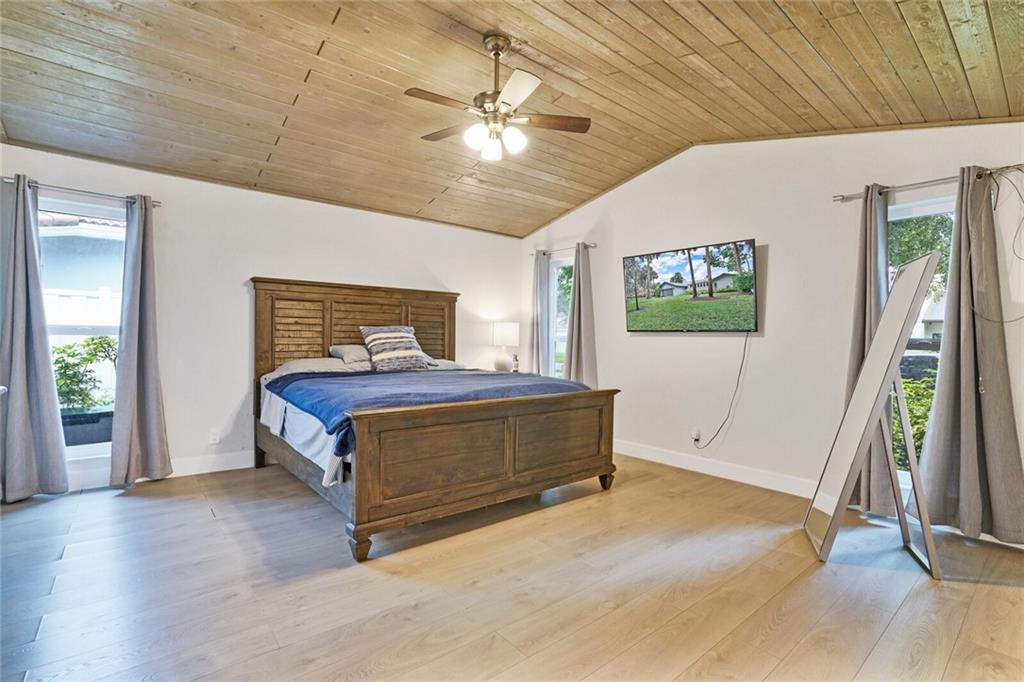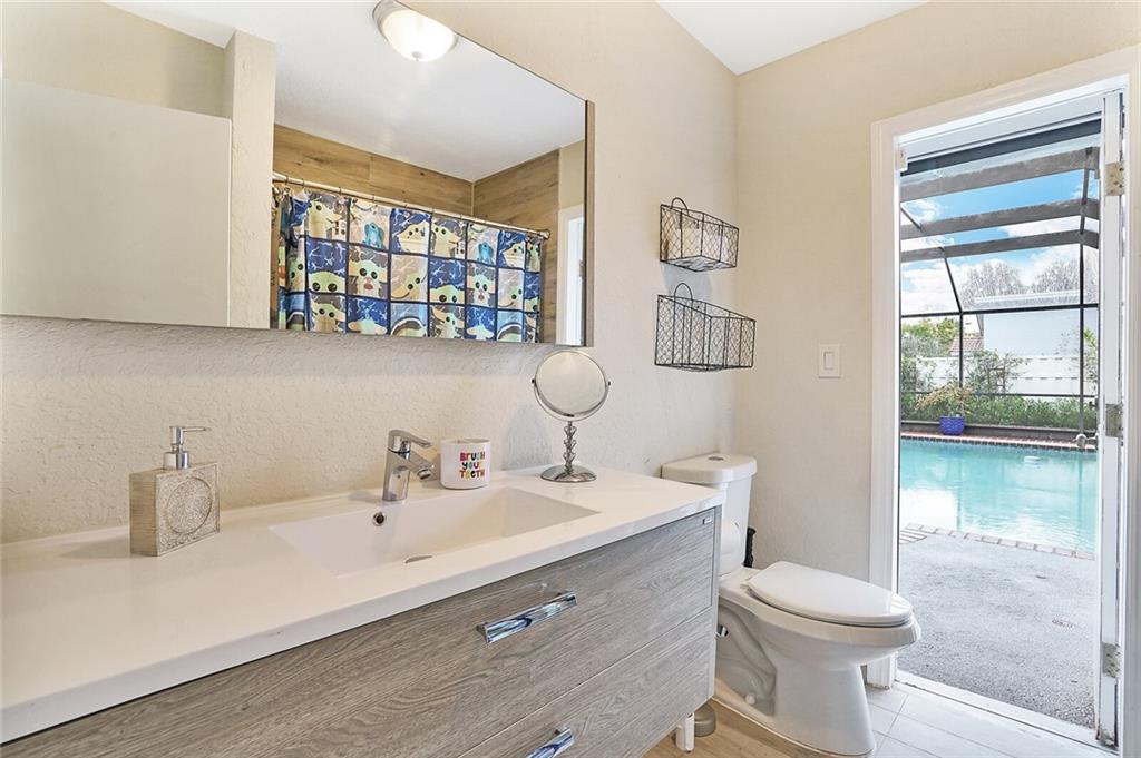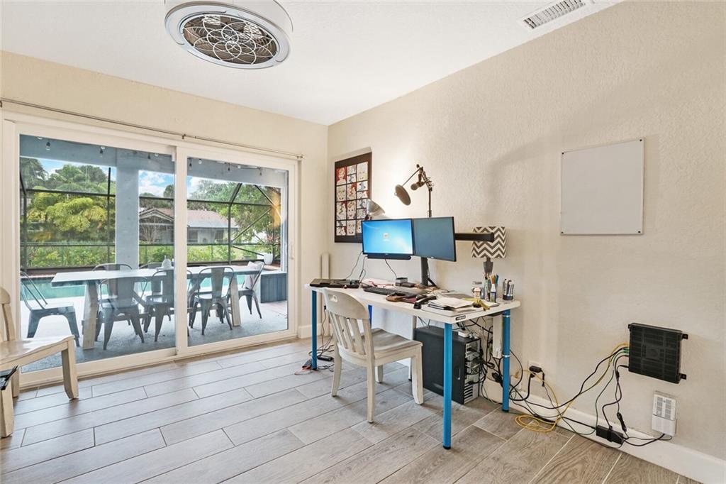 Fully renovated home in the Feathertree (estates) section of the RED HOT Ramblewood! 4 beds + Office. IMPACT WINDOWS & DOORS, everything updated within the last 5 years! Roof 2017, AC 2018, Water Heater 2017, new AC ductwork & insulation! Wood look tile floors throughout the main living area w/ laminate in the bedrooms (no carpet!). Kitchen remodeled with white shaker cabinets, new appliances, and new quartz counters. Tongue & groove vaulted ceilings & wide open floor plan w/ cozy real fireplace. Master bath updated & features beautiful European floating vanities w/ extra storage. Master bathroom has cabana bath door out to the patio & pool. Rare 1/2 bath in the family room. 2nd bath also beautifully updated. Enjoy your peaceful backyard & serene water views in the heart of Coral Springs!
