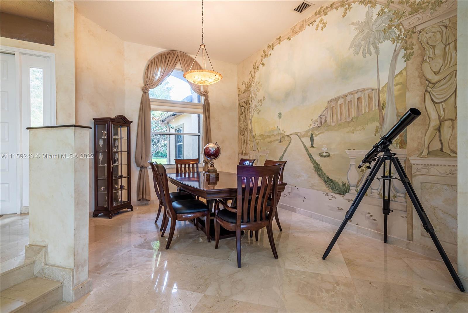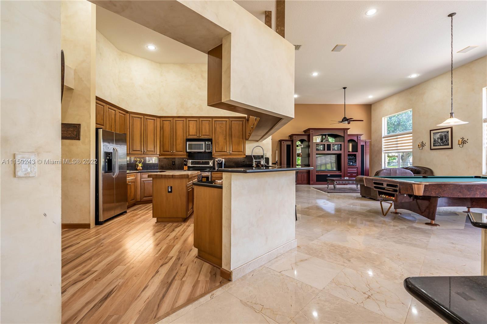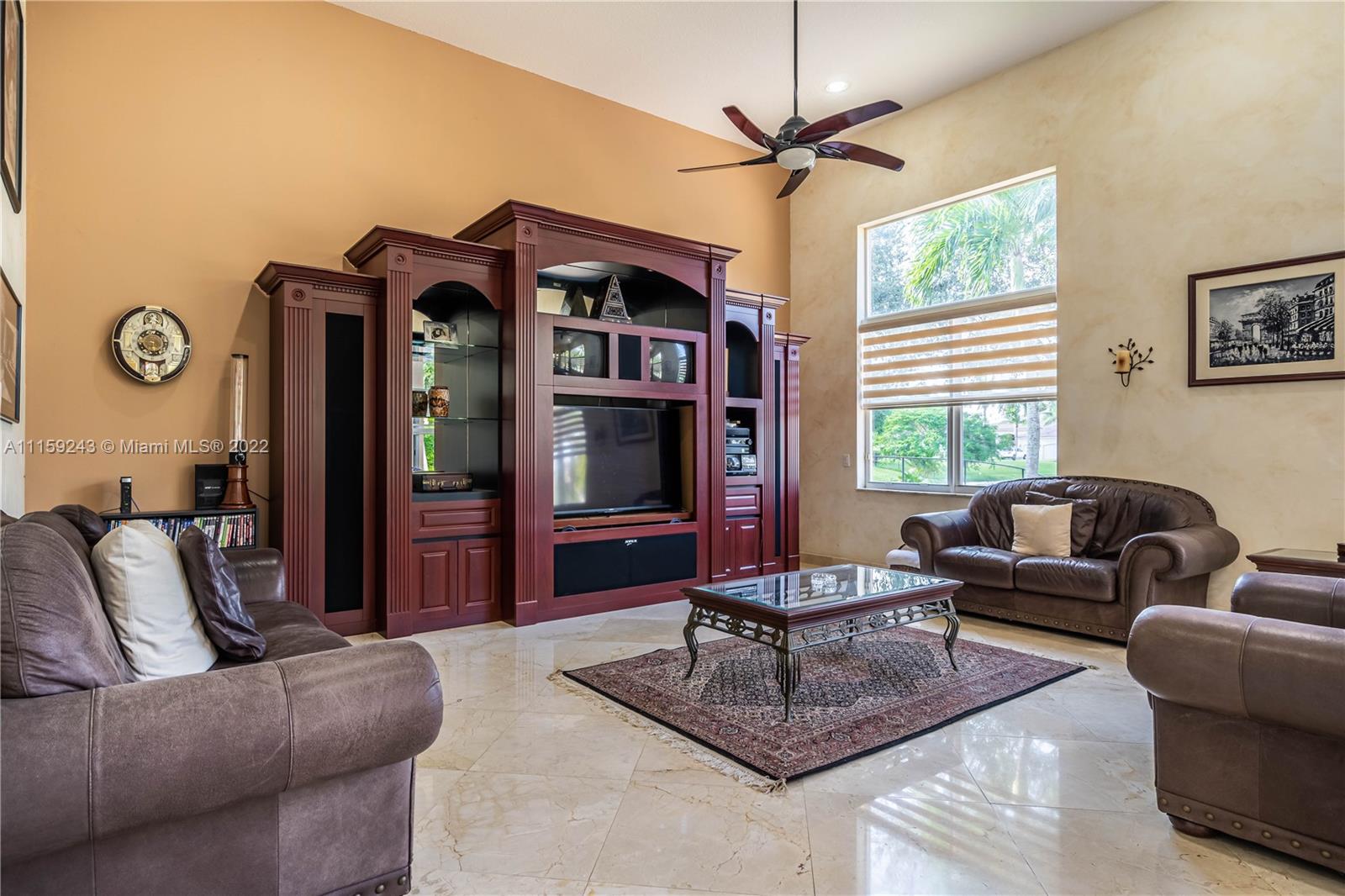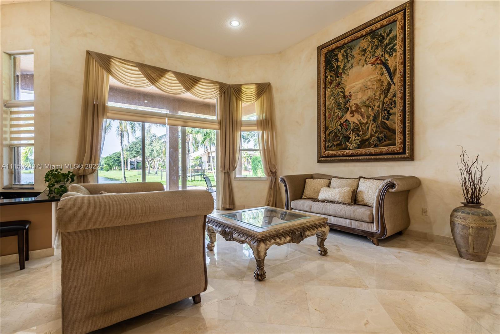 YOUR BEAUTIFUL HOME AWAITS! Spectacular 4/4 (plus 5th room for office/den) with a backyard that boasts an amazing beach entry pool, with a waterfall and massive lake. This lushly landscaped home has privacy in the front of the house, (there is a hill separating the street from Orange Drive) and the back, because of the long lake. Upon entering this home, it showcases soaring ceilings and natural lighting with impressive views of the pool and lake and Stunning Crema Marfil Marble throughout, except the bedrooms. Pool is being completely redone. Home needs TLC and seller is motivated and flexible. Excellent schools. 24 hour notice required.