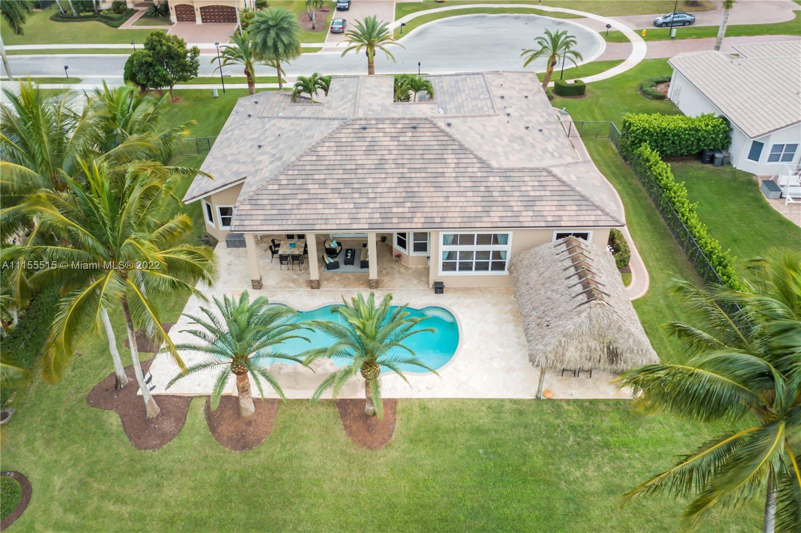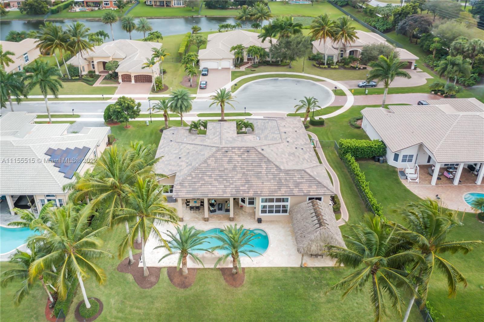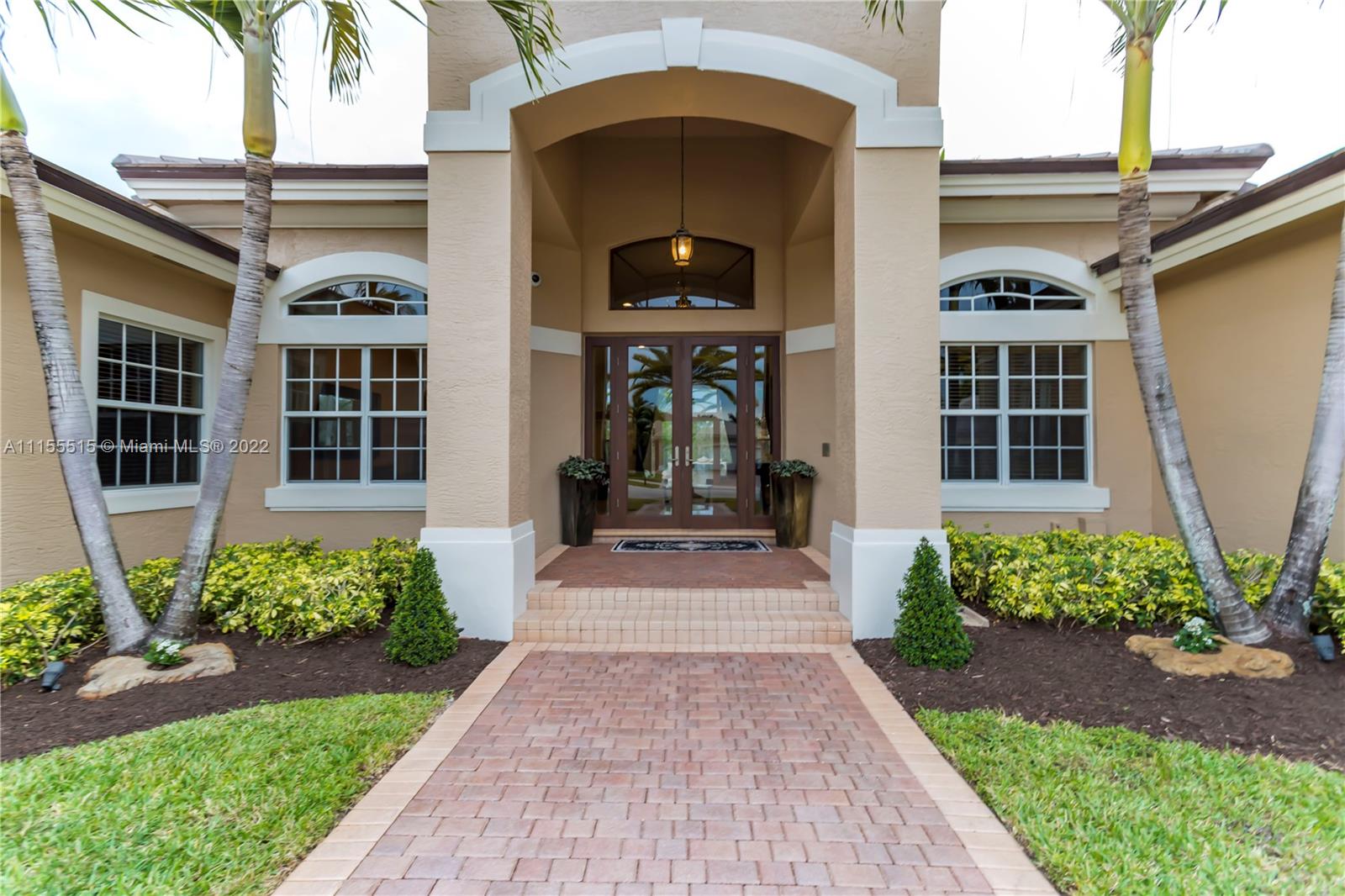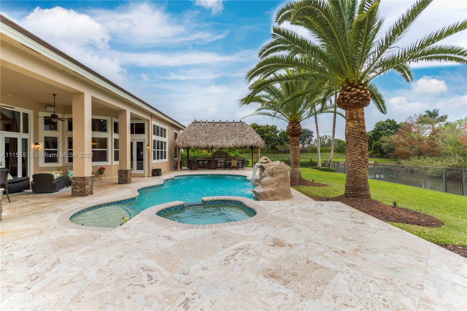 GORGEOUS HOME SITS ON A QUIET CUL DE SAC. ENJOY MOVIE NIGHT WITH YOUR FAMILY IN ITS LARGE CUSTOM THEATER. WOW YOUR FRIENDS WITH YOUR OWN CUSTOM WROUGHT IRON WINE CLOSET & CUSTOM BAR. MASTER BEDROOM FEATURES 2 MASSIVE CLOSETS W/ BEAUTIFUL WOOD TILE. COMMON AREAS FEATURE GORGEOUS MARBLE FLOORING, CROWN MOLDINGS, & TRAY CEILINGS. LARGE KITCHEN HAS AN ENORMOUS AMOUNT OF STORAGE & COUNTERSPACE W BEAUTIFUL GRANITE COUNTERTOPS & CENTER ISLAND. ENJOY YOUR OUTDOOR SUMMER KITCHEN UNDER THE TIKI HUT WHICH INCLUDES 2 FLAT SCREEN TVS, SURROUND SOUND, & A BUILT IN GRILL, PERFECT FOR ENTERTAINING. THIS HOME SITS ON AN OVERSIZED LOT W NO NEIGHBORS BEHIND, ULTIMATE PRIVACY & BEAUTIFUL VIEWS. BRAND NEW ROOF, HURRICANE IMPACT WINDOWS. 3 CAR GARAGE W NEW EPOXY FLOORING & ELECTRICAL CAR CHARGER
