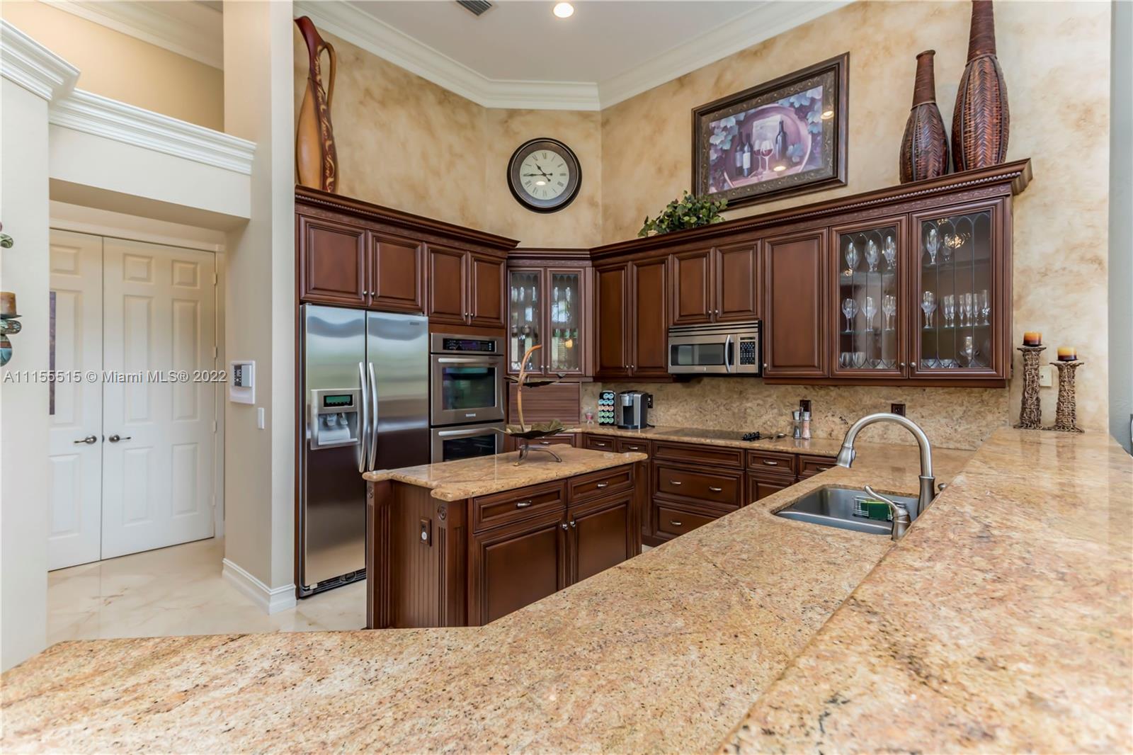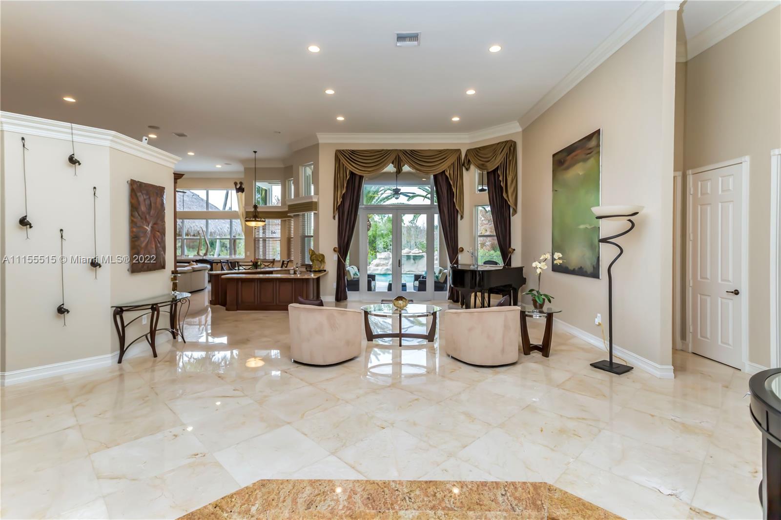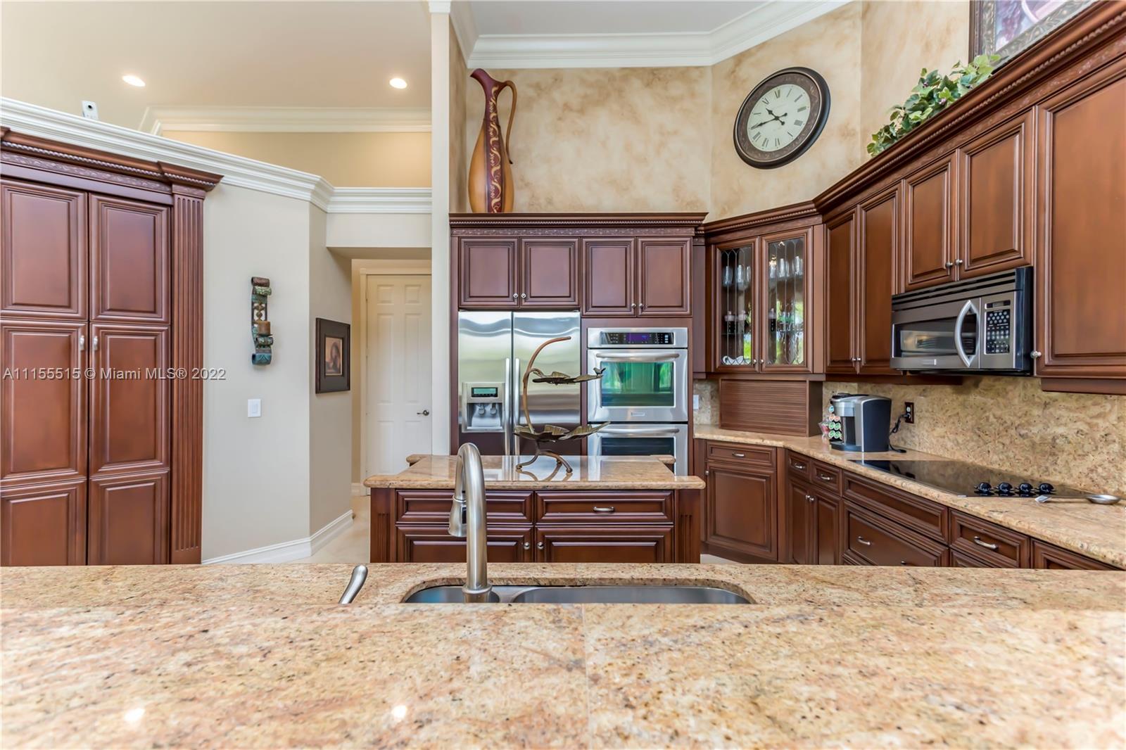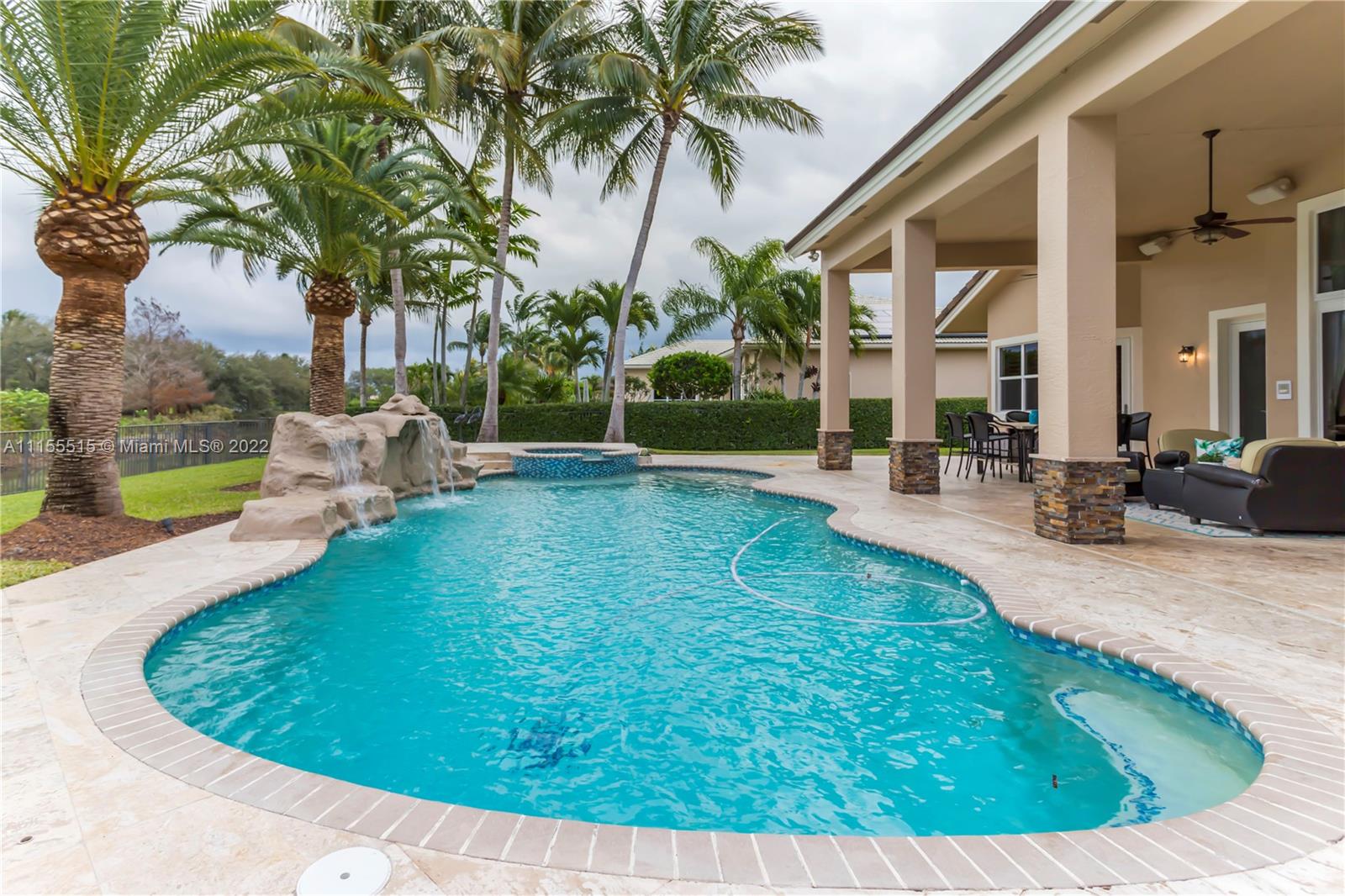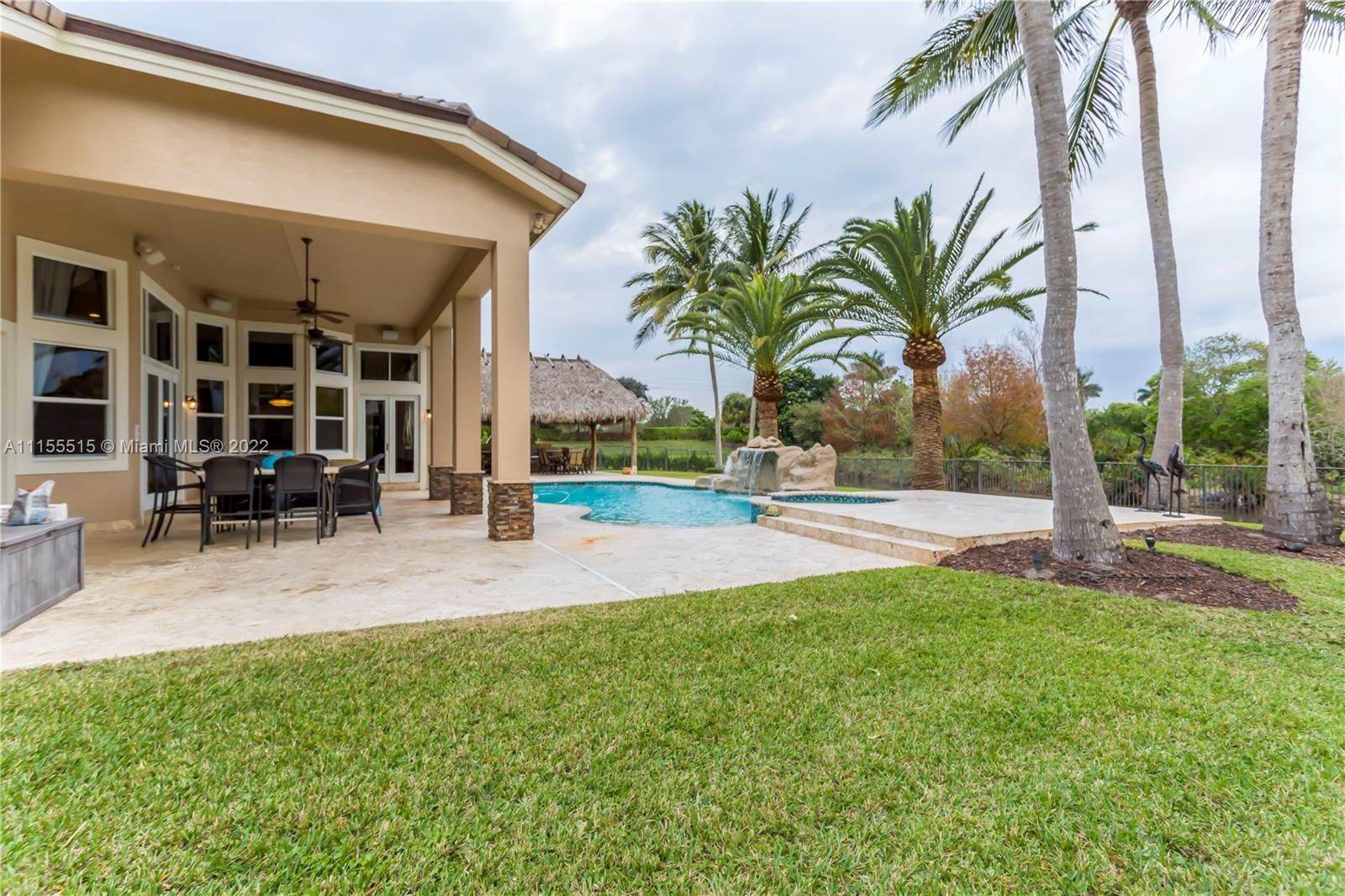 GORGEOUS HOME SITS ON A QUIET CUL DE SAC. ENJOY MOVIE NIGHT WITH YOUR FAMILY IN ITS LARGE CUSTOM THEATER. WOW YOUR FRIENDS WITH YOUR OWN CUSTOM WROUGHT IRON WINE CLOSET & CUSTOM BAR. MASTER BEDROOM FEATURES 2 MASSIVE CLOSETS W/ BEAUTIFUL WOOD TILE. COMMON AREAS FEATURE GORGEOUS MARBLE FLOORING, CROWN MOLDINGS, & TRAY CEILINGS. LARGE KITCHEN HAS AN ENORMOUS AMOUNT OF STORAGE & COUNTERSPACE W BEAUTIFUL GRANITE COUNTERTOPS & CENTER ISLAND. ENJOY YOUR OUTDOOR SUMMER KITCHEN UNDER THE TIKI HUT WHICH INCLUDES 2 FLAT SCREEN TVS, SURROUND SOUND, & A BUILT IN GRILL, PERFECT FOR ENTERTAINING. THIS HOME SITS ON AN OVERSIZED LOT W NO NEIGHBORS BEHIND, ULTIMATE PRIVACY & BEAUTIFUL VIEWS. BRAND NEW ROOF, HURRICANE IMPACT WINDOWS. 3 CAR GARAGE W NEW EPOXY FLOORING & ELECTRICAL CAR CHARGER