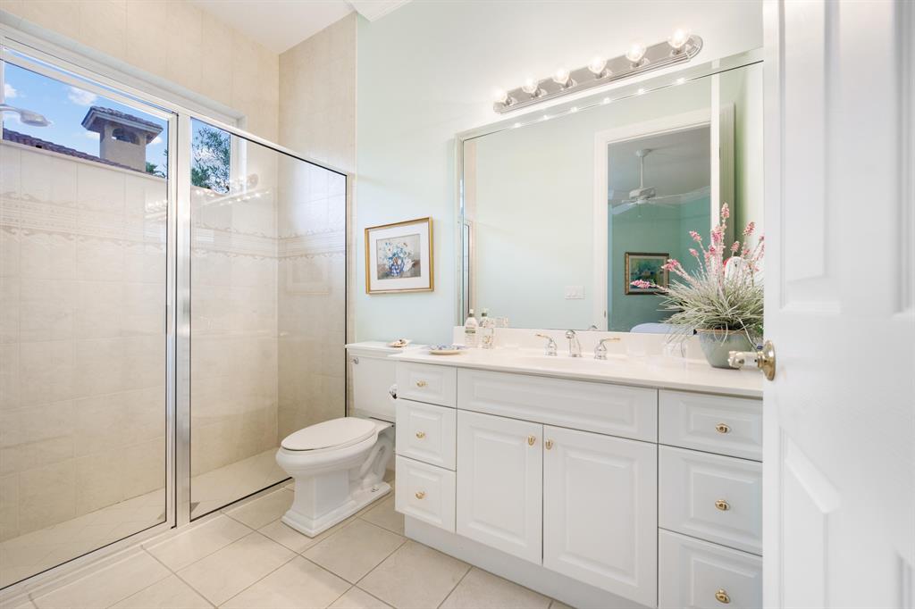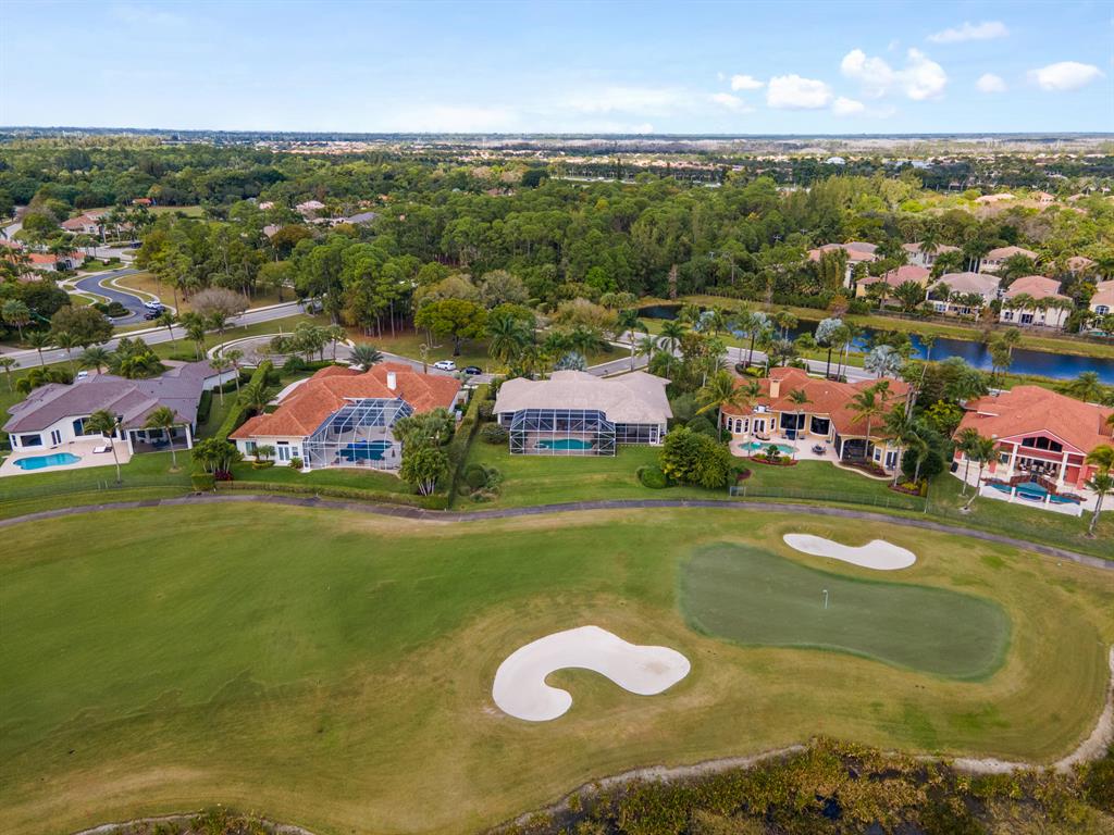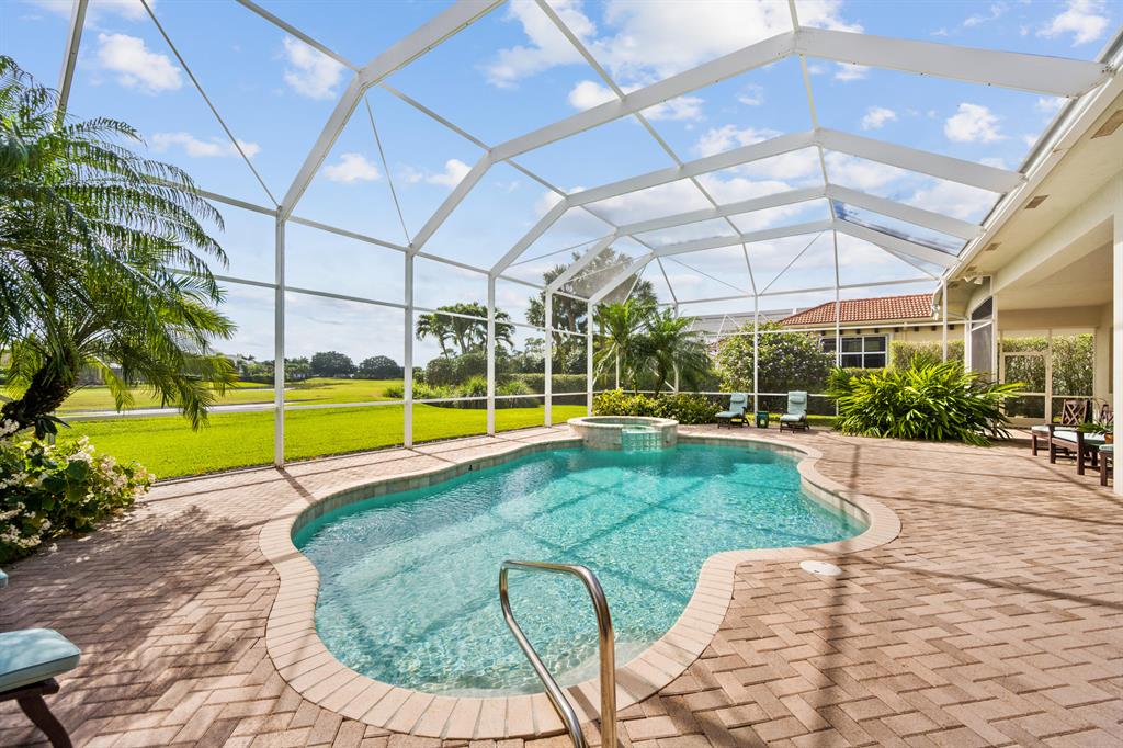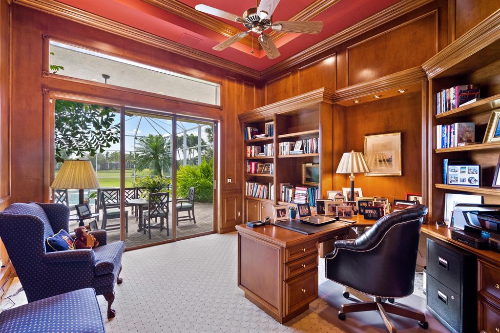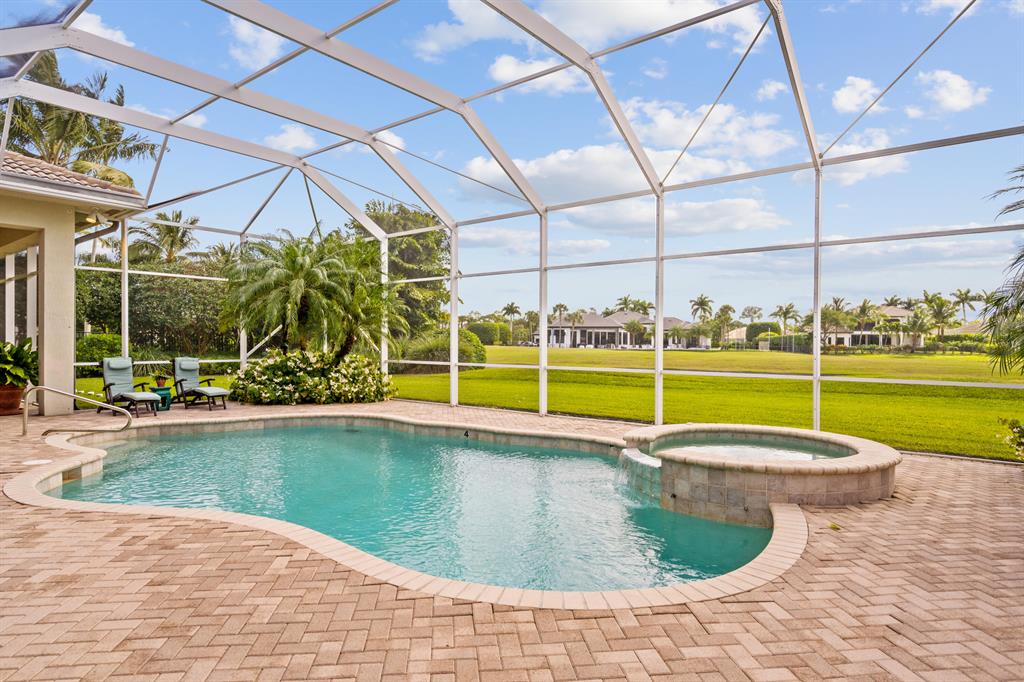 Beautiful Breakers West custom home on private cul-de-sac street with only 3 homes & sweeping views of Breakers Rees Jones 10th fairway. The front of the home faces a park-like common area with towering pines & mature oak trees. This home is the perfect blend of classic Palm Beach style with today's desirable floor plan of high ceilings, crown molding and wonderful natural light from all the windows and doors. Enjoy outdoor living on the very spacious covered loggia with screened pool, spa and built-in BBQ grill. Inside you will enjoy the open kitchen with lg center island, granite counters, Sub-Zero refrig, double ovens and walk-in pantry. Light filled breakfast area and family room overlooks pool as well. Handsome wood paneled office with built-in bookcases. Elegant Master Suite bo