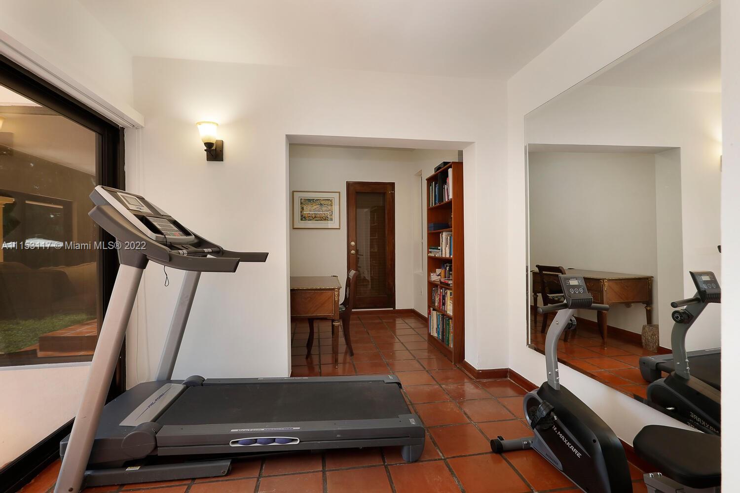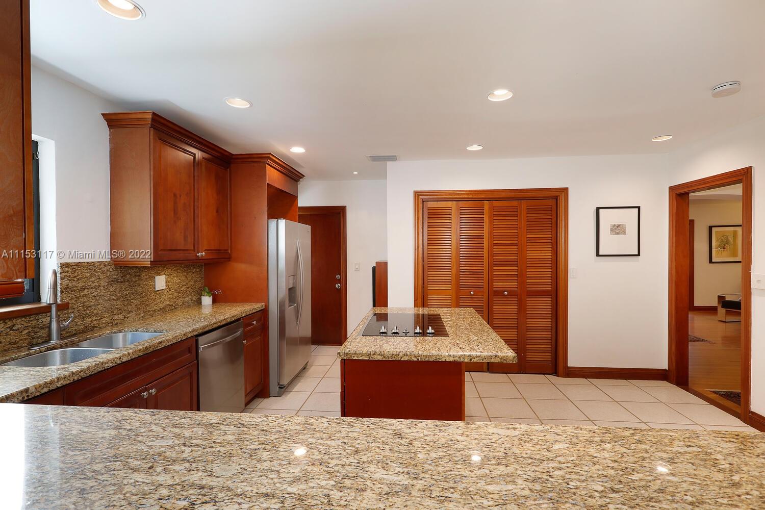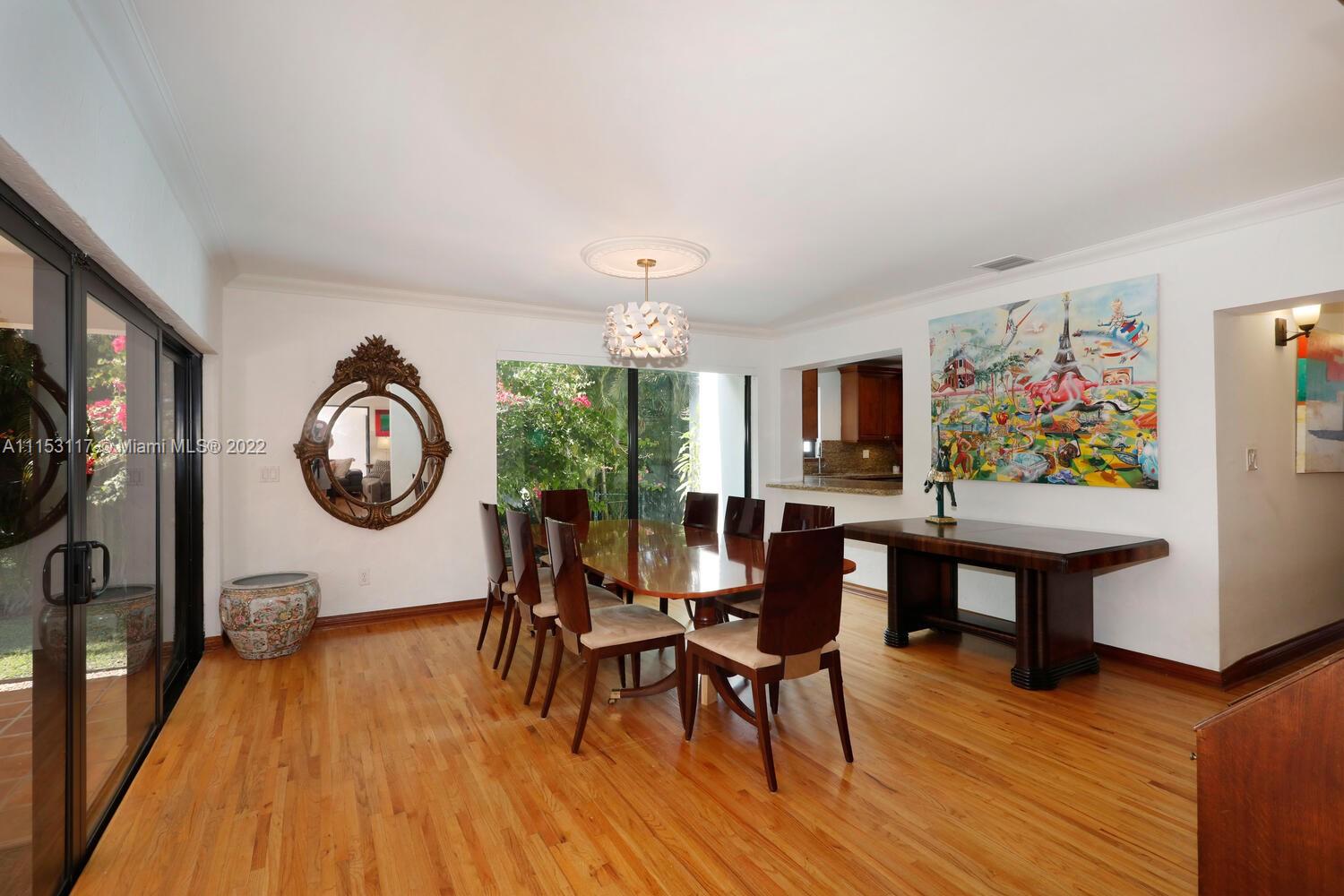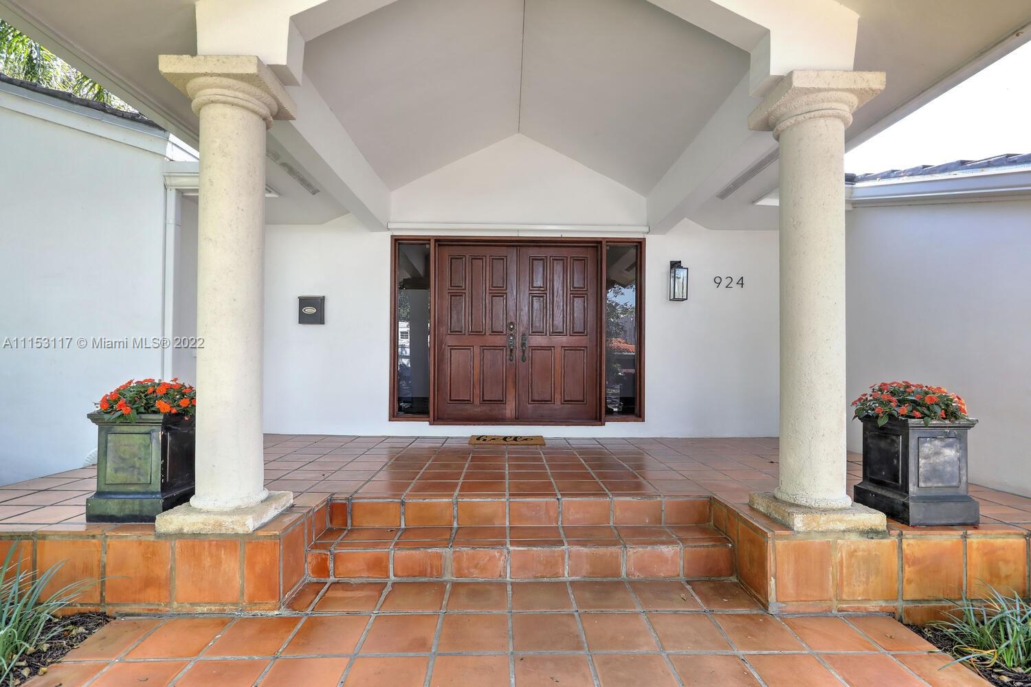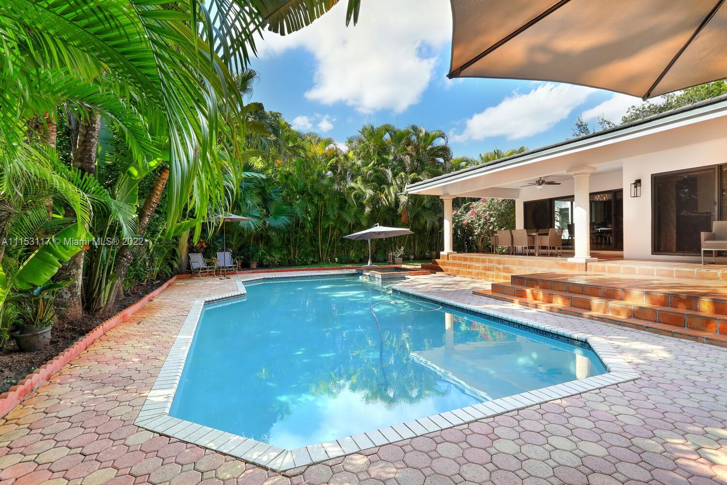 A 4 bedroom 4 bathroom Coral Gables home with pool and 2 car garage has an oversized 13,000 sqft. lot. The spacious kitchen has stainless steel appliances, cooking island and large pantry. The home features hardwood floors, working fireplace, large entertaining terrace overlooking the pool, sauna, and master bedroom sitting area. One bedroom is split from the rest and is ideal for a guestroom, housekeeper, or office. TWO BONUS SPACES one used as a small gym the other as an office. NEW (2021): roof, impact windows & sliding glass doors, sprinkler system, and alarm system. The home is ideally located on a quiet tree lined street a few blocks away from the Venetian Pool and Biltmore Hotel & Golf Course and minutes drive to Granada Golf Course and the Shops at Merrick Park.