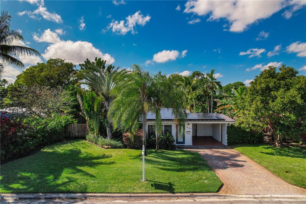 Updated two bedroom one bath energy efficient charming home with vaulted ceilings on one of the largest lots in Poinsettia Heights boasting over 10,123 sq ft. Brand new metal roof, new hurricane impact windows and doors, new kitchen and bath with quartz countertops, wood look tile floors and recently installed solar panels . There is an abundance of space on this lot to add on to or build a large home with plenty of space to create a private oasis with a large scale pool. Poinsettia Heights is one of the most desirable neighborhoods in East Ft Lauderdale where property values are increasing quickly and homes on this street have sold for well into the seven figures. Location is close to Whole Foods, Trader Joes, many fine restaurants, stores, shops, downtown and beach.