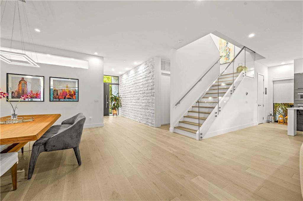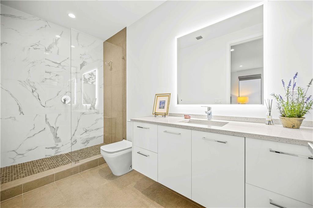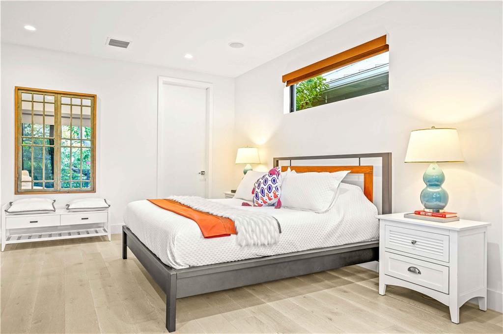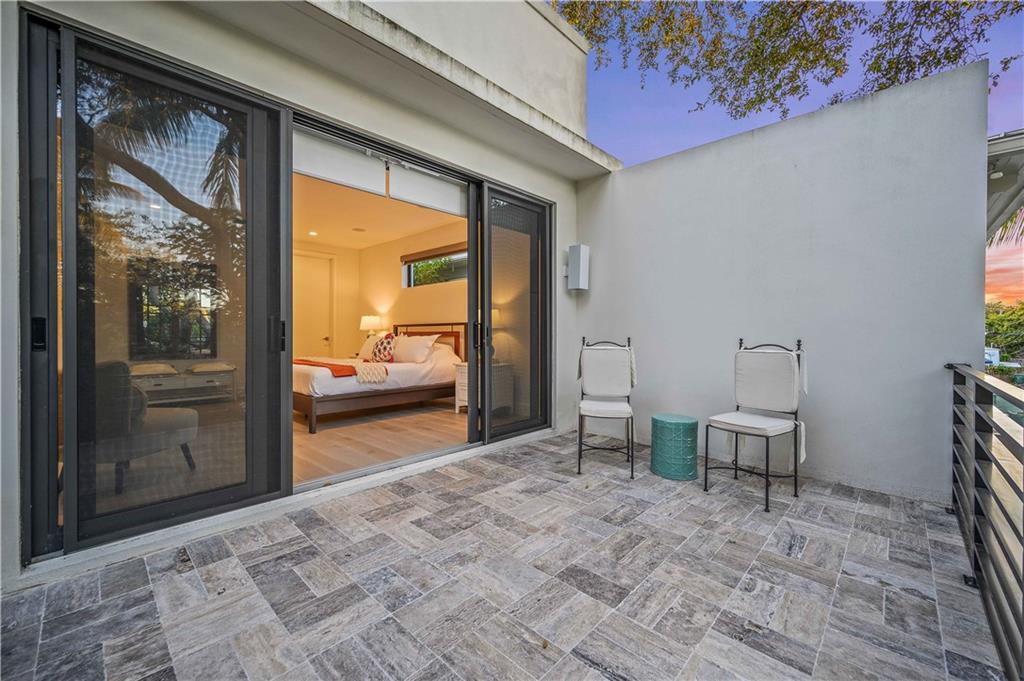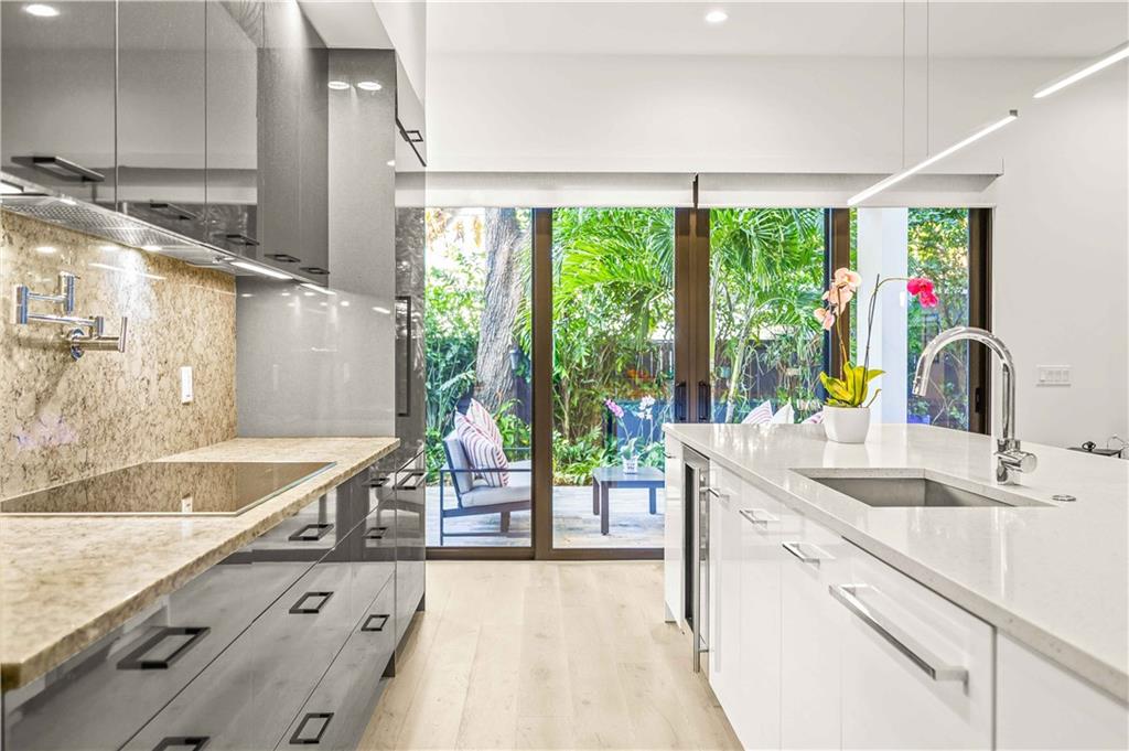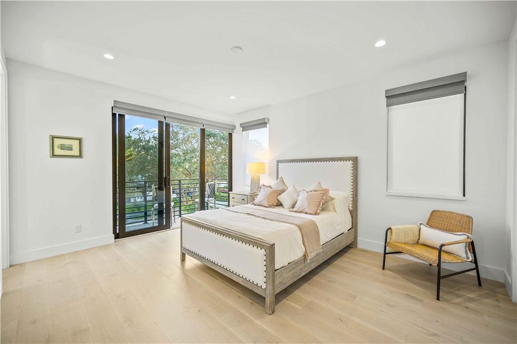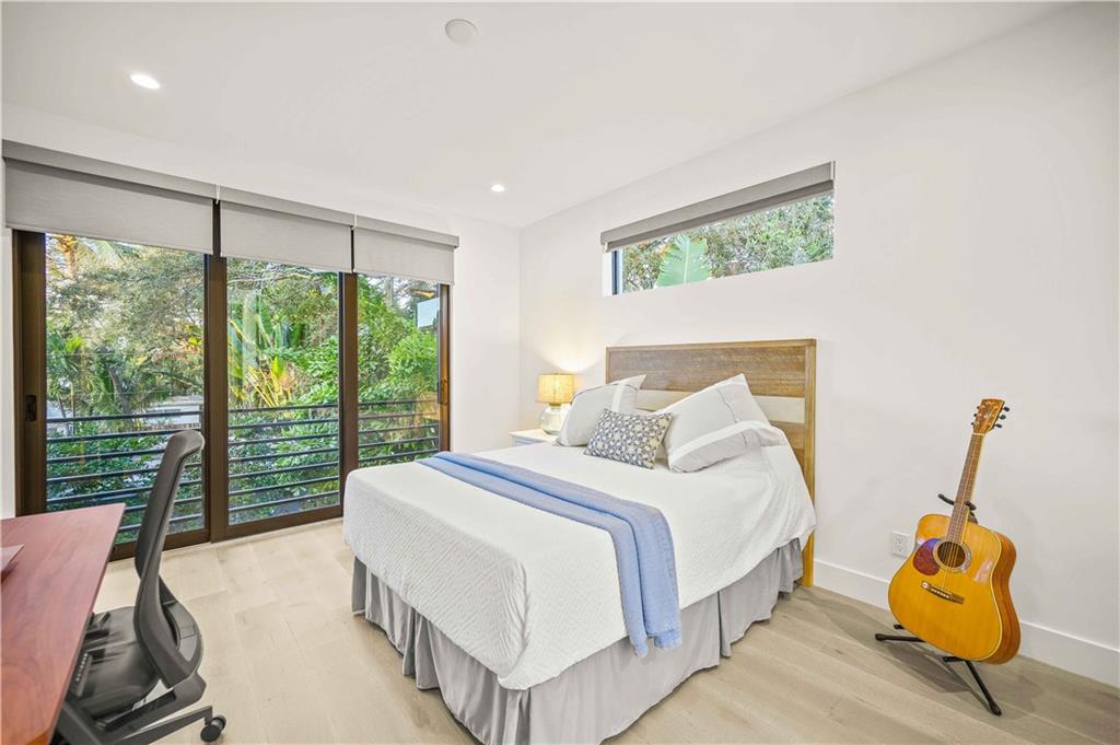 This is a modern, sophisticated single family residence built new in 2019. Features include high ceilings, walls of sliding glass, four bedrooms and a home office, a roofed patio, a pool surrounded by fenced gardens and mature landscaping. Generously proportioned guest rooms have large closets. Most have balcony access. The primary suite features a soaking tub, separate shower and two finished walk-in closets. The sleek kitchen allows seating and entertaining around a grand center island plus a wine chiller. Music, television, climate, security and window blinds are Smart Phone automated. An outdoor kitchen offers an additional serving area. This home is semi-attached by a garage storage room to the house next door with no common walls between living spaces.
