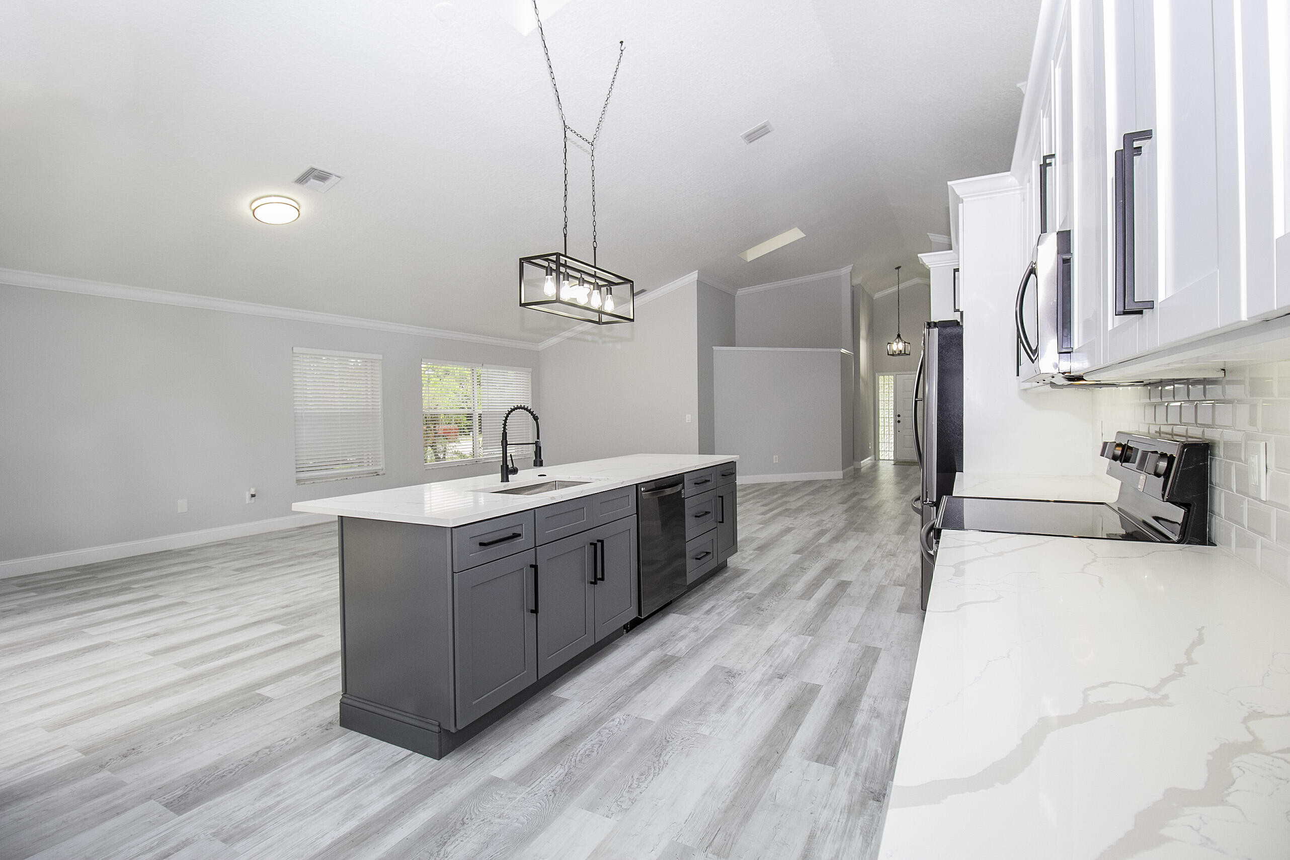 Every day is more beautiful in this charming, beautifully renovated home located in the delightful Foxhall neighborhood. Here you'll find an open concept space with cathedral ceilings, featuring a host of updates and upgrades including NEW roof, NEW baths, NEW Kitchen, NEW fixtures and finishes throughout. Gorgeous kitchen features all NEW LG appliances plus Shaker-style cabinetry and a generous seated bar on a magnificent island for casual dining. Elegant owner's suite includes en suite bath with double-sink vanity, walk-in spa-like shower and skylight. Fully fenced backyard greenspace with mature landscaping and open terrace for grilling, dining, and entertaining. You'll love the lifestyle in this gated community featuring low HOA and ideal location near clubhouse and community pool.