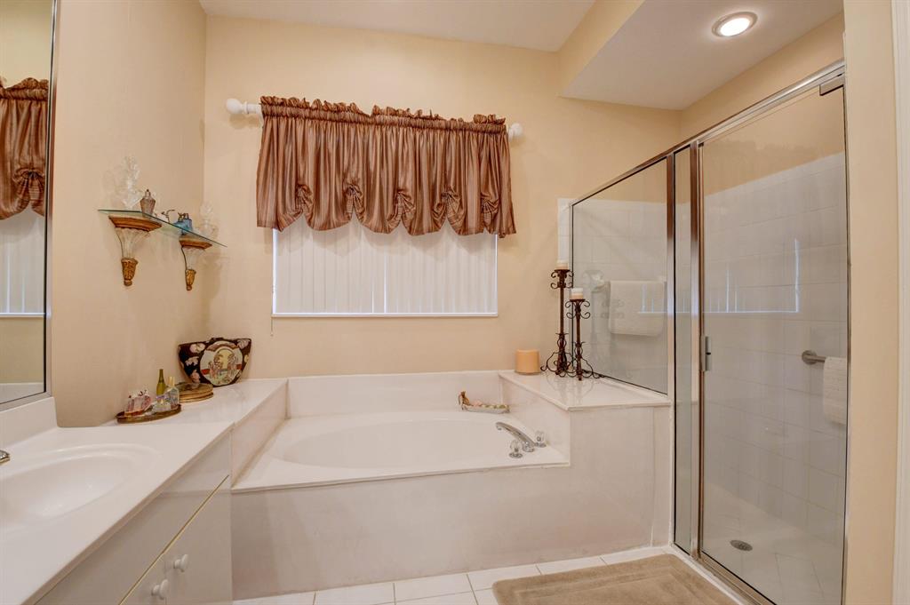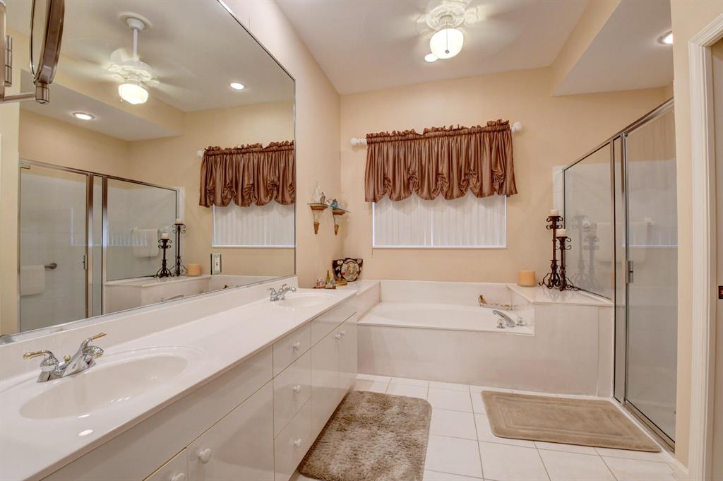 Immaculately maintained 2 story home with master on 1st floor. Light and bright with 14 ft ceilings with natural lighting. Granite counters in the eat-in kitchen. 2 bedrooms with ensuite baths upstairs. One of these bedrooms has 2 walk-in closets and could be a 2nd master. Greatroom layout. Large patio with beautiful new landscaping. New A/C with generator.