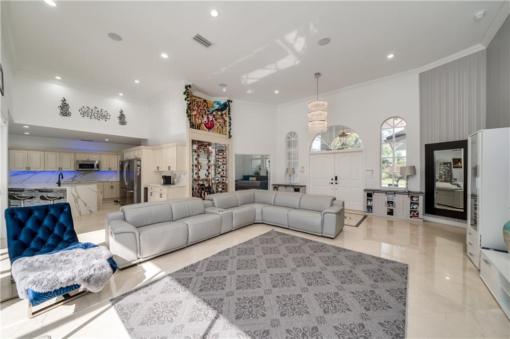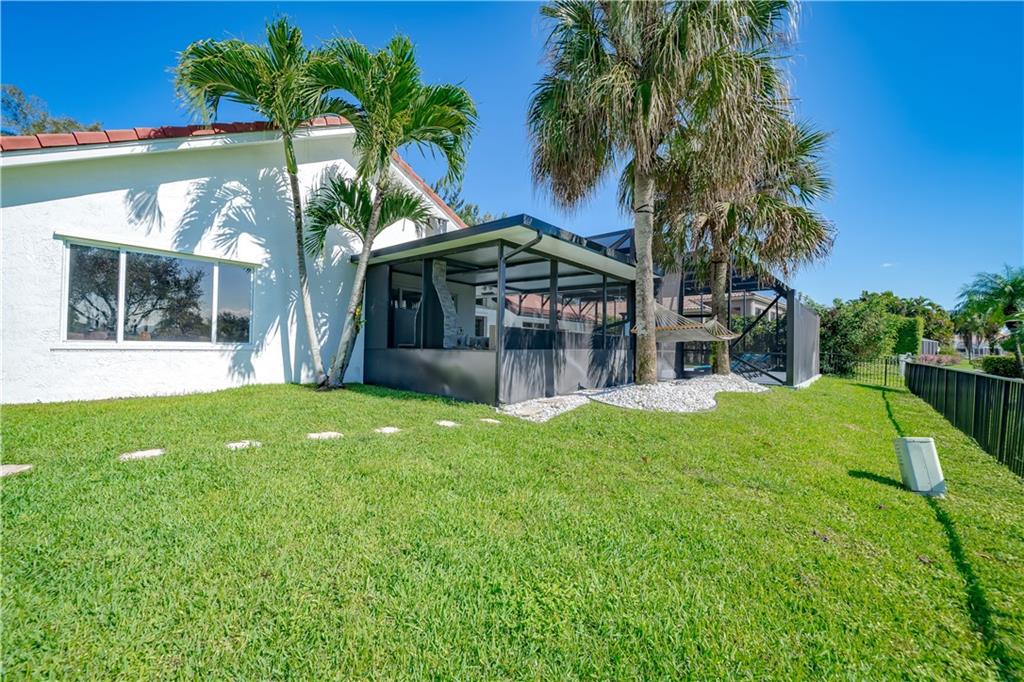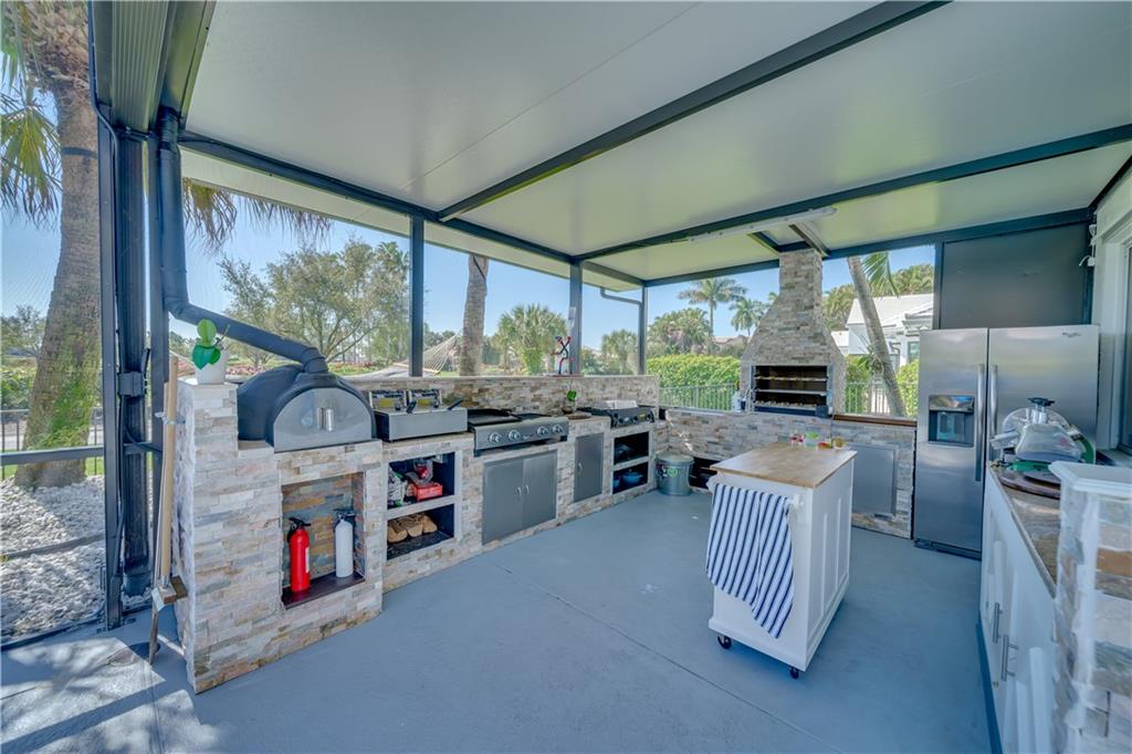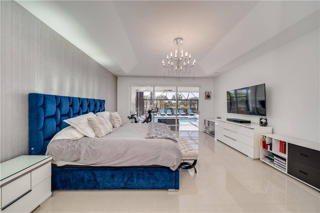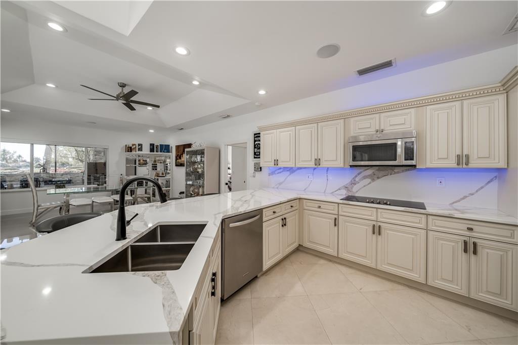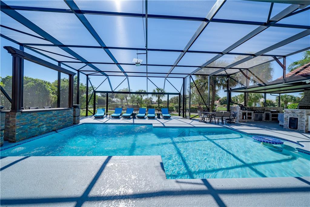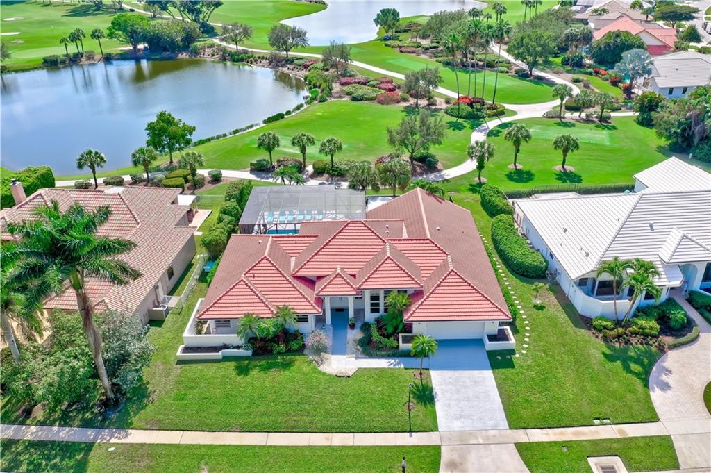 Welcome to this elegantly and magnificently remodeled 4 bed/3bath Mediterranean home in the highly sought-after Stonebridge CC. Majestic entryway greets you with an open floor plan, high ceilings. Fabulous open gourmet kitchen, eat-in island, quartz countertops, double fridge & stainless appliances. The grand room adorned with a custom wine cellar & expansive views of the pool and outdoor entertainment area. Pristine porcelain tiles throughout, gorgeous bedroom suite with built in closets. Spacious 2 car garage, golf cart parking spot. plenty of closets & custom built-in cabinetry. Glass sliding doors lead to a large spacious screened enclosure w/ full size summer kitchen, pop up projector screen alongside large pool. Amazing entertainment area with a golf course view. MANDATORY MEMBERSHIP