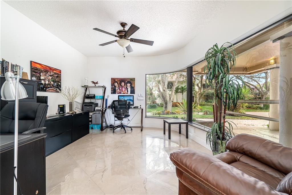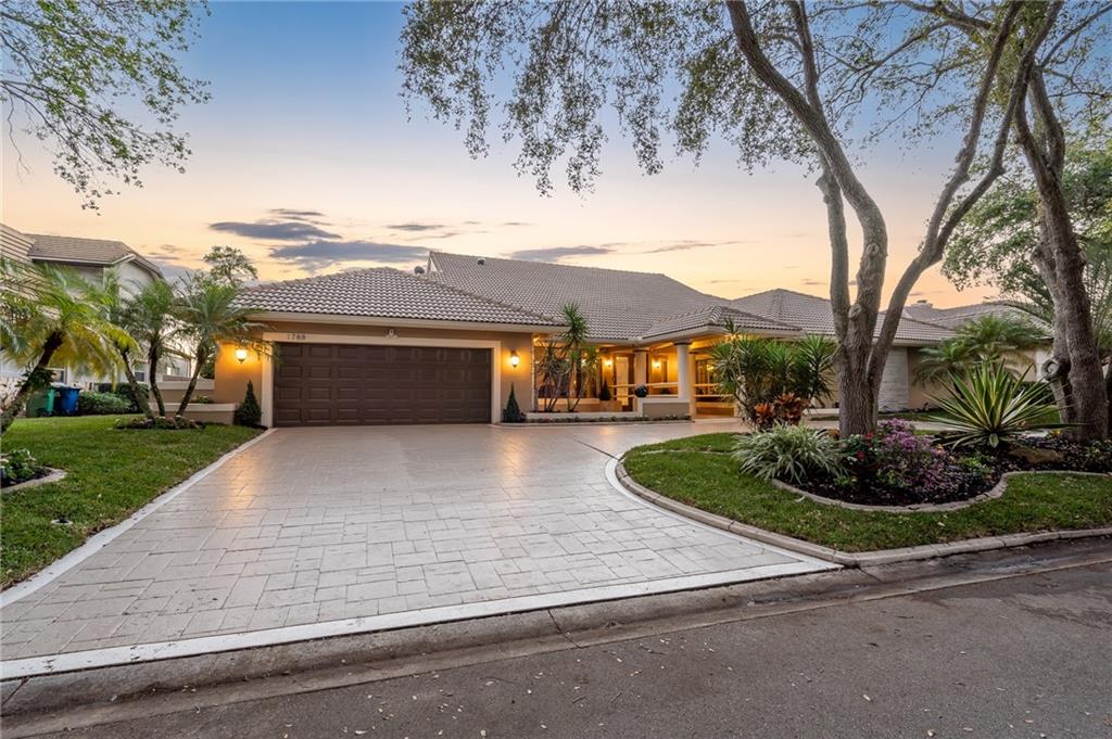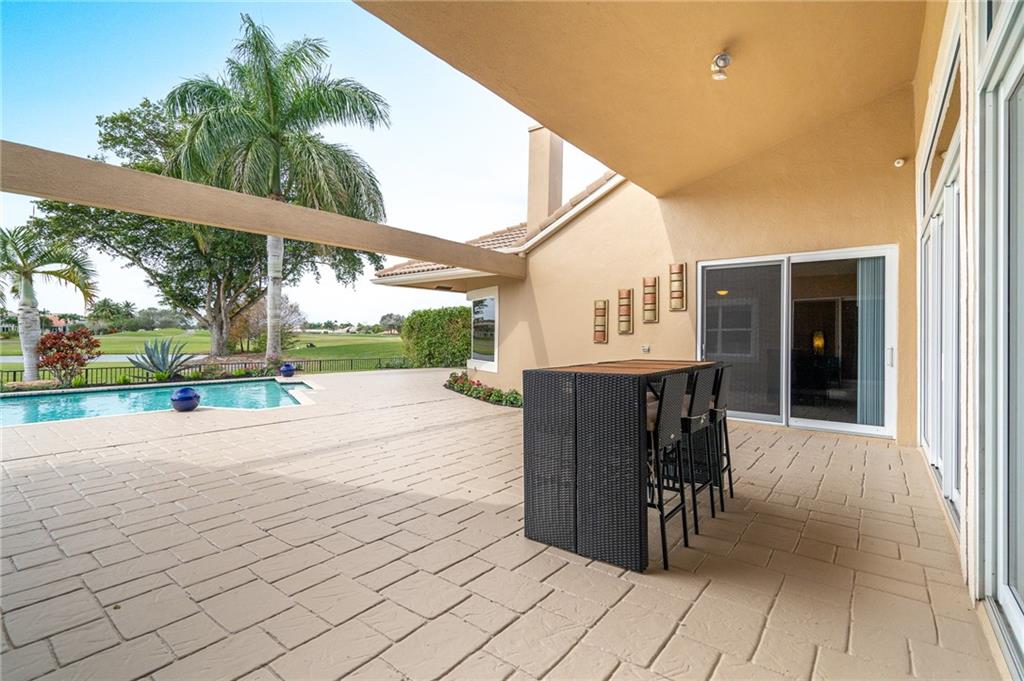 Welcome to one of the most impressive homes in the prestigious community of Eagle Trace in Coral Springs. This is currently the largest home offered in the community and is located in the Estate section. This home features an 8-car circular driveway. Walk across the bridge over a koi pond and waterfall and enter into a triple split floor plan home. This one story single family home has 4 spacious bedrooms, an office/den, 4 full baths, two half baths (one is a cabana), and an oversize 2-car garage. The view from the covered patio and pool/spa is magnificent, showcasing amazing sunsets over the golf course as well as a beautiful lake. This estate has a formal living room, dining room, family room, and eat-in kitchen. The roof was installed just 11 years ago.