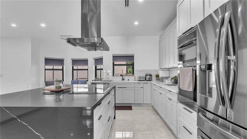 Stunning 5x3 in Grand Palms/Hollywood Lakes as the sellers have done all the heavy lifting here installing a new roof in 20', new AC system with linear grills, impact windows and doors, exquisite designer tile flooring flowing throughout, rich rustic hardwood for the stairs, completely redesigned and reimagined master bath. This modern inspired home also has two other full bathrooms finished in the same motif, designer kitchen with open concept, opulent waterfall quartz counter top, island with usable storage, all smart appliances, as well as a smart garage door (impact graded). A+ schools, amenities, great access to major highways and an amazing managed residential community.