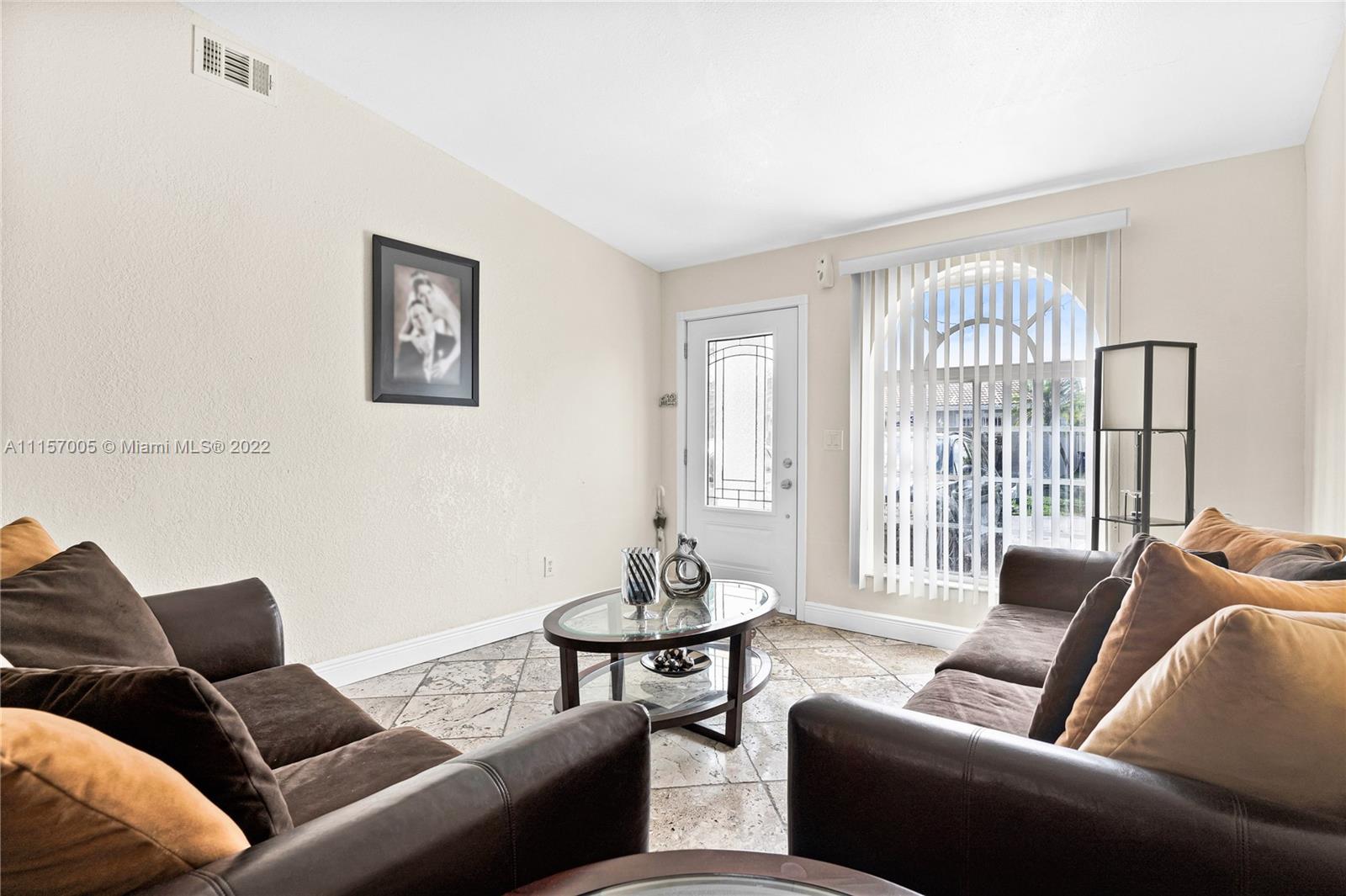 Beautiful townhouse in desirable community. Property features travertine floors, updated kitchen with granite countertops, stain-steel appliances, remodeled bathrooms, accordion shutters, metal fence, 3 bed 2 bath townhouse in amazing condition!! A/C and water heater (TITAN) are 6 years old. Great for a starter home, upgrade or investment property. A+ School. Association is ONLY $25 a MONTH!!!