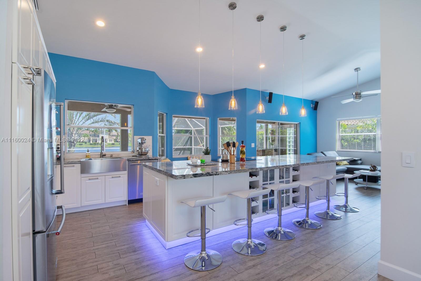 UNIQUENESS defines this home! A one of a kind opportunity to own this fantastic house. 3 bedrooms, 2 bathrooms. Beautifully remodeled with so many features. Relaxing and delightful 180 view of the lake. Oriented north, pool has light from sunrise to sunset. This lot offers privacy from other neighbors making it perfect for the enjoyment of the pool and entertaining. Pictures talk for themselves for kitchen and other areas. Laundry room is a plus! Top rated schools makes this a perfect home to raise your family! Accordion shutters. Garage for 2 cars. Tenant occupied until May 31st 2022.