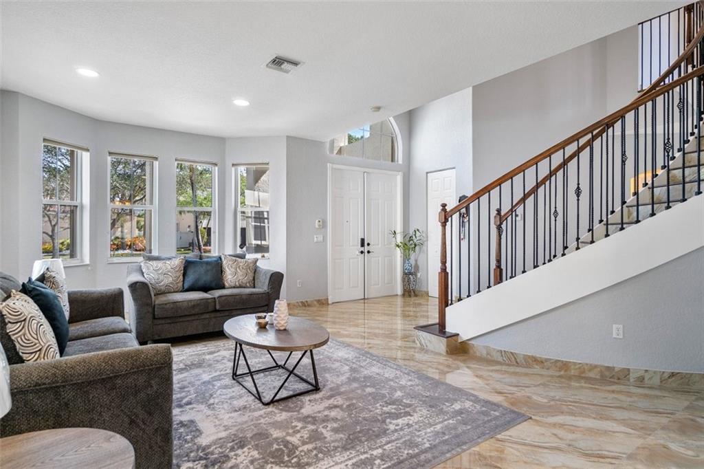 LUXURIOUS & SPACIOUS WATERFRONT HOME IN DESIREABLE GATED RIVIERA ISLES COMMUNITY W/RESORT STYLE AMMENITIES.ENTER THRU DOUBLE GRAND DOORS TO A BEAUTIFUL PORCELIAN STAIRCASE W/ ROD IRON & SOARING CATHEDRAL CEILINGS, EXQUISITE PORCELIAN TILES TROUGHOUT. FORMAL DINING ROOM GOURMET KITCHEN HAS NEW 42" WOOD CABINETS, APPLIANCES,GRANITE COUNTERTOPS & ISLAND, INCLUDING A HUGE FAMILY ROOM W/A SPACIOUS SITTING AREA OVERLOOKS THE SERENE LAKE. SECOND FLOOR HAS GERMAN LAMINATED WOOD FLOOR.UPSTAIRS HAS A HUGE MASTER SUITE W FULL BALCONY LENGTH OF THE HOUSE OVERLOOKS LAKE & SUNSETS. WOODEN WALK IN CLOSETS + STORAGE. THE MASTER BATH HAS A SEPARATE SOAK TUB, HIS & HERS SEPARATE BATHROOM SINK ALONG WITH A SHOWER. THERE ARE 2 BRAND NEW AIR CONDITIONERS FOR BOTH FLOORS, ALL NEW PLUMBING THROUOUT THE HOME. SEE