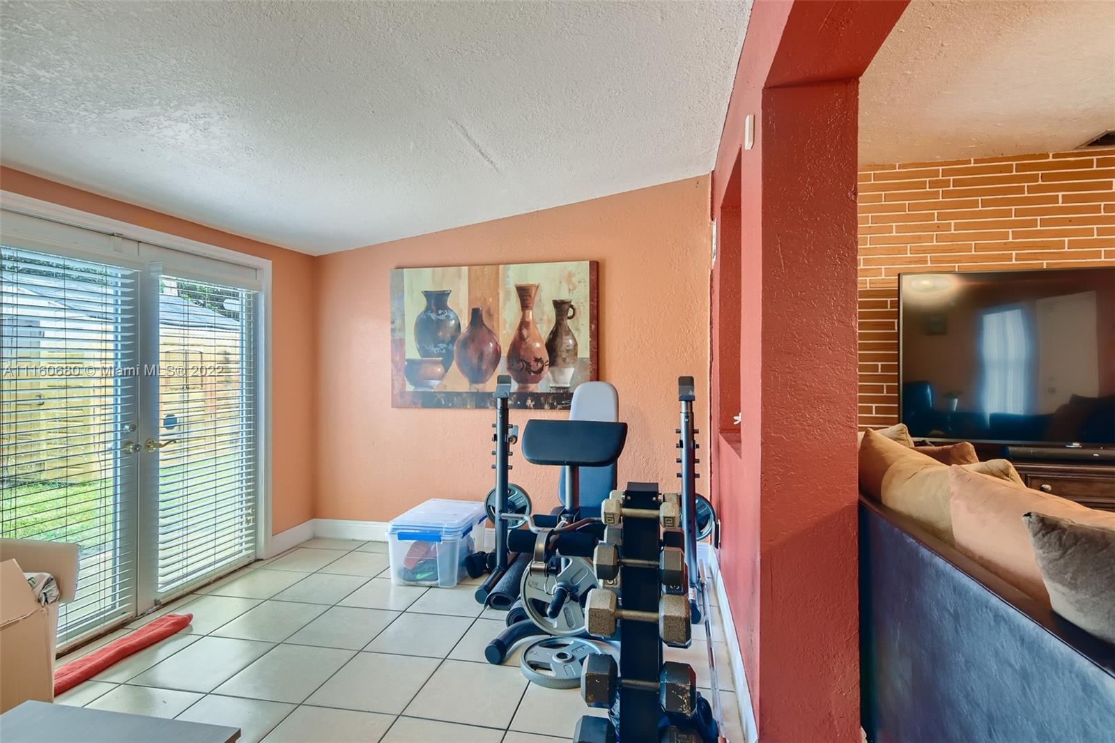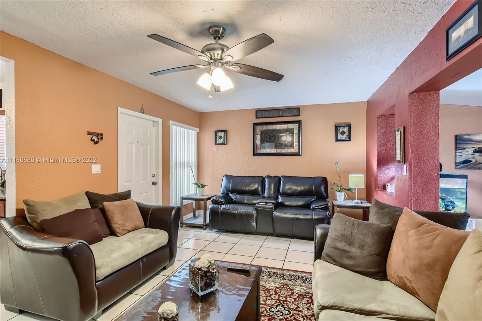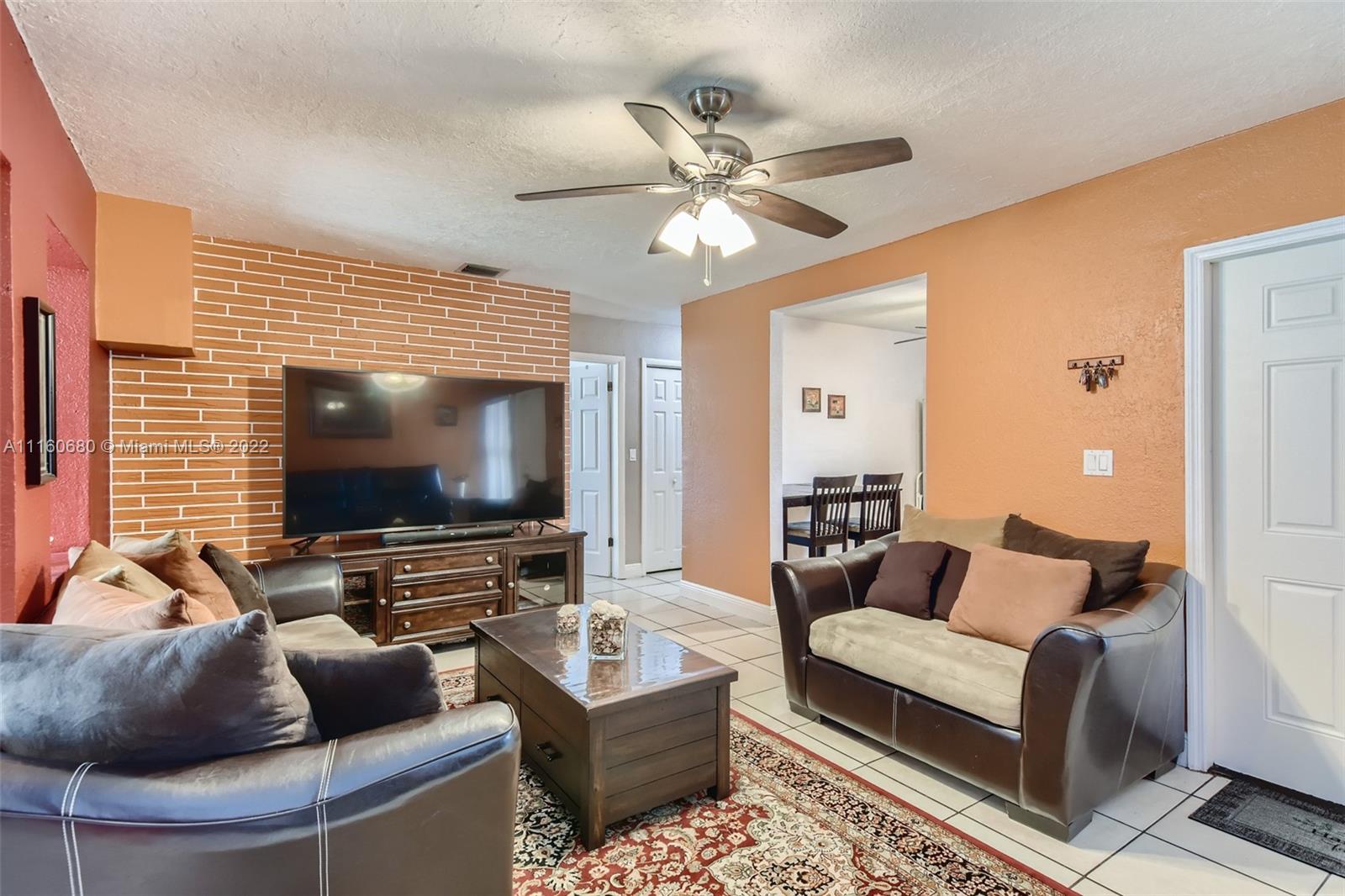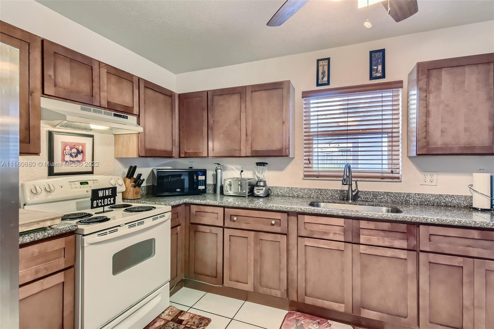 Upon entry past the front yard and adjacent carport, you’re ushered into the front living area, tiled with abundant natural light and a wall with two pass-throughs. Beyond is a rear sun room, which has French doors to access the backyard. In the kitchen, you’ll find stainless steel appliances, granite countertops, and a dining nook, perfect for informal meals. Rest in the primary bedroom, which includes wrap-around windows and a quaint ensuite bath. The remaining bedrooms are perfect for hosting or utilizing for a work-from-home set-up, and they share a common bathroom with a granite vanity and standing shower. Out back, enjoy the space the backyard provides — it has a lush tropical landscape and a fenced-in perimeter for privacy.