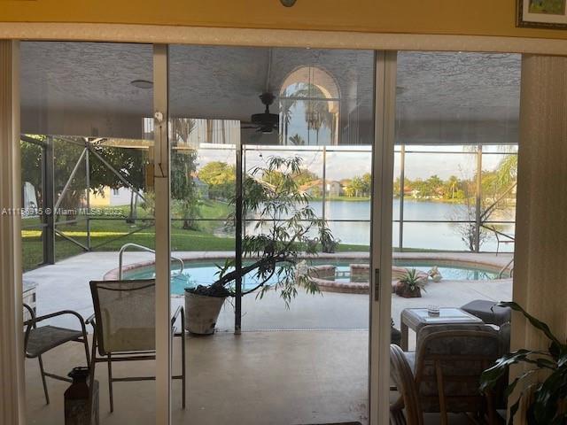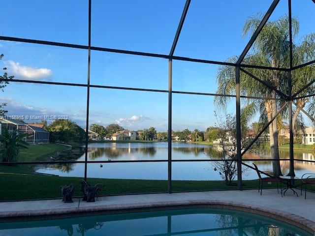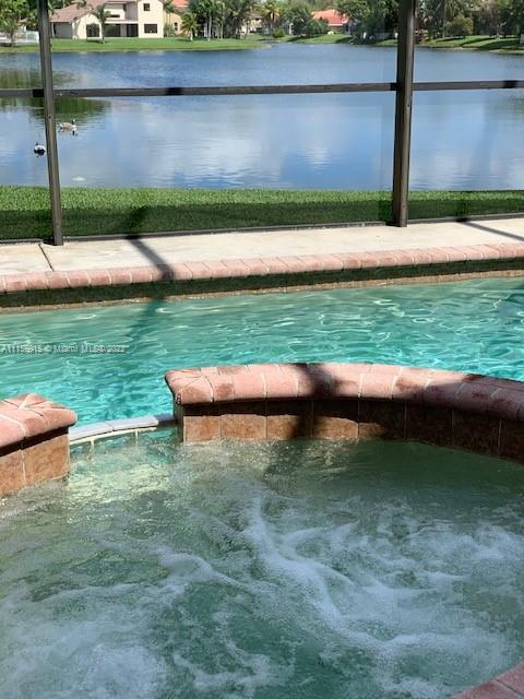 Buyer lost Financing.. Back on The Market! BEAUTIFUL WATERFRONT POOL HOME WITH JACUZZI... IN THE ESTATES OF TANGLEWOOD LAKES.!! THIS HOME HAS FULL DIRECT VIEWS OF THE PREMINUM LAKE THAT YOU CAN SEE FROM ALMOST EVERY ROOM.... IT HAS DRAMATIC SOARING CELINGS WITH A BEAUTIFUL TWO STORY FOYER!! LOTS OF WINDOWS THAT OFFERS AN ABUNDANCE AMOUNT OF NATURAL LIGHTING... ONE BEDROOM IS LOCATED DOWNSTAIRS AND OFFERS A PRIMARY SUITE WHICH LEADS OUT TO THE POOL AND COVERED SCREENED IN PATIO.... THIS HOME ALSO HAS A PRIVATE SEPARATE CABANA BATH..... DID I FORGET TO MENTION THE BEAUTIFUL MATURE MANGO TREE.... SIT BACK AND RELAX WATCH THE SUNRISE AND SUNSET..... THE HOME IS IN A FABULOUS GATED COMMUNITY AND....IS WAITING FOR YOU TO MAKE IT YOUR OWN!!