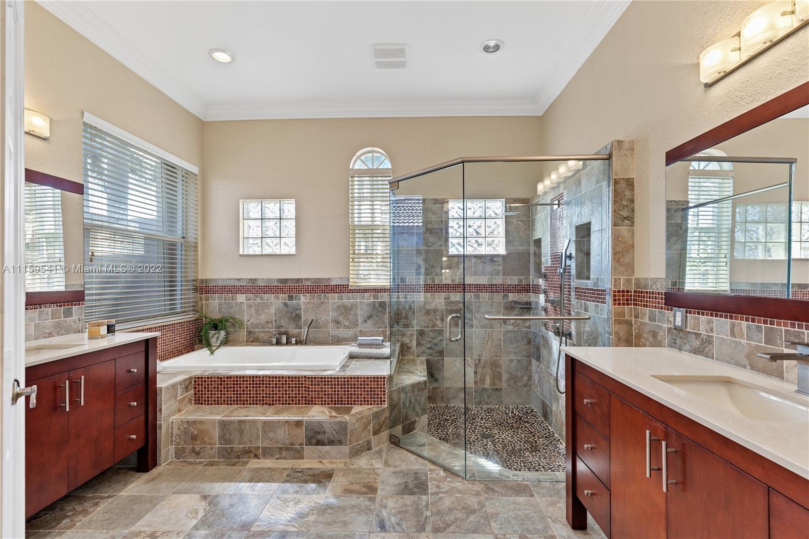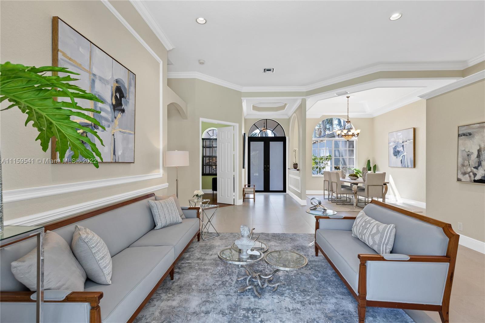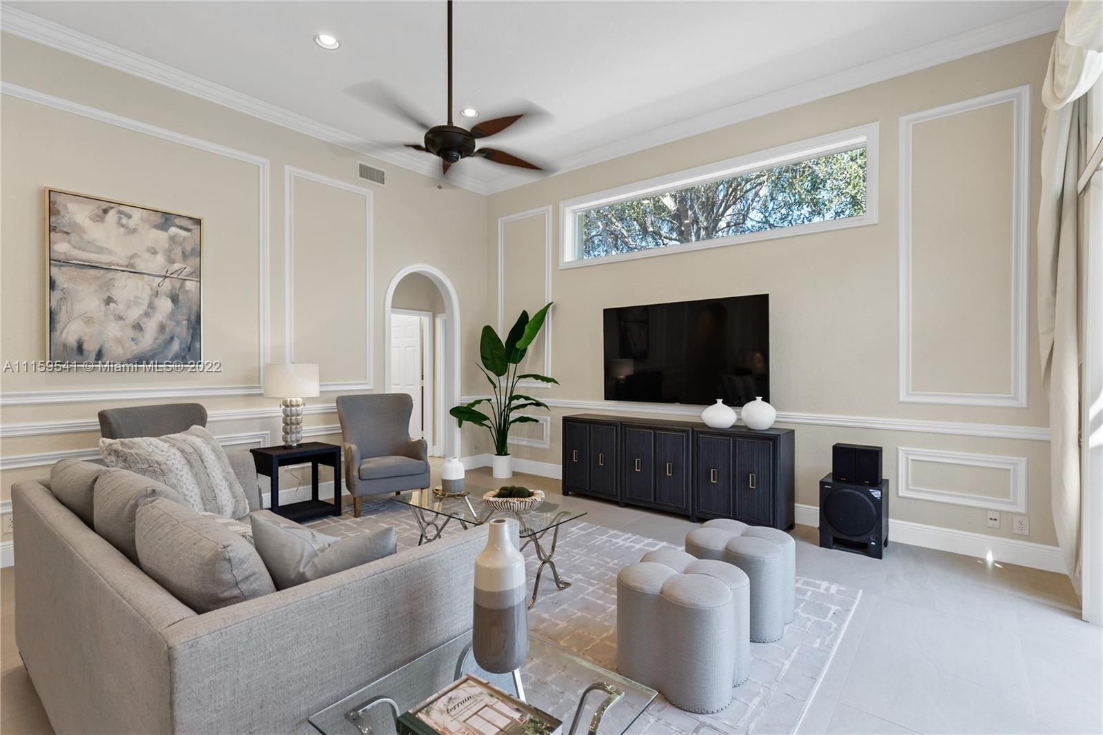 Spectacular one story contemporary home located in the prestigious gated community of Weston Hills Country Club. This home features a split floor plan with volume ceilings with 5 bedrooms, 4 1/2 baths plus an office/den and a 3 car garage. Brand New roof completed in 2021, Impact windows in main doors and accordion hurricane shutters throughout. Masterfully renovated kitchen with quartz counter tops and brand new appliances. Oversized master bedroom with sitting area with a spa-like master bath. Fully fenced private backyard with pool and large screen patio that offers that secluded and tranquil retreat that buyers crave today. New european porcelain floors throughout, engineered wood floors in all bedrooms. Parks and Golf around the corner. A must see in Weston! A+ schools.
