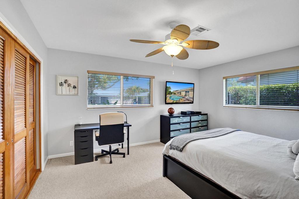 This home exudes the epitome of the South Florida lifestyle! Bright, open and beachy with a private infiniti pool, 80 feet along the wide, deepwater canal and beach access across the street. Hard to find 9 foot ceilings, stunning marble floors and impact windows and doors are a few of the special features. The floor plan has a perfect flow for entertaining with a large great room, 2 wine coolers, separate bar and coffee bar, large island and new 48" Kitchenaid refrigerator. Even the garage is outfitted with custom flooring and cabinetry and a new secondary refrigerator. Plus, a new A/C in 2020 and almost 9 ft. flood elevation. This is a stunning home in the single entry, secluded Bermuda Riviera neighborhood. Guard house has cameras and zoned for Bayview Elementary School disctrict!