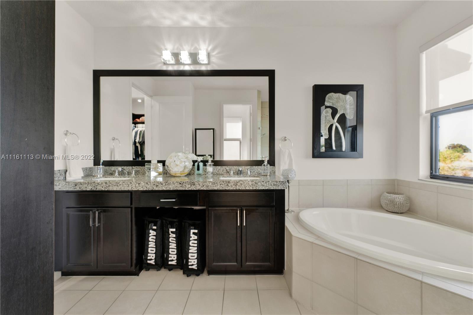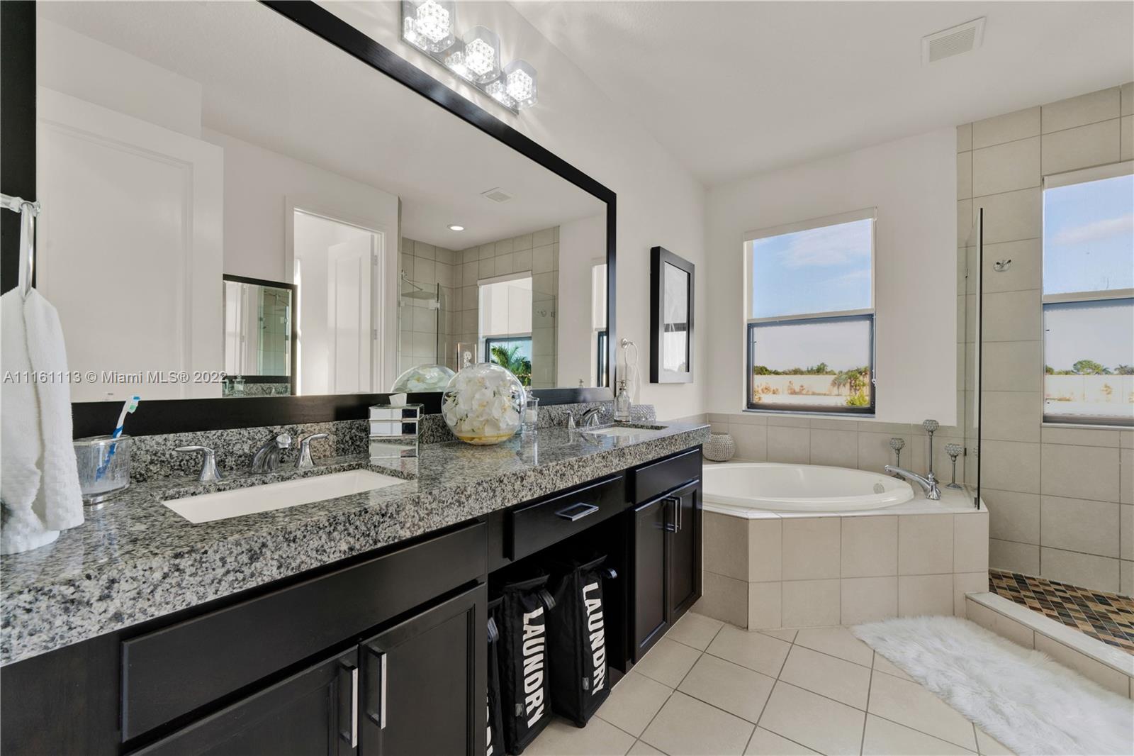Unique home in the beautiful Bonterra Community. This spacious home offers an abundance of upgrades. High ceilings in both first/second floors with tall doors throughout the home. Unique colors in every room provides an elegant feel in every room. Ceramic and Vinyl floors. Spacious master bedroom with custom walk-in closet, master bathroom with dual sinks, and separate tub and shower. The kitchen is a dream with a unique Marble stone island & Granite countertop, beautiful stainless steel appliances offering the latest technology. Two bedrooms come equipped with custom closets, no expense was spared on this gorgeous home. Stairs are a piece of artwork, frameless glass with stainless steel handrails. Family-friendly neighborhood, with amenities including a gym, clubhouse, and great pool.