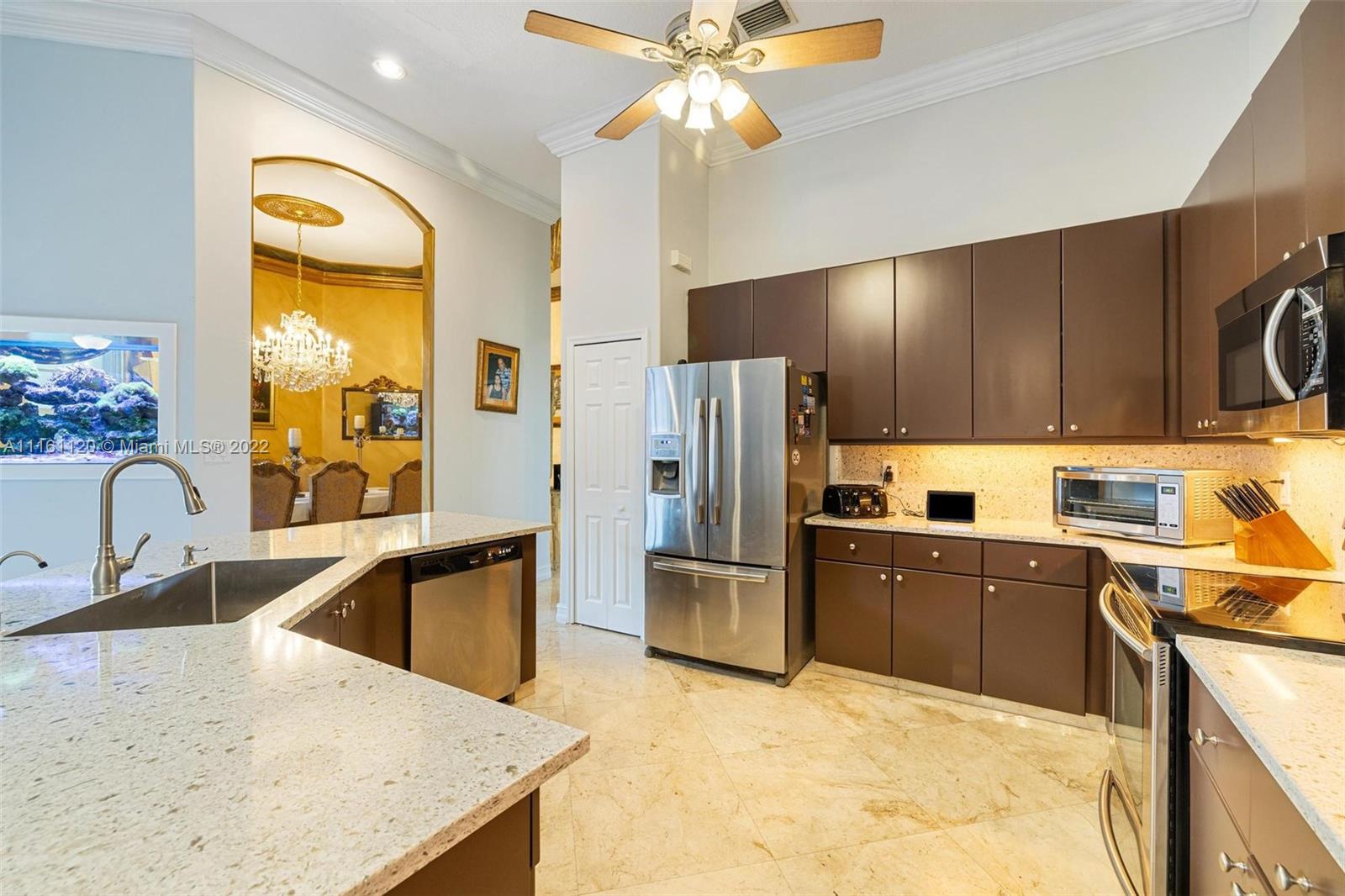 This gorgeous home is nestled in the highly sought after Spring Valley Community. Excellent school district is perfect for families in this gated community. Home features a recently upgraded kitchen complete with stainless steel appliances, granite tops and durable cabinetry. Enormous driveway can park 10 plus vehicles. Accordion shutters throughout as well as many nuance upgrades and comforts. Marble flooring throughout the entire home as well as crown moldings in your vaulted, high ceilings. This canal front home has beautiful landscaping and a gorgeous fountain to welcome you home. Full guest suite complete with full bath and separate, private entrance via the pool courtyard. Home is close to major road arteries, shopping, grocery stores, entertainment and is just west of I-75.