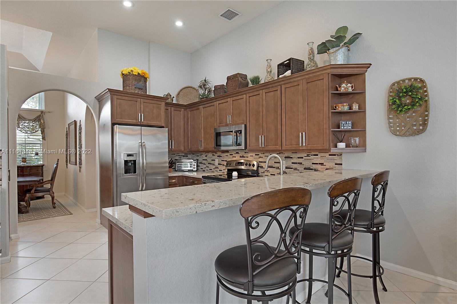 Incredible upgraded waterfront pool home situated on an expansive 15,000+ sqft lot. This 5 Bedroom 3 Bathroom home features a large 3 car garage w/ a long driveway & plenty of room for parking. Lush landscaping lines the walkway of the home to your grand covered entry. Once you enter through your glass double doors your greeted by the natural light, volume ceiling & tranquil views overlooking your pool and waterway. Triple spilt floorplan. The owner's suite has pool access w/ dual walk-in closets & upgraded en-suite bath. Formal living and dining rooms, breakfast nook. Tastefully upgraded kitchen w/ newer appliances overlook the large family room w/ custom built-in entertainment center. New roof(2016). Accordion Shutters. Plantation Shutters. Invisible pet fence for entire property & more!