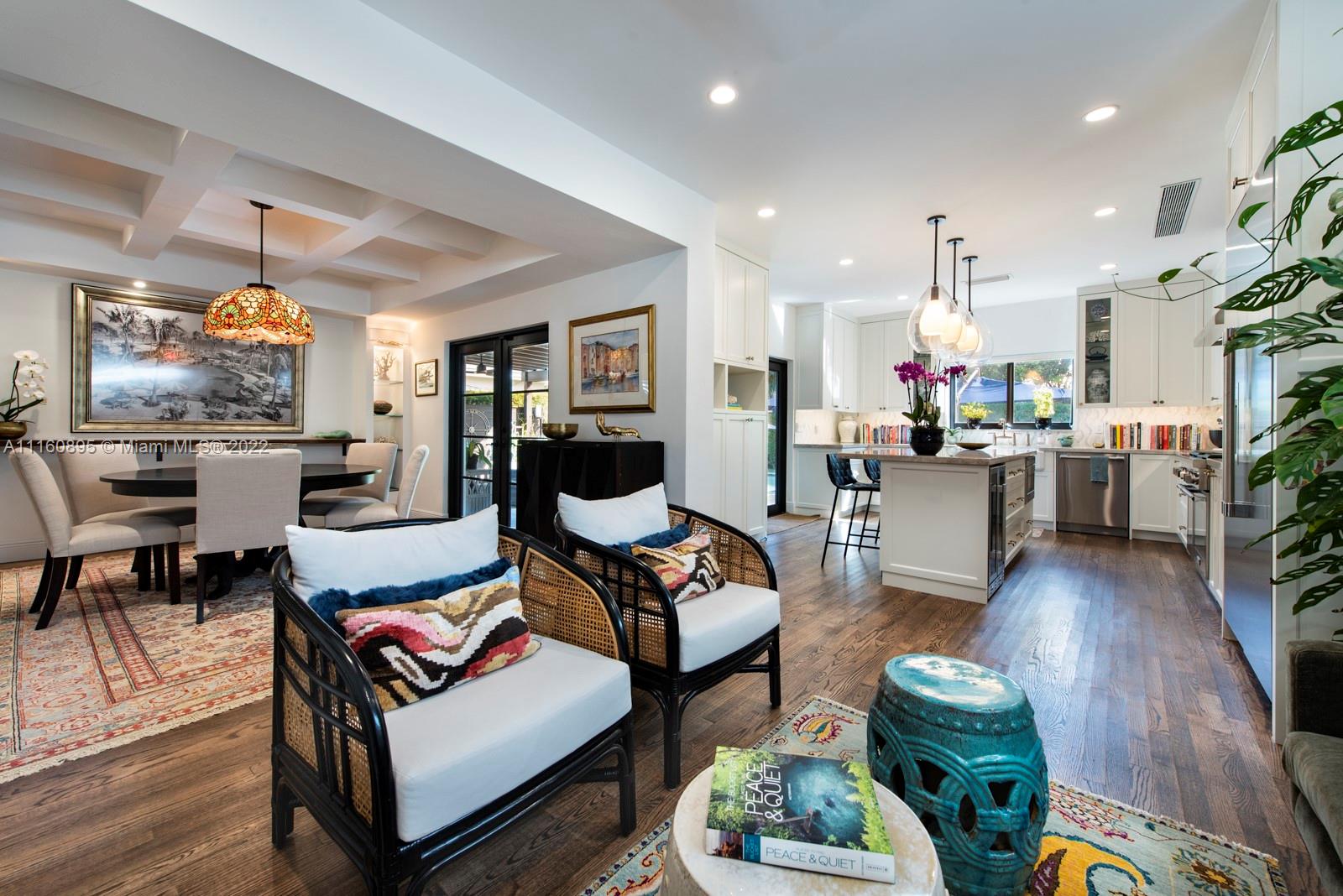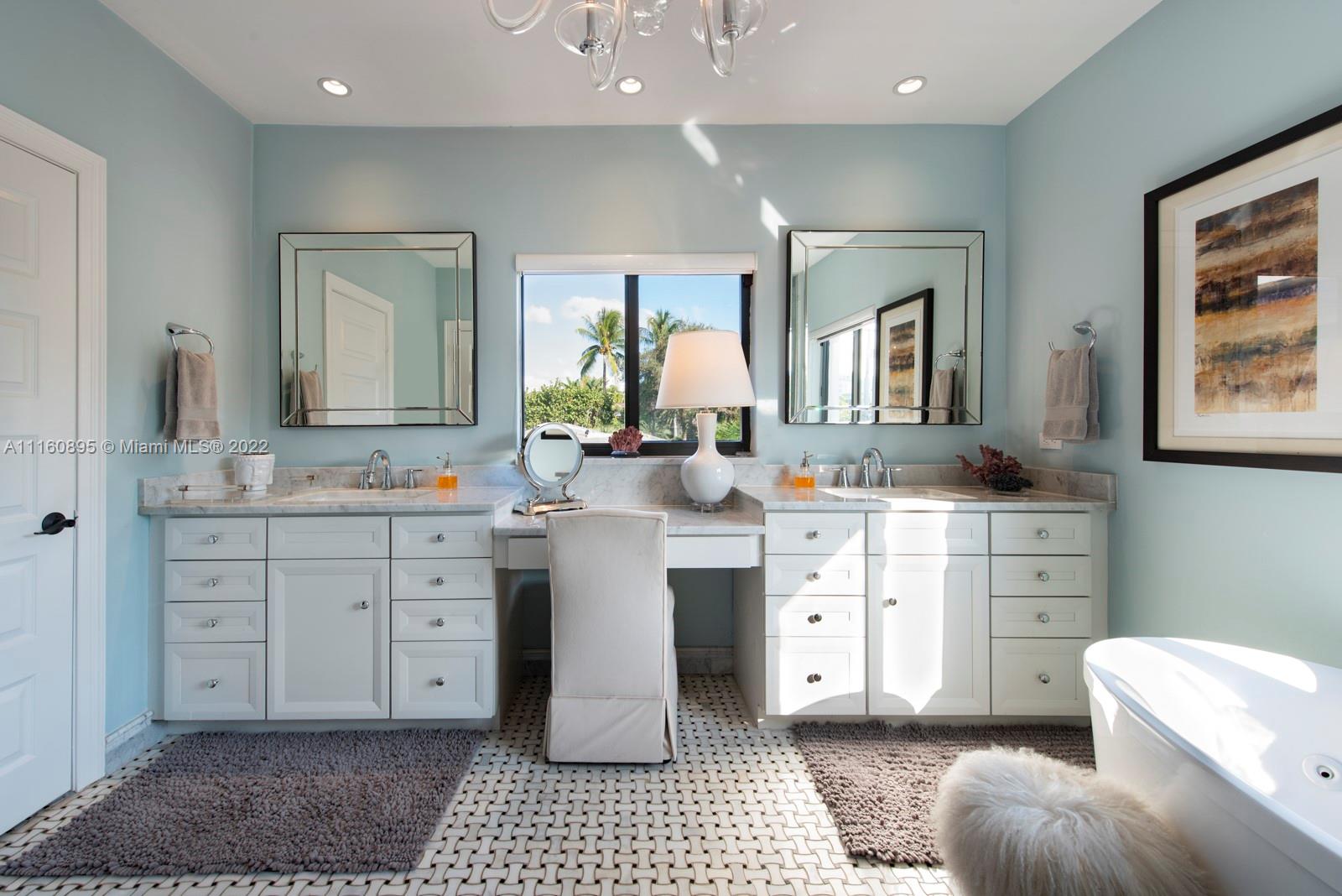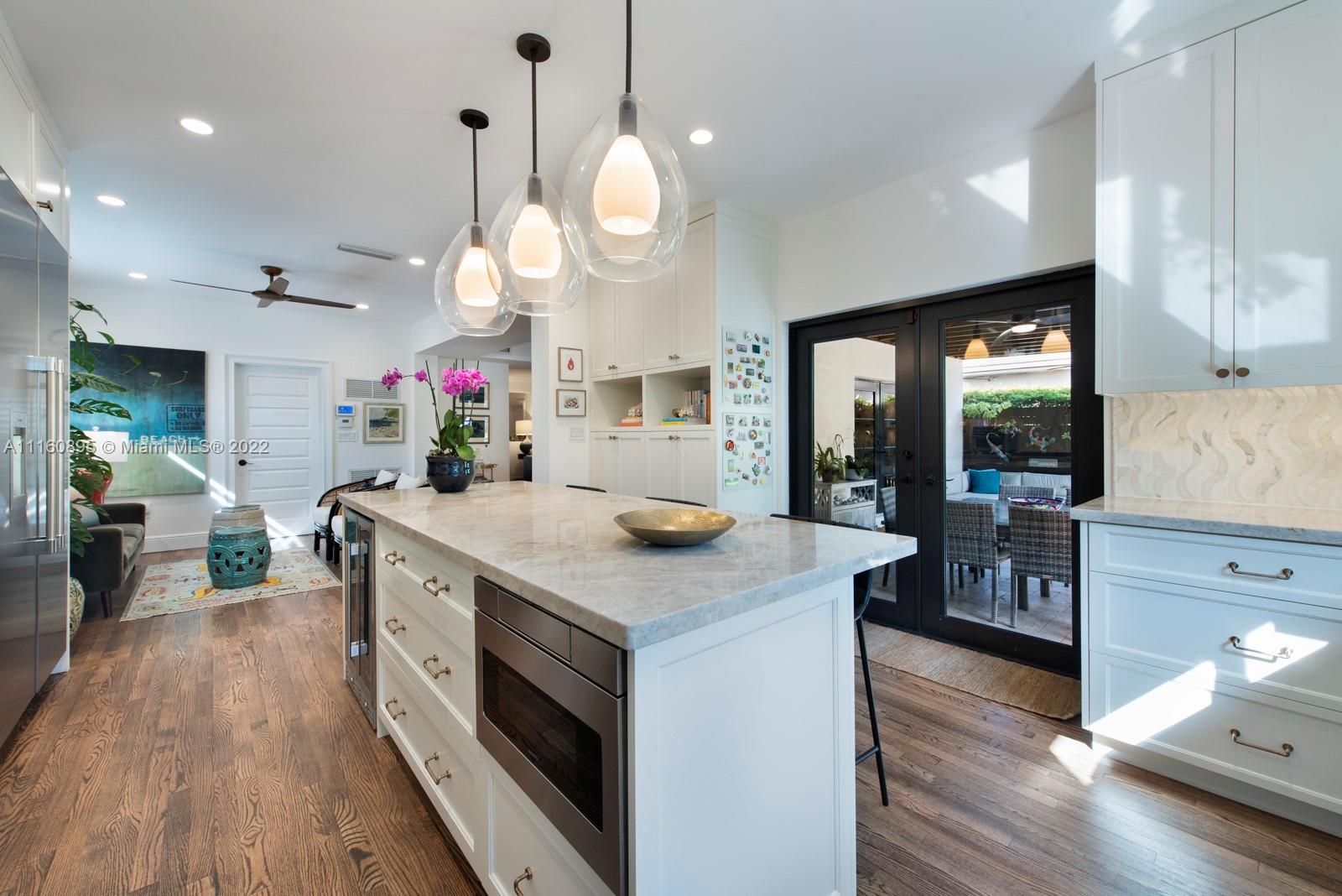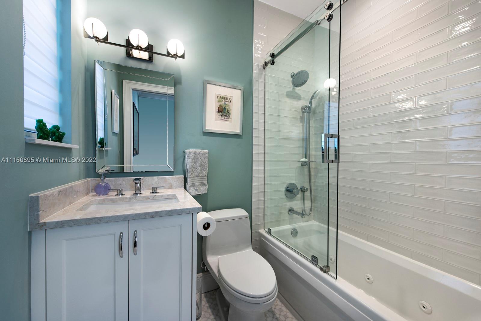 Elegant home in highly sought-after Miami Beach Lakeview neighborhood. This 3 bedroom plus den/office/guest room, 3.5 bathroom house was recently renovated with high end finishes throughout. Backyard has beautiful pool/hot tub, bamboo privacy hedge and large covered seating area. Chef's custom kitchen has quartzite countertops, large island with seating and new Thermador appliances. Upstairs primary bedroom offers private balcony and walk-in closet with island. Ensuite bathroom has dual vanity with make-up area, jacuzzi tub, steam shower and water closet. Downstairs bedrooms have ensuite bathrooms – one with steam shower – one with jacuzzi tub. Office/den has custom built in wall unit. Family friendly neighborhood close to parks, great schools, restaurants and the beach.
