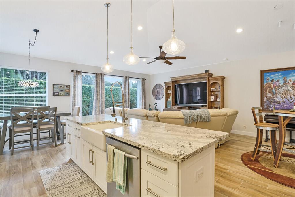 Renovated 2BR/2BA+Den/2-car garage masterpiece in Sandpiper Cove offered fully furnished! Boasting a brand new, two-month-old AC system, accordion hurricane shutters, a renovated interior, and a completely reimagined floor plan, this home feels fresh and contemporary, yet welcoming and warm. Designed in a transitional style, the Italian Porcelain flooring throughout the main living spaces offers a timeless look, enhanced by new, sleek baseboards. Gorgeous custom cabinetry featured in four areas of the home: the kitchen, bar, hallway, and den. The den features a handsome custom built-in with a quartz countertop. The kitchen features Cambria quartz countertops and white cabinetry with an upgraded stainless appliance package.