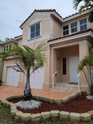 Beautiful 4 bedroom 2 1/2 bath townhouse with 2 CAR GARAGE, no rear neighbors.School inside complex, Miramar Regional Park, shopping, dining and I75 within 2 miles. The downstairs is tiled,Brazilian teak on stairs, upstairs manu wood! Freshly painted,formal dining area,separate living room, florida room leads out to beautiful tiled and fenced patio (great for entertaining). Monthly maintenace includes xl pool/spa/fitness center, basketball,tennis and more. Hoa maintains lawn, watering and 77 channel cable. Open kitchen boasts stainless appliances and connects to florida room and leads out to patio.HOA SAYS NO APPROVAL WAIT, NO RENTAL RESTRICTIONS. Complex has 2 exit/entrances.