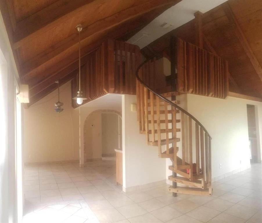 3 bedroom 2 full bath with a loft on upper floor( could be used as a 4th bedroom). elegant spiral stairs, No Home Owner Association, water heater and stove can be converted to gas or electric (to save money on electric bill). One of the largest lots in entire neighborhood. Amazingly huge backyard, room for a pool ,huge patio or basketball court ). The house sits on a cul-du- sac, and is on a quiet street. House is near the turnpike, major highways and shopping centers. Very unique cedar wood vaulted ceilings. within walking distance of great schools, wheelchair accessible home/spacious.