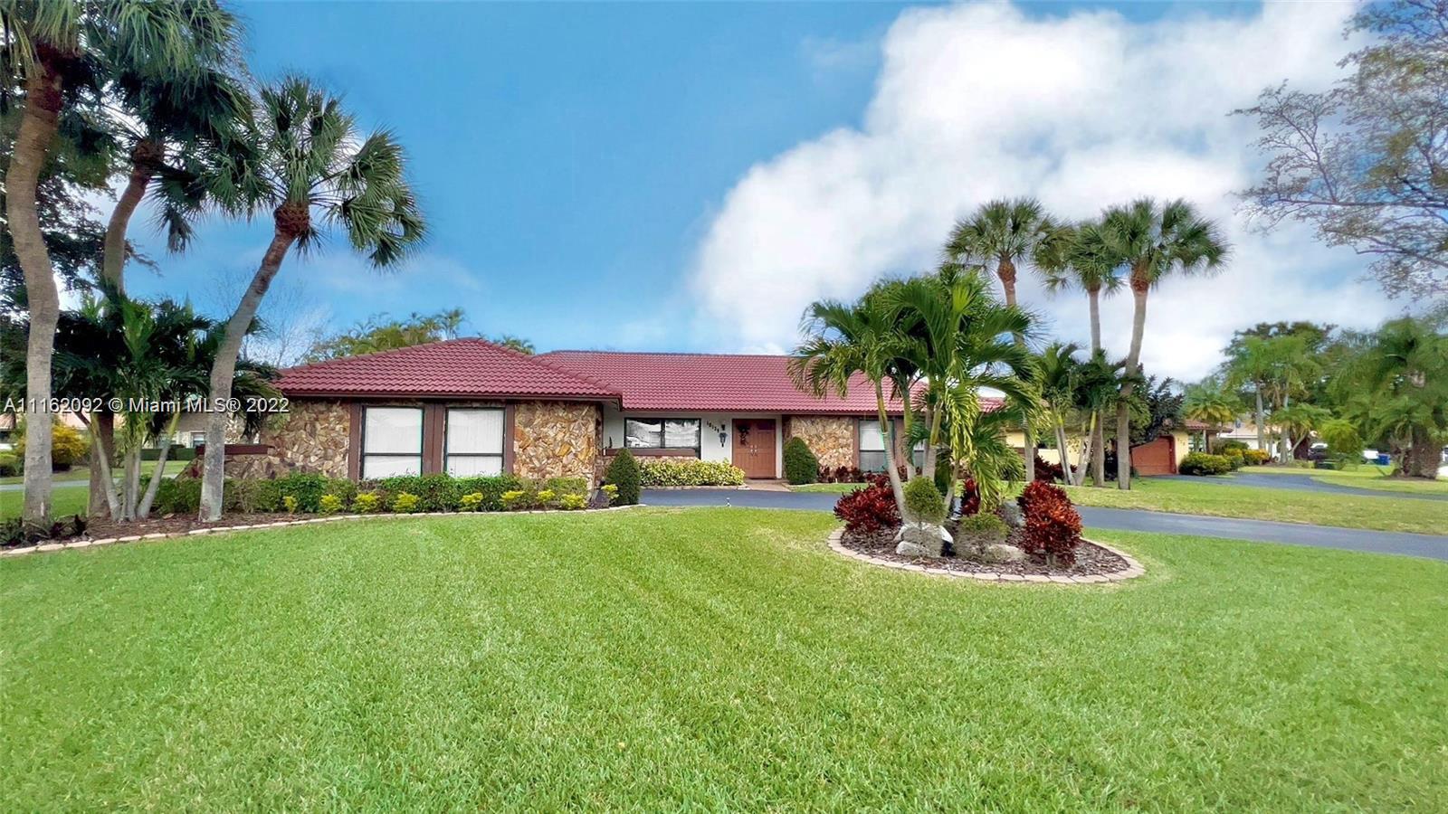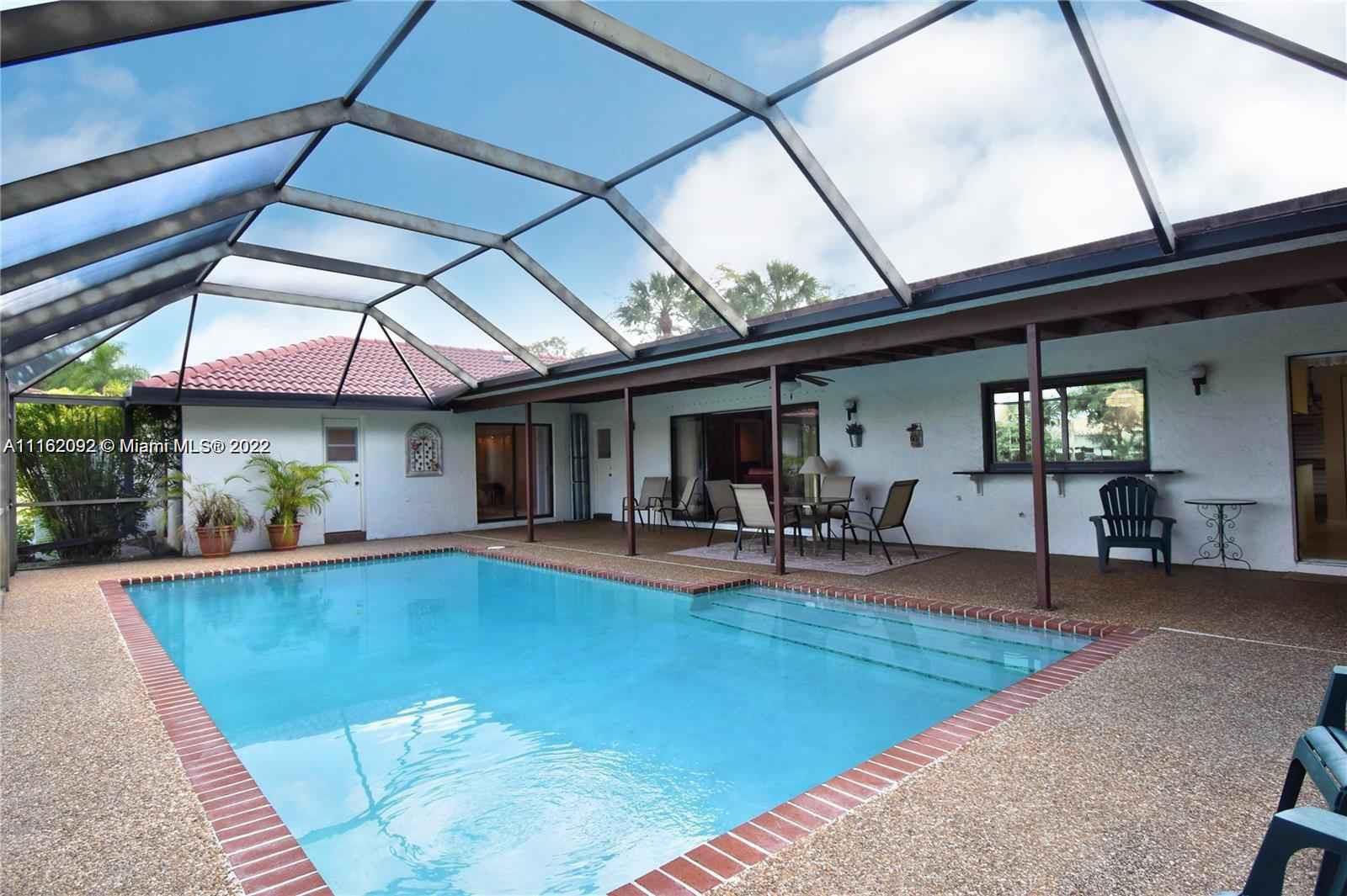 South Florida / Expansive WaterFront& Pool - One Story- 2,900 sqft2 Aprx. & 23,000 sqtf2 Aprox of land & corner Lot .Enjoy sunsets overlooking your oversized backyard and one of the best water views in Coral Springs! Open floor plan.Newer Impact Windows.Bathrooms with walk-in showers & cabana to Pool. 8 car Parking Near schools, shopping and restaurants, extra refrigerator & hurricane door, Master en-suite & 3 beds with all walk in closets, family room with vaulted natural beamed ceiling, int. coral rock wall, and custom-built wood wall unit. Kitchen includes granite counter tops, S/S refrigerator and dishwasher, pantry, and a custom island.Laundry room with washer/dryer. Beautiful landscaped lot with mango & lemon trees, sprinkler system from lake & sparkling screened-in pool and patio.