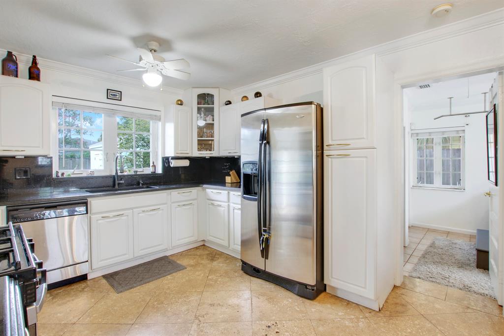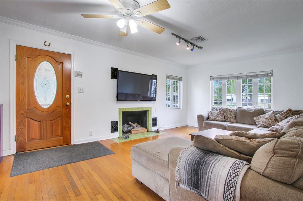 As charming as it is practical, this Northwood Shores home is situated 3 houses off Flagler drive, within sight of the intracoastal. Enjoy the sea breeze everyday and access the waterfront at Gettler Park at the end of the block. Inside you'll find charming original details like a beautiful gas fireplace, oak flooring and textured plaster walls. The newer kitchen features granite countertops with full granite backsplash and a stainless steel appliance suite. Major improvements completed in 2019 include a new roof plus soffits & fascia replaced with PVC, full A/C replacement with new ductwork and insulation. All openings are equipped with hurricane shutters for insurance savings. The lush fenced yard has coconut, mango and avocado trees, plus a 16x8 shed & 12x21 deck. Showings start 2/26.