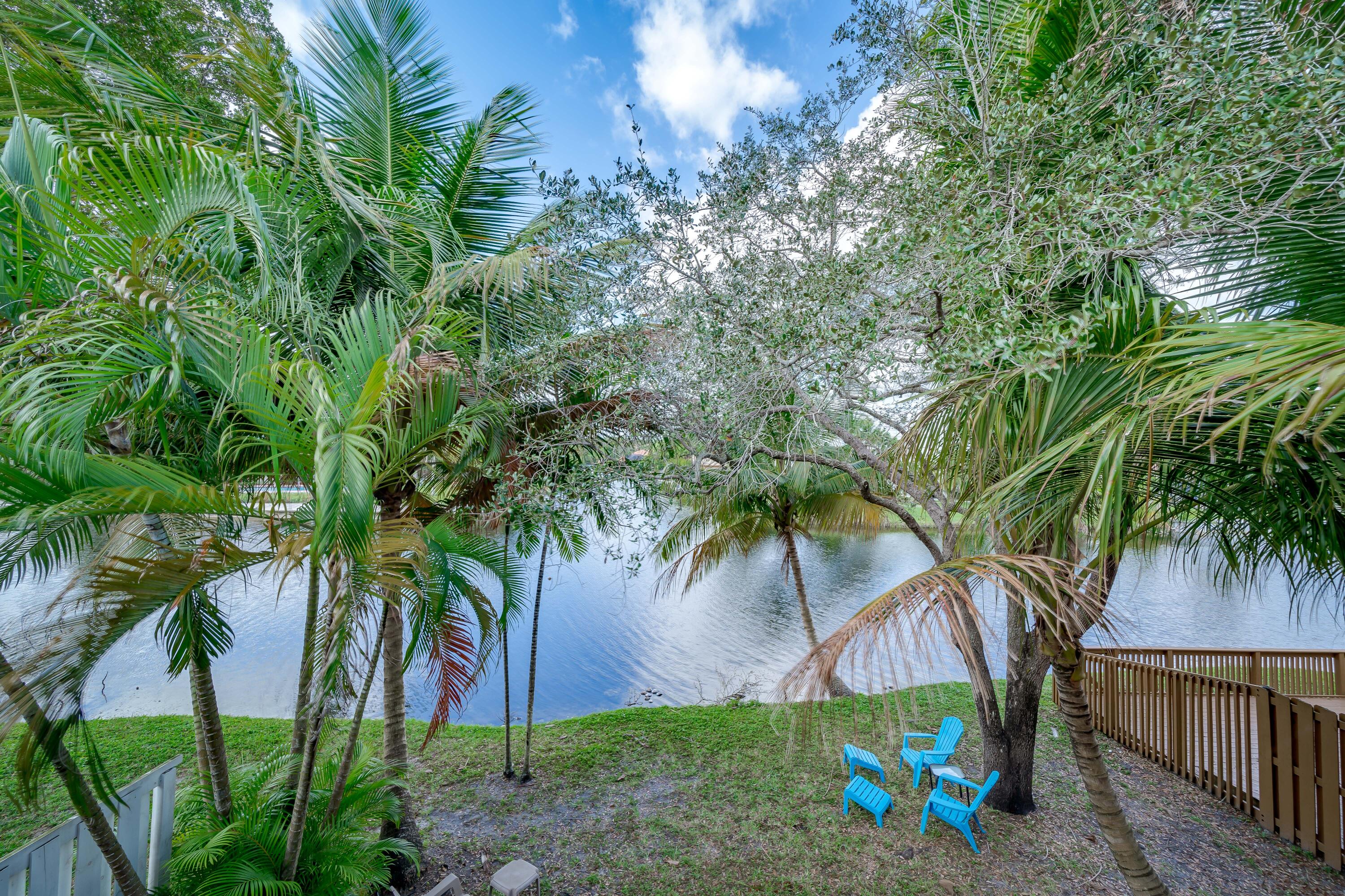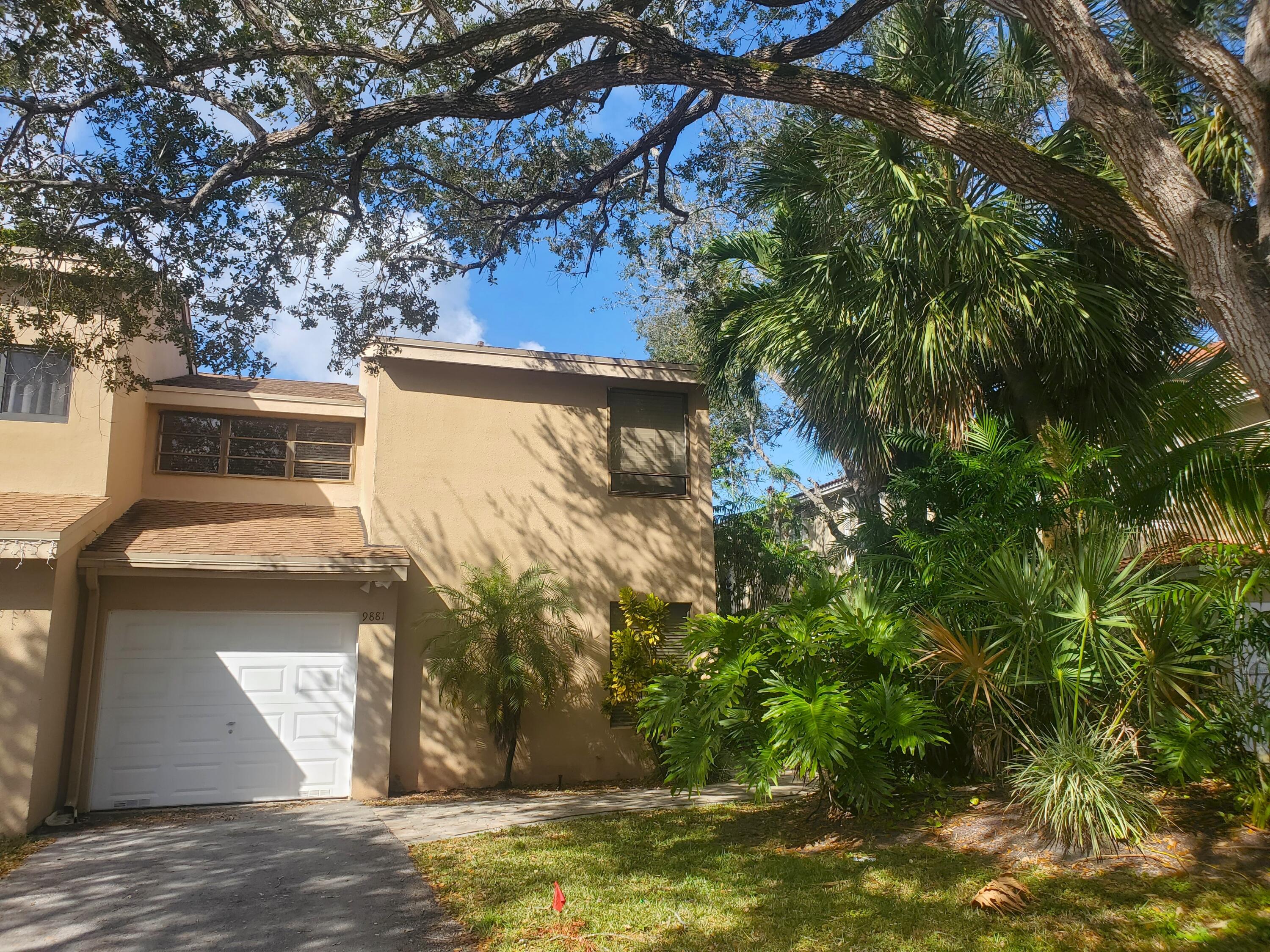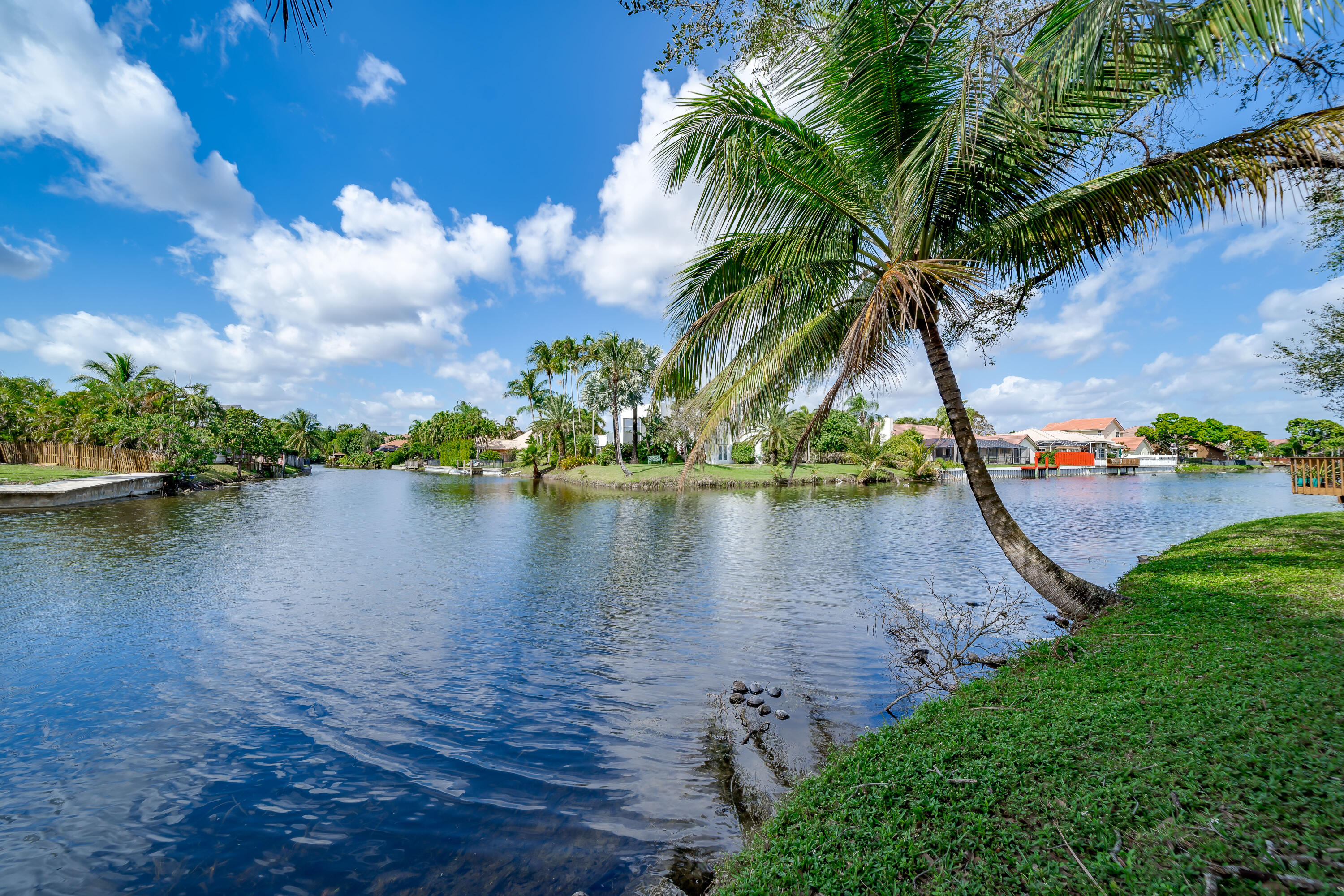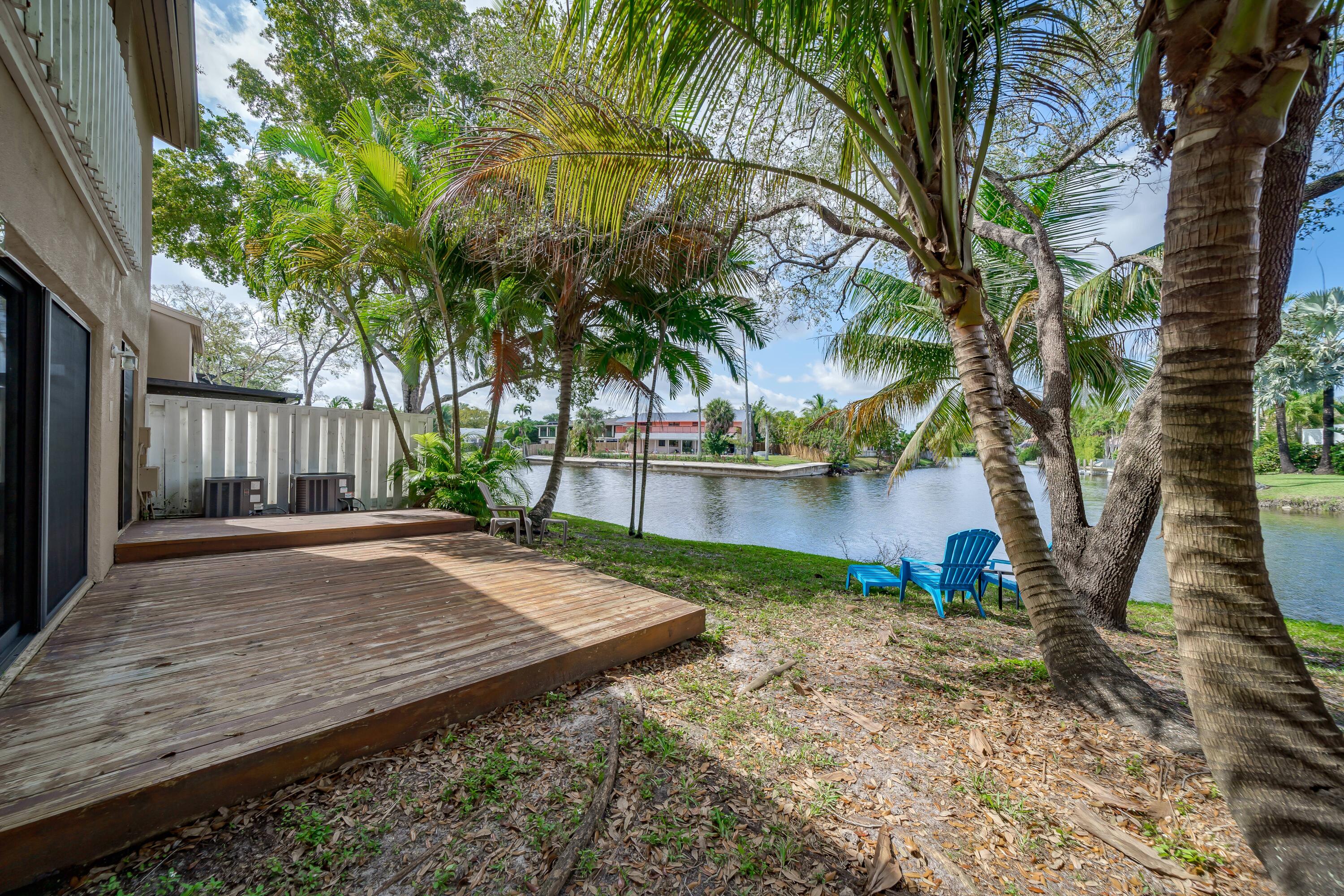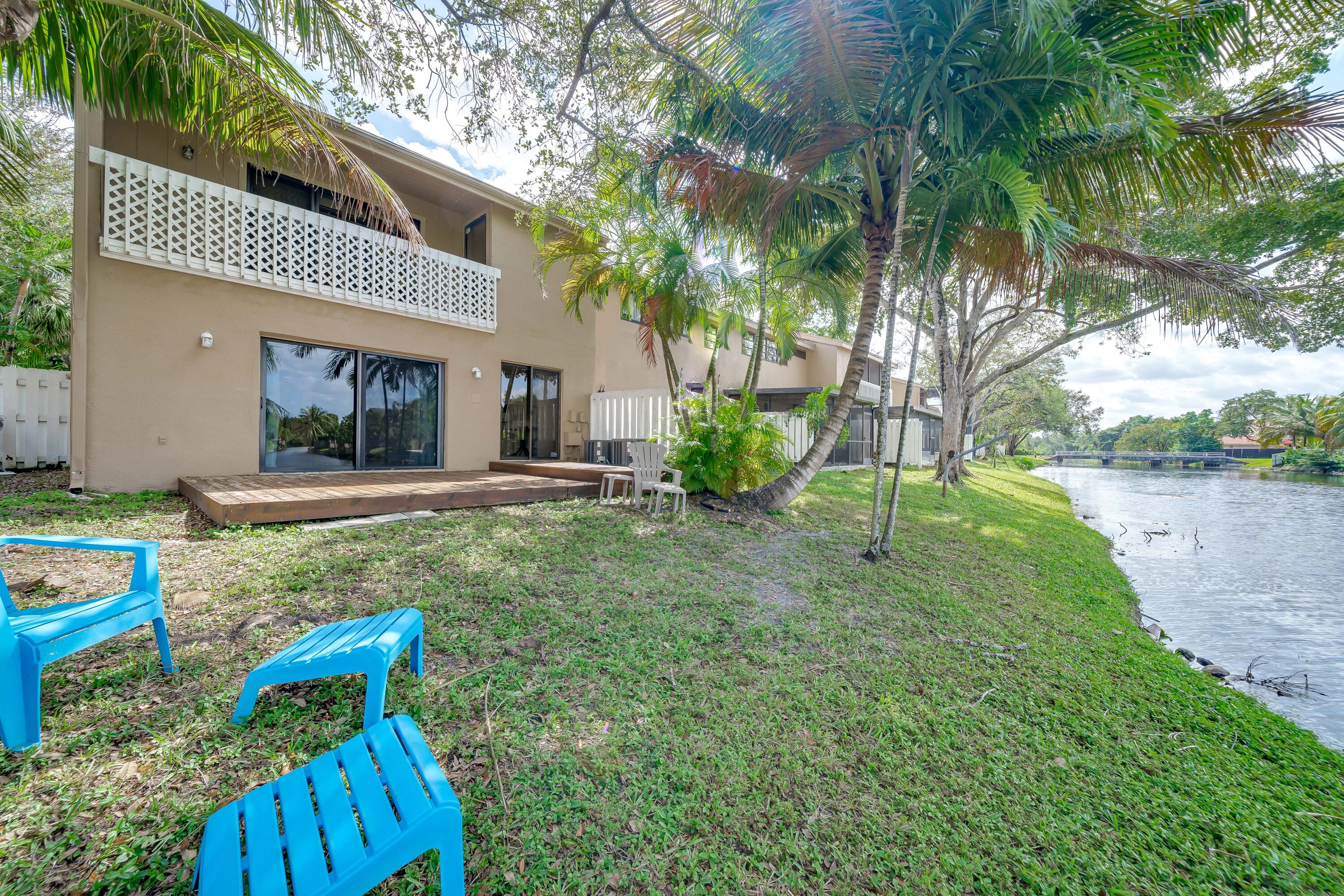 Endless water views from this corner townhome next to the Jacaranda Golf Course! Direct water views down a wide T shaped canal offering views straight across, left & right... Water everywhere! Enjoy a perfect Florida waterfront sunset from your large wooden deck w palm trees. Spacious floorplan 3 bedroom plus den/ one bedroom downstairs. 1 car garage. Remodeled kitchen, granite, crown molding, tile & L wood floors! Serene water views from the living room, mater bedroom, balcony & back yard. Front privacy fence & Freshly painted interior. Seller paid 7k roof assessment/ association to install new roof! Low HOA dues include most exterior maintenance, cable & community pool! Close to 595, major highways & shopping. Great neighborhood to enjoy life, invest & vacation! Furniture negotiable