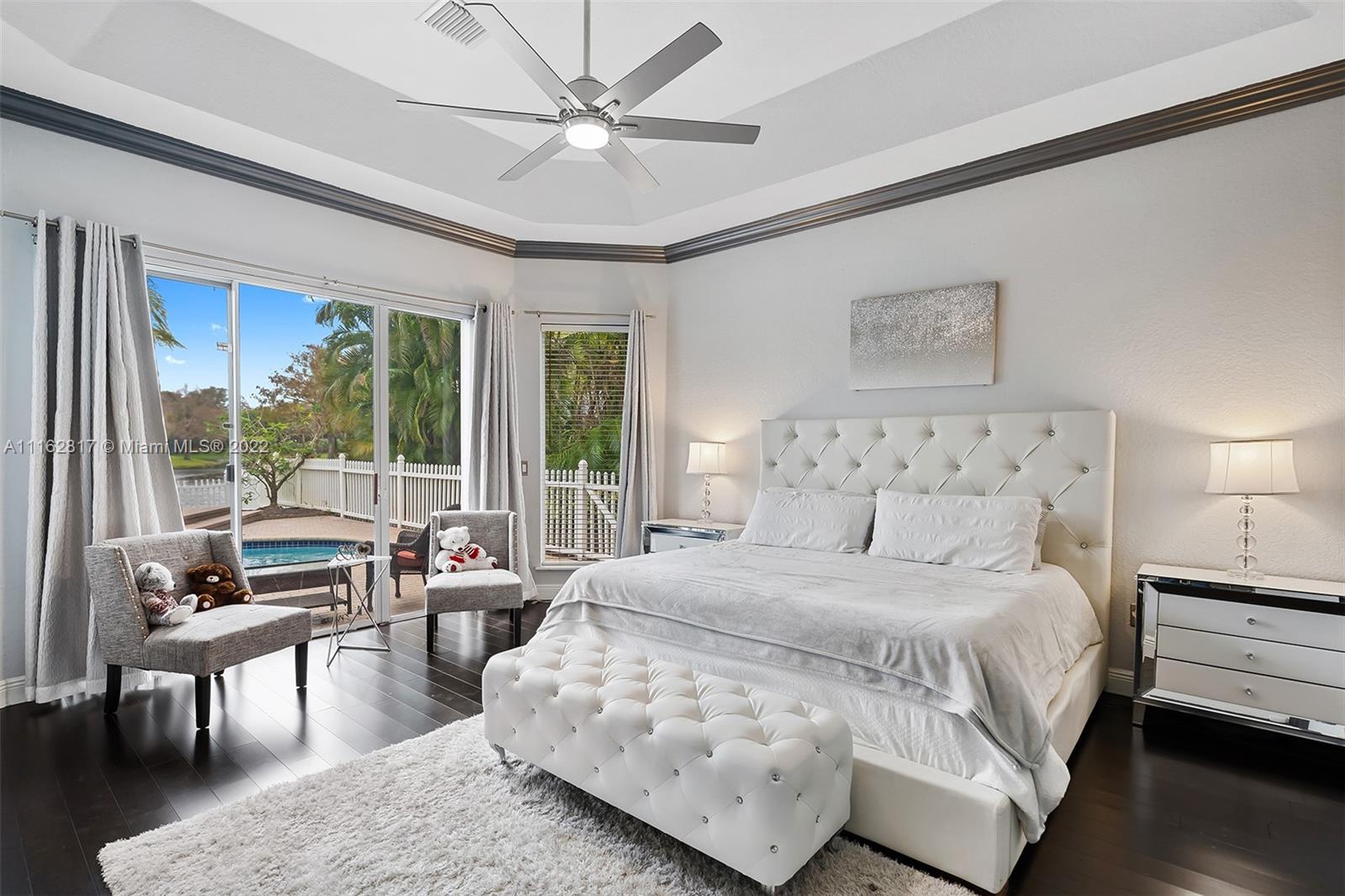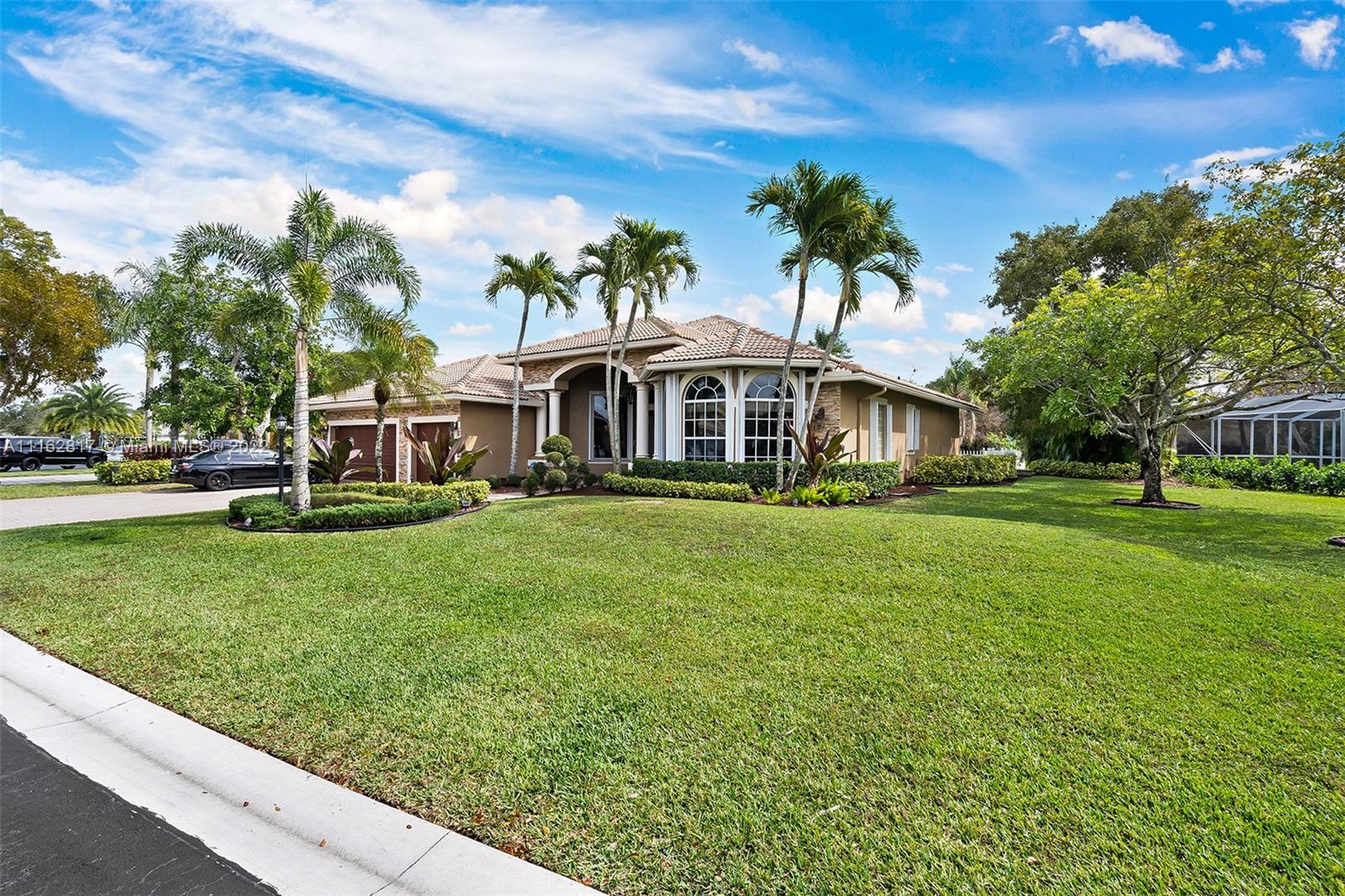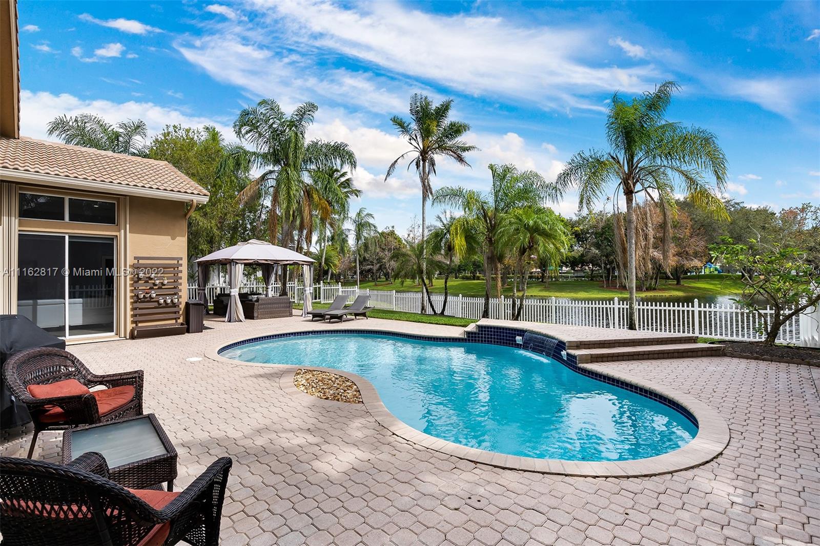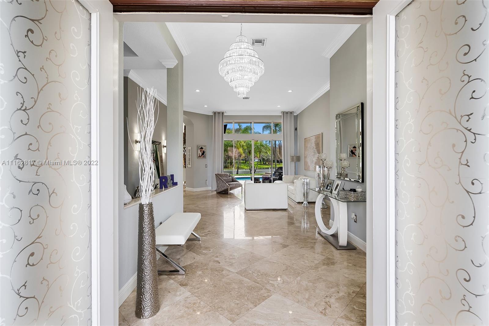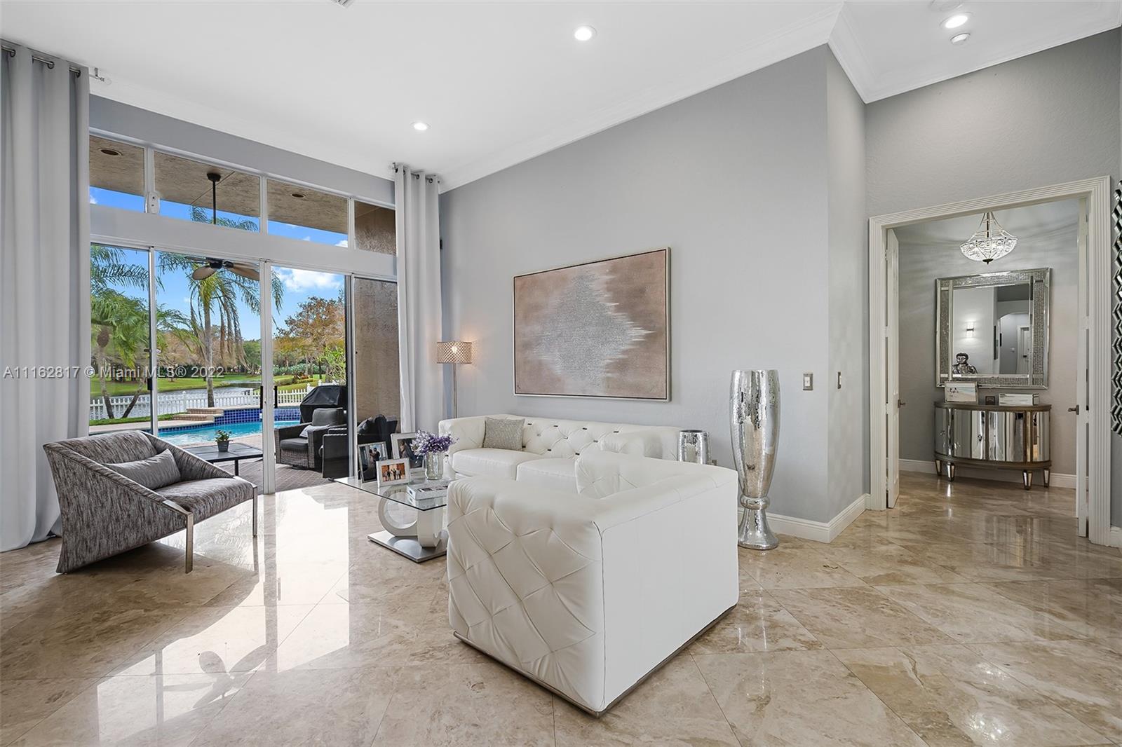 This is the one! Walk up to the covered grand entrance and open the doors to this stunning 5 bedroom, 4 bath waterfront pool home in Meadow Run on over 1/3-acre lot on cul-de-sac street. Marble floors throughout living areas, large master suite with beautiful bamboo floors and his and her walk-in closets, amazing updated white custom kitchen with quartz countertops, accordion shutters. Large patio area perfect for entertaining. Enjoy the serene water and park views from the master suite, living areas and kitchen. Meadow Run is a guard gated community, centrally located, close to shopping and major highways, top rated Parkland schools. See this beautiful home before it's gone!