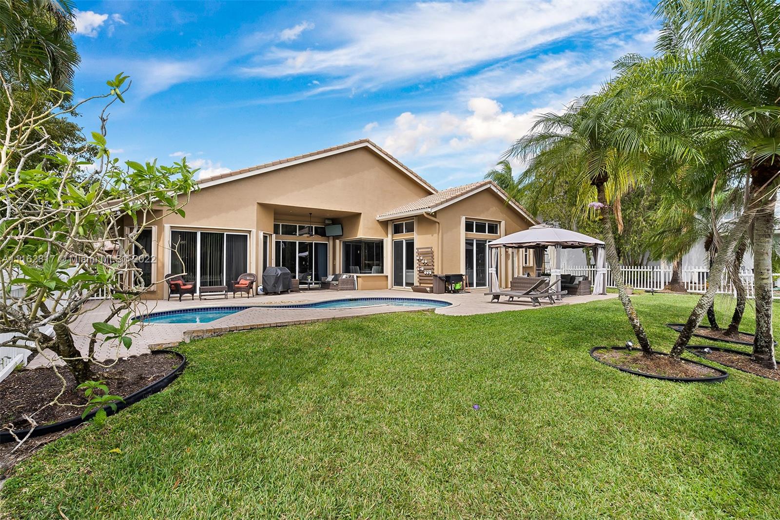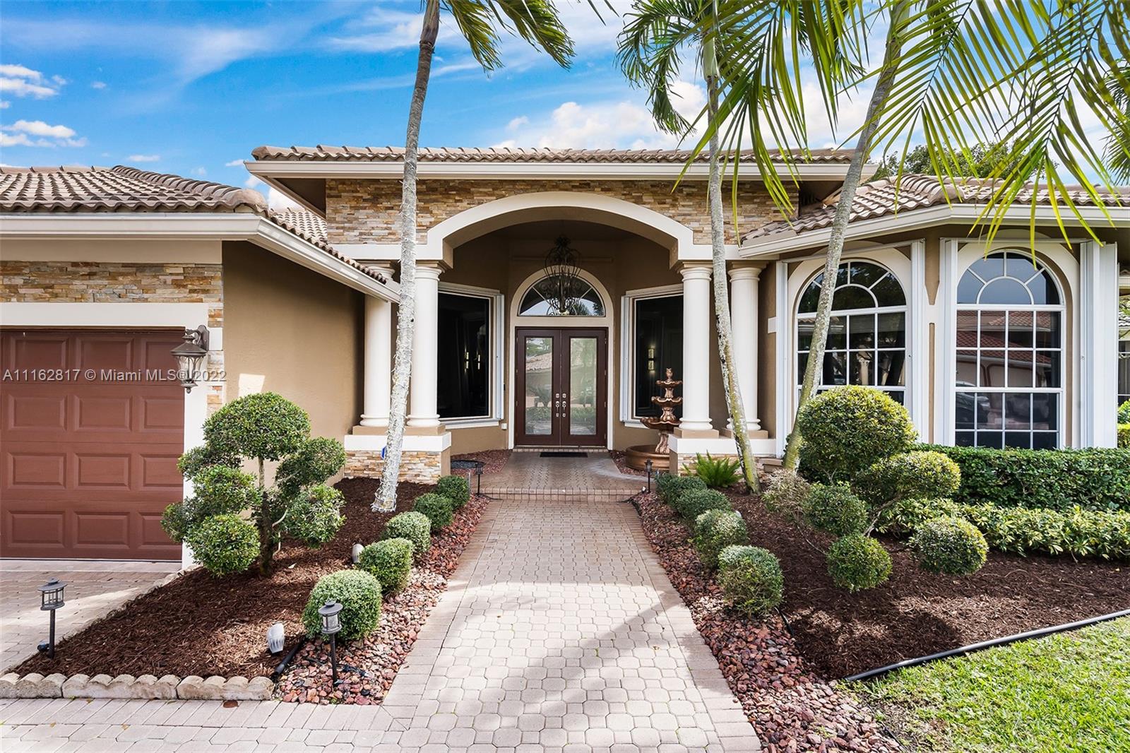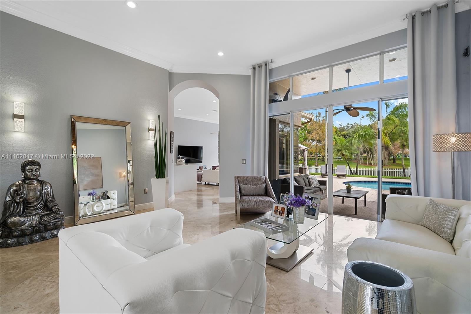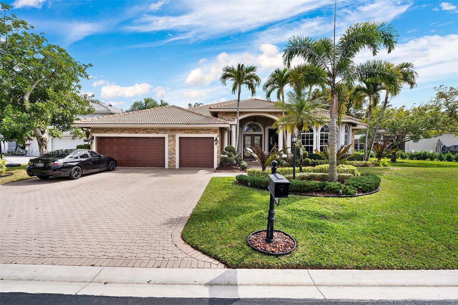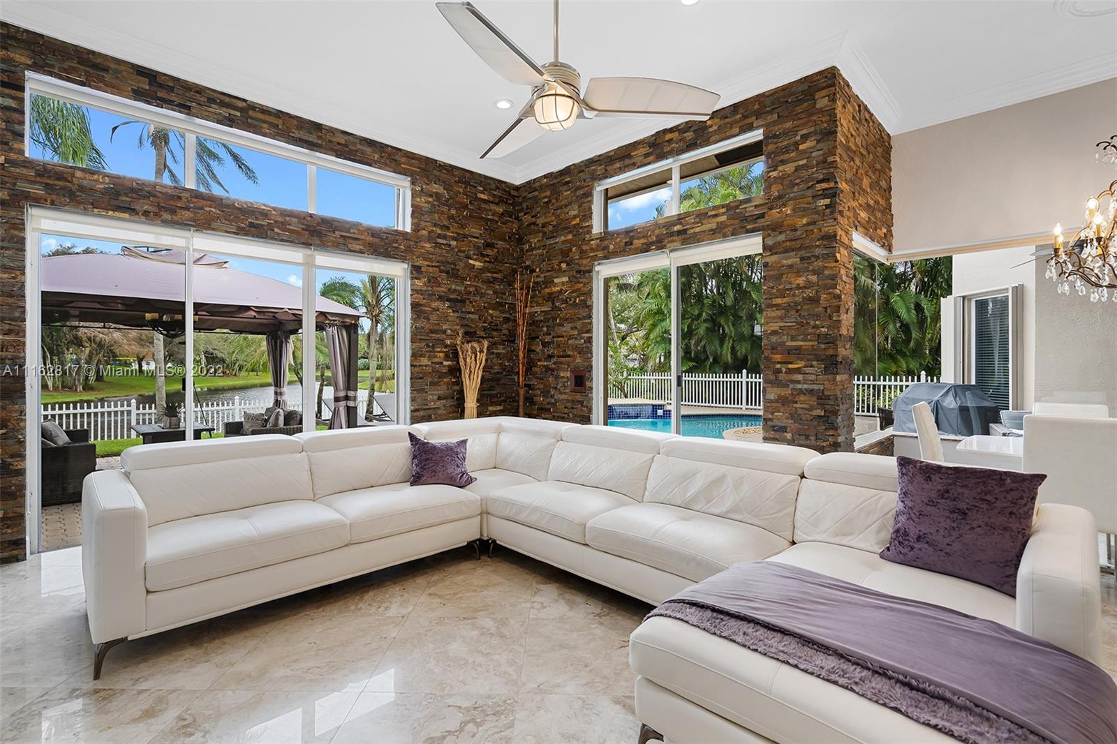 This is the one! Walk up to the covered grand entrance and open the doors to this stunning 5 bedroom, 4 bath waterfront pool home in Meadow Run on over 1/3-acre lot on cul-de-sac street. Marble floors throughout living areas, large master suite with beautiful bamboo floors and his and her walk-in closets, amazing updated white custom kitchen with quartz countertops, accordion shutters. Large patio area perfect for entertaining. Enjoy the serene water and park views from the master suite, living areas and kitchen. Meadow Run is a guard gated community, centrally located, close to shopping and major highways, top rated Parkland schools. See this beautiful home before it's gone!
