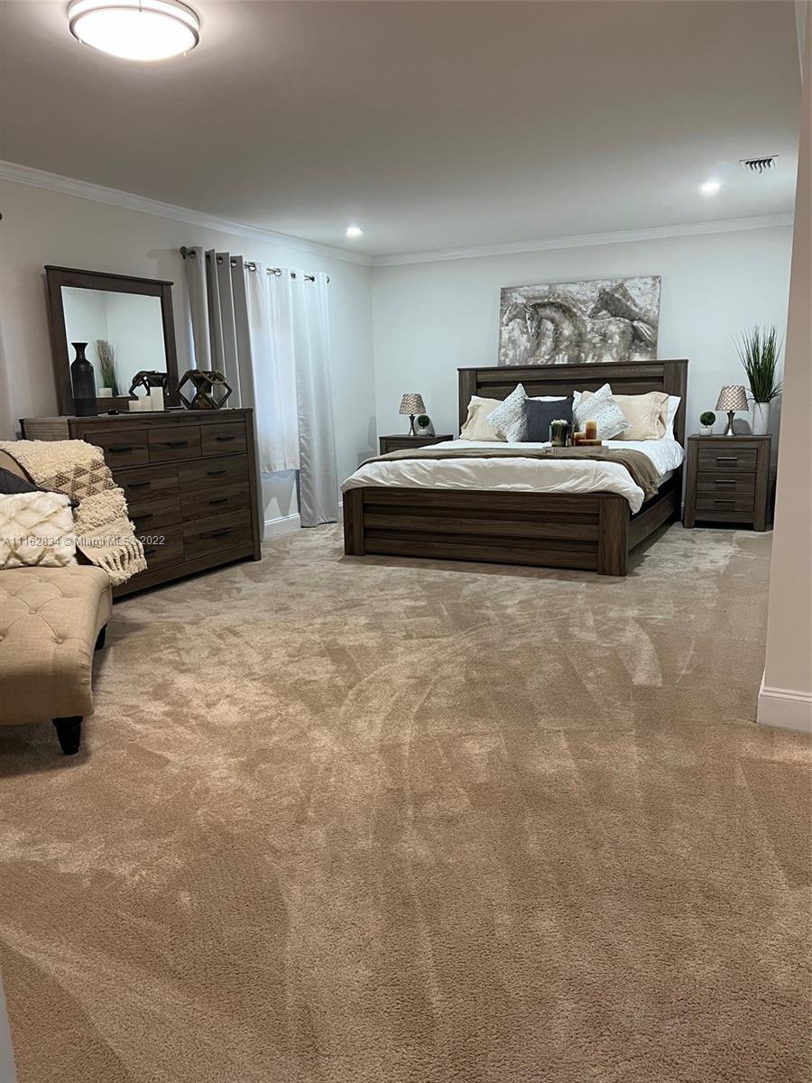 Tastefully remodeled home located in coveted Lakes on the green community. One of the largest model homes in the community. Freshly painted home and roof top with cool sealant to keep house cooler inside. 4 huge bedrooms 2.5 bath with spacious closets. Master bedroom has a large sitting area and a huge walk in closet. Remodeled bathrooms. Impact windows throughout the entire home. New AC. Gas range and water heater. Beautiful dark brown wood kitchen and stairway. Screened in porch. House sits on an oversized corner lot with tons of privacy. Alarm and camera system throughout the home. Two car garage with Tesla charger in place and tons of parking. Laundry room is under AC. HOA only $170. Space for all your toys and or pool. Community is located close to the Rock Quarry.