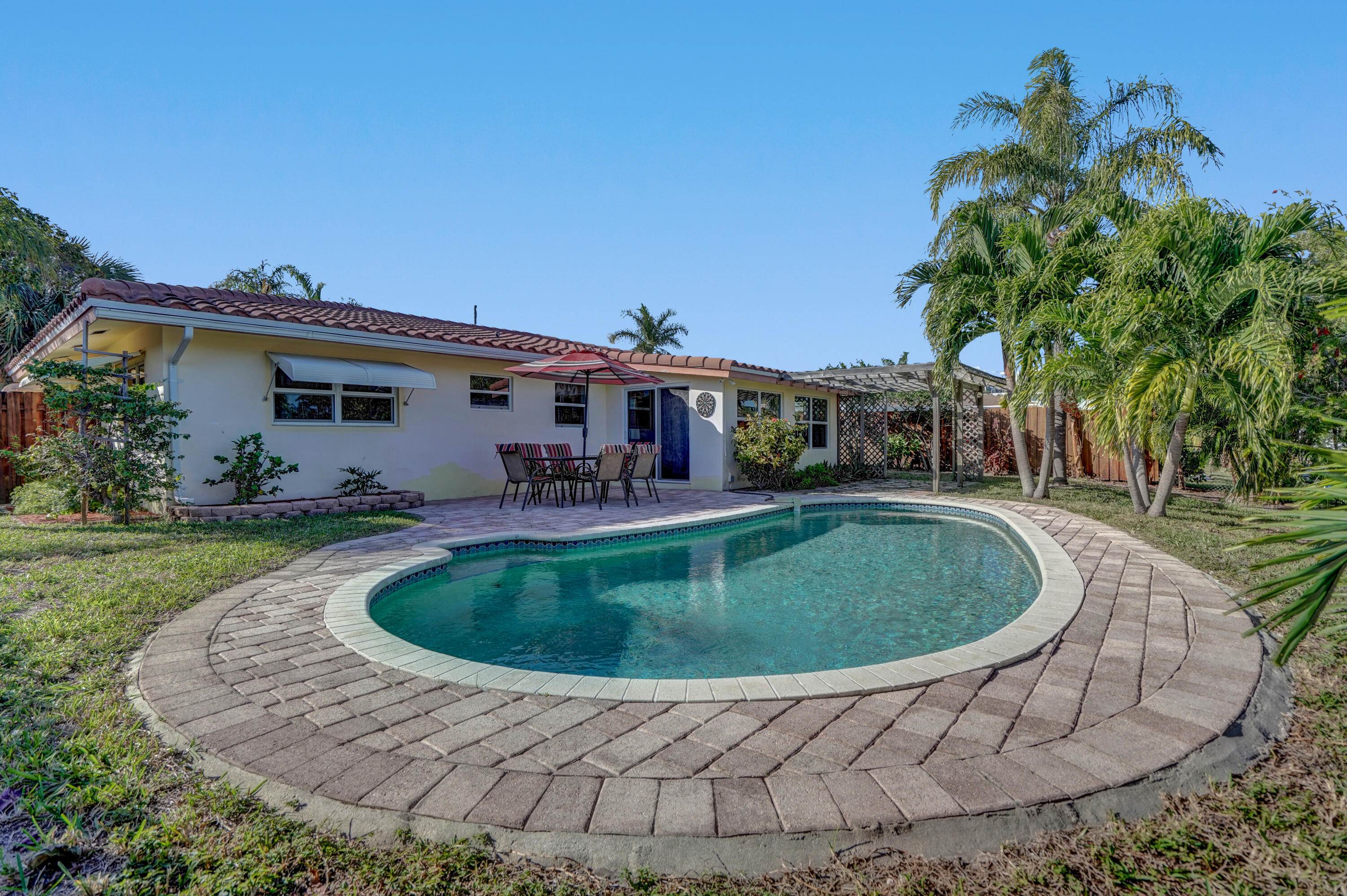 You are going to fall in LOVE with this home the moment you enter. This well maintained CBS waterfront pool home with ocean access is move-in ready and has 70 ft of water frontage. It is minutes from the Intracoastal. The home features a large fenced in yard with your own private dock, a tropical pool with an east exposure, impact windows, large enclosed sunny Florida room and an interior laundry room. The kitchen has been updated with granite countertops and SS appliances. Enjoy days filled with swimming in your sparkling blue pool with expansive wide water views. Easy access to the Intracoastal & restaurants. Just 10 minutes to the beach, pier and trendy restaurants. Don't miss your opportunity to own your slice of paradise.