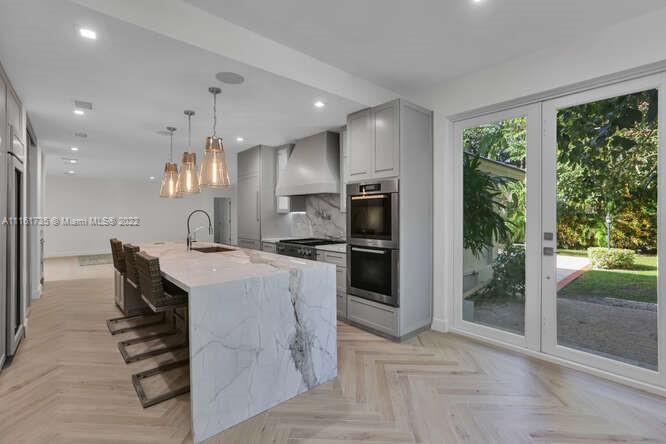 Beautiful and fully remodeled house in the gated community of Palm Estates on 22400 square foot of lusciously landscaped land. This lovely home has 4944 sqf under AC, abundance of natural light, 10 foot and vaulted ceilings, 5 bedrooms, 5 bathrooms, powder room, formal dining room, family room, 3 seating areas and a large 2 car garage. Italian flooring throughout, new gourmet kitchen, chef's island, waterfall marble counter-tops, Miele Professional gas cook-top, double oven with French grill, Subzero refrigerators, 100 bottle wine cooler and generator. This house has it all! With French lamppost light, three lined manicured access, this extraordinary home is also located near Matheson Park, Fairchild Tropical Garden and some of the top schools in South Florida.