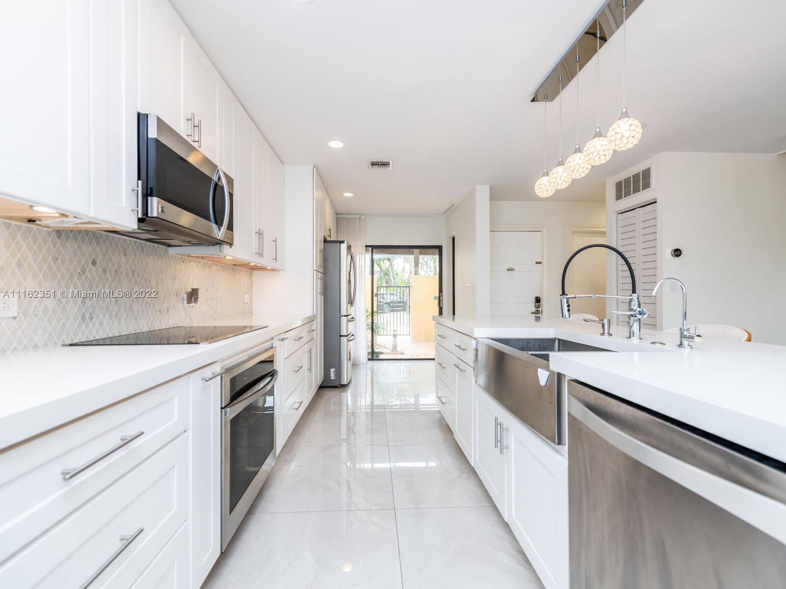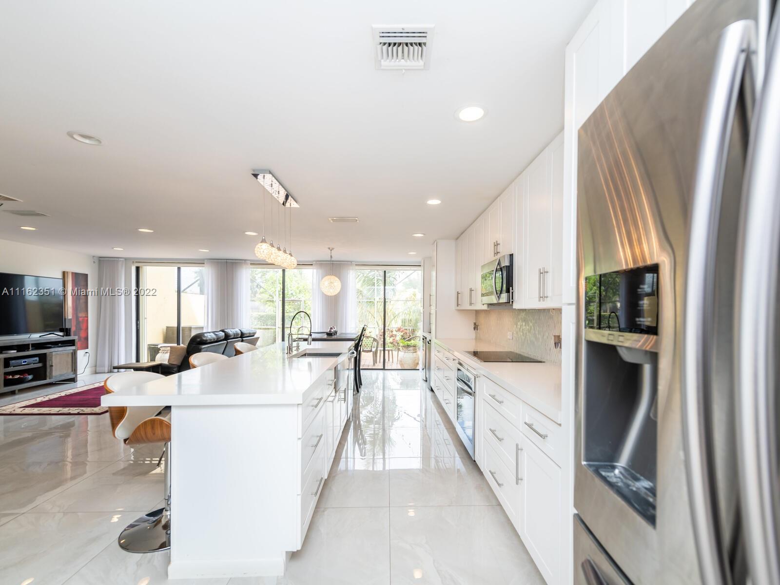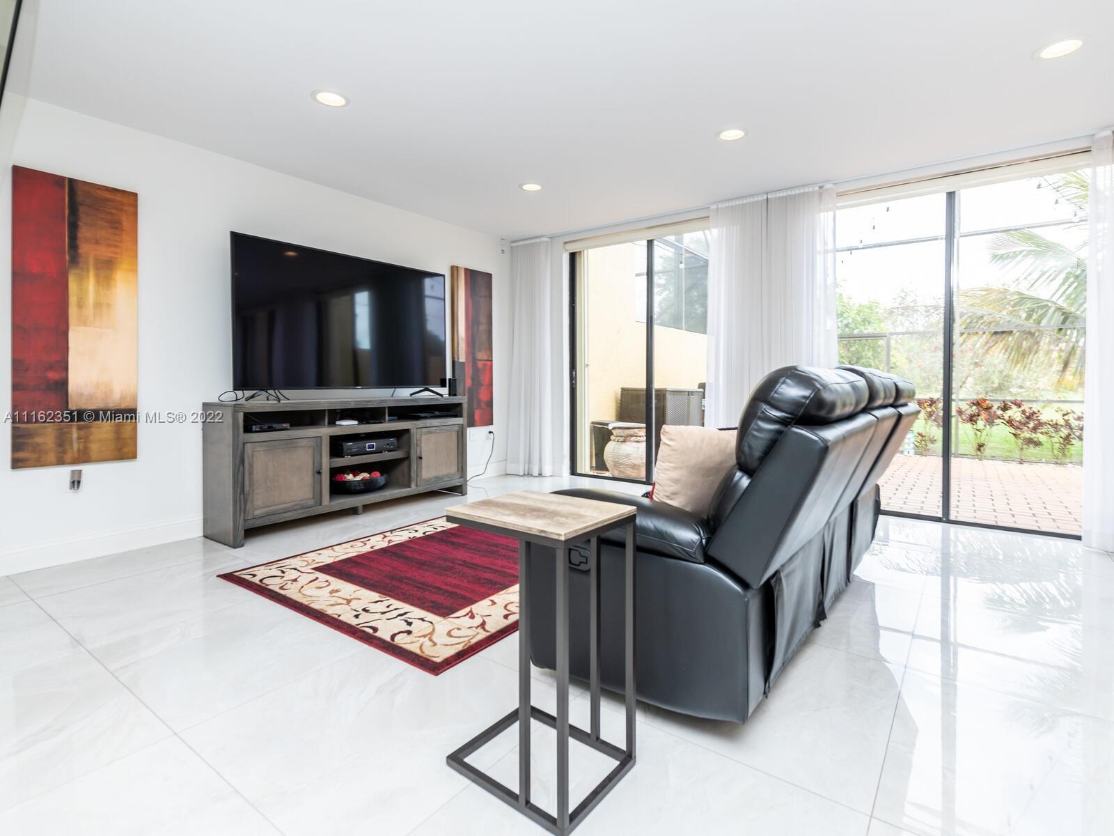 GOLFER'S PARADISE! Fully remodeled w/great materials such as porcelain (32x32) & hardwood floors. It features open kitchen & designer bathrooms. Kitchen has reversed osmosis water filter, new s/s appliances, wine rack & cooler, mini fridge. Recessed lights, Alexa/Apple home ready. Light switches w/z-wave. Bedrooms w/blackouts & sheer curtains, all custom closets, Master closet converted to walking closet. Hurricane proof garage door, Accordion shutters. Garage w/racks & freezer. Sheer curtains & roller blinds, screened terrace & spacious backyard facing Golf course. Great gated community w/18 holes golf course, tennis & basketball courts, gym, pool, playground and restaurant. No subject to appraisal. Assoc. includes roof, ext. paint, water, insur. wifi & cable. *DO NOT DISTURB TENANT*