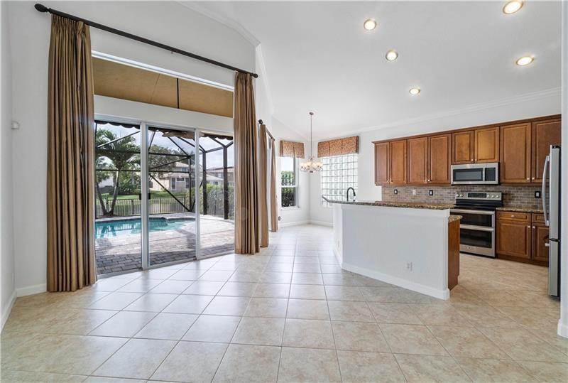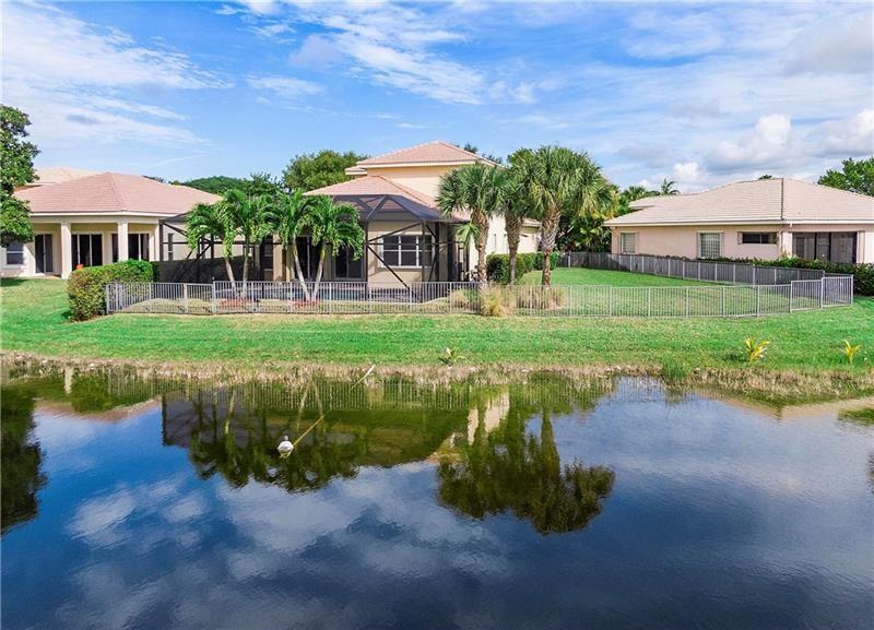 Gorgeous lakefront home in the Heron Cove subdivision of Heron Bay. Stunning lake views from the master, kitchen family room and upstairs bedrooms. Enjoy beautiful sunsets from your covered patio. This 5 bedroom, 3 bath home is on a cul-de-sac and features heated pool and spa with screened enclosure, and an oversized lot for entertaining. Tile and laminate flooring throughout. Kitchen is equipped with stainless steel appliances and granite countertops.