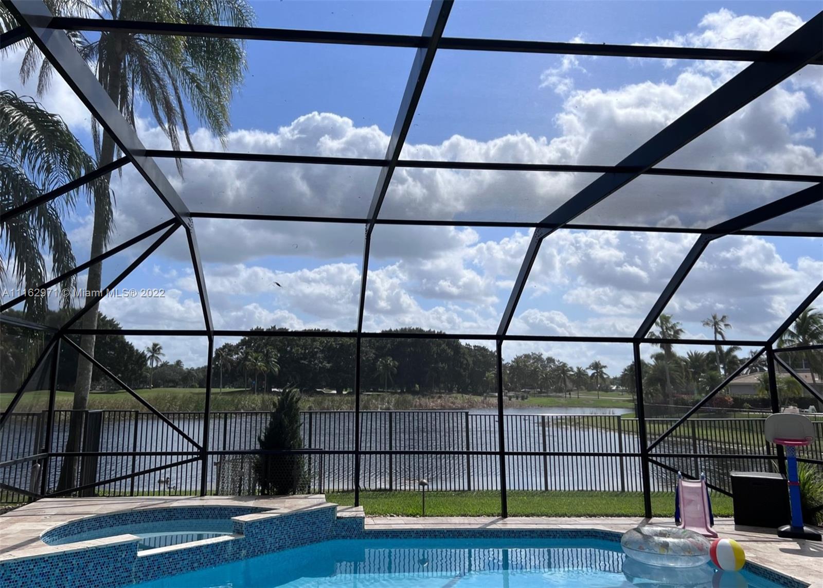 Exceptionally modern 5-3 One-story home with a 3 car garage, screened pool with fabulous lake and golf course view in exclusive gated Weston Hills CC. 12-15 feet volume ceilings, custom wood kitchen cabinets, stainless steel appliances, Calcutta countertops, and marble floors throughout. The 5th room is a den, which can be used as a small bedroom. Over-sized screened pool deck & heated diamond Brite pool, spa, and waterfall overlooking the lake and golf course.