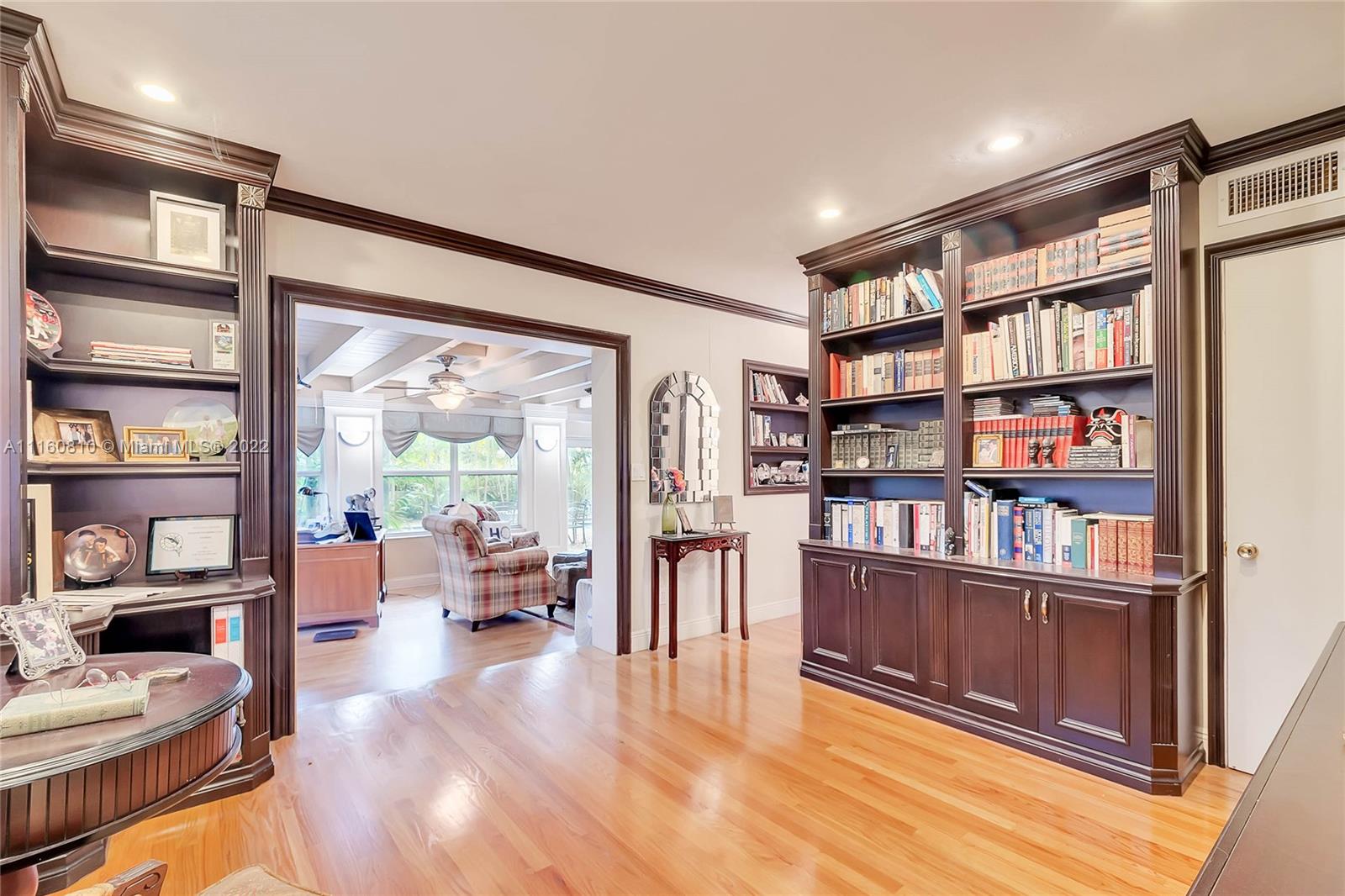 Prominent double lot in heart of Miami Shores! Traditional layout features formal dining and formal living rooms off of front entry. Library/office on first floor. Large kitchen opens to oversized Florida Room. Four bedrooms, including master are located upstairs around a central upstairs den area at top of stair landing. Easy access to Miami Shores Country Club, Community Center, Aquatic Center and other amenities along the tree-lined streets of this wonderful community. Update to your liking. House needs a new roof.