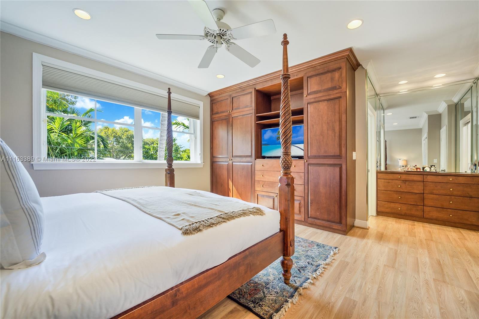Beautiful elevated Key West style split level home located on the very desirable Myrtlewood Lane. Open layout with vaulted ceilings, combining spacious family room with large, beautiful kitchen equipped with high end appliances. Separate formal living room and dining room. 4 Bedrooms (fourth bedroom converted into an office) and 3 1/2 bath bathrooms. Double car garage converted into extra bedroom, full size bathroom and entertainment room. Family room opens to ample outside area with tiled sundeck and patio with Chicago brick pavers. New roof (2018). Hurricane shutters. Hard wood floors. Full house generator. Great house for entertaining. Beach Club membership. Seller will assign all interest in Grand Bay Club membership to buyer (pool, beach, etc.), subject to Club approval.