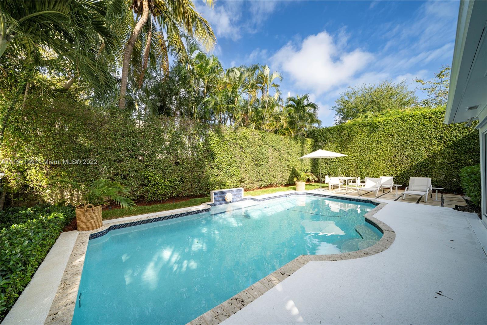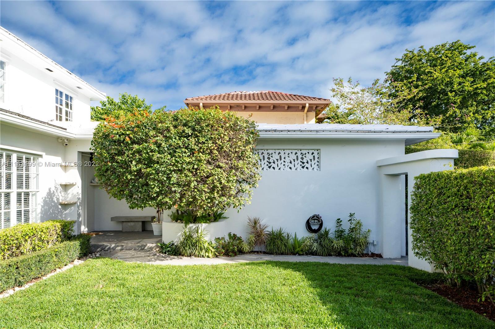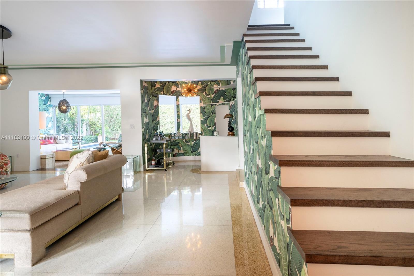 Glamorous Art Deco beauty on prestigious Pine Tree Dr. This is the perfect home for entertaining! Enter into courtyard through the walled & electric gated entrance w/2-car garage & plenty of parking. This remodeled home offers indoor/outdoor living w/magical natural light throughout leading to the lushly landscaped private backyard w/pool & lounge. 2B/2BA UP w/primary suite opening to huge terrace w/staircase leading to backyard. 1B/2BA + den DOWN w/gas gourmet kitchen & upgraded finishes.
