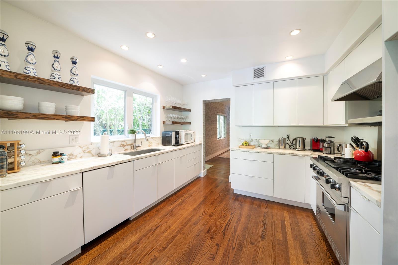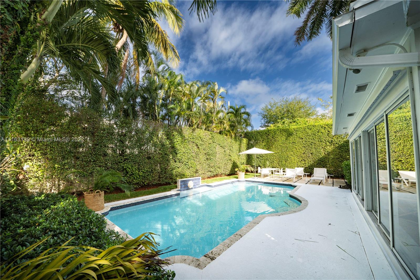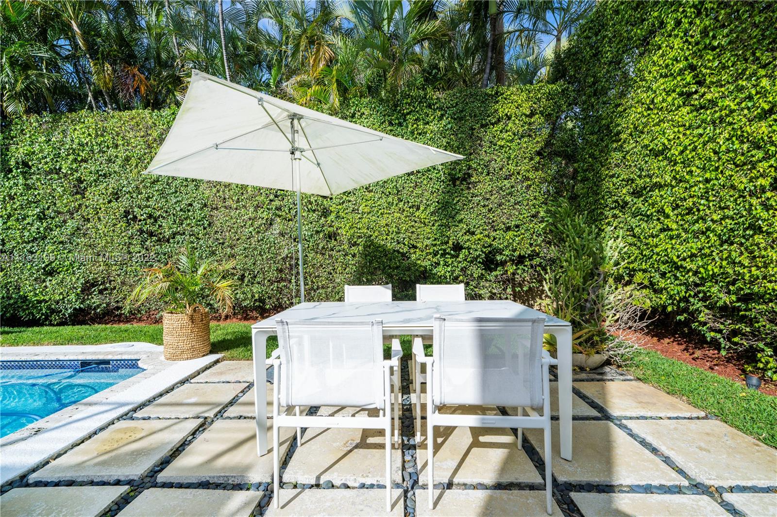Glamorous Art Deco beauty on prestigious Pine Tree Dr. This is the perfect home for entertaining! Enter into courtyard through the walled & electric gated entrance w/2-car garage & plenty of parking. This remodeled home offers indoor/outdoor living w/magical natural light throughout leading to the lushly landscaped private backyard w/pool & lounge. 2B/2BA UP w/primary suite opening to huge terrace w/staircase leading to backyard. 1B/2BA + den DOWN w/gas gourmet kitchen & upgraded finishes.