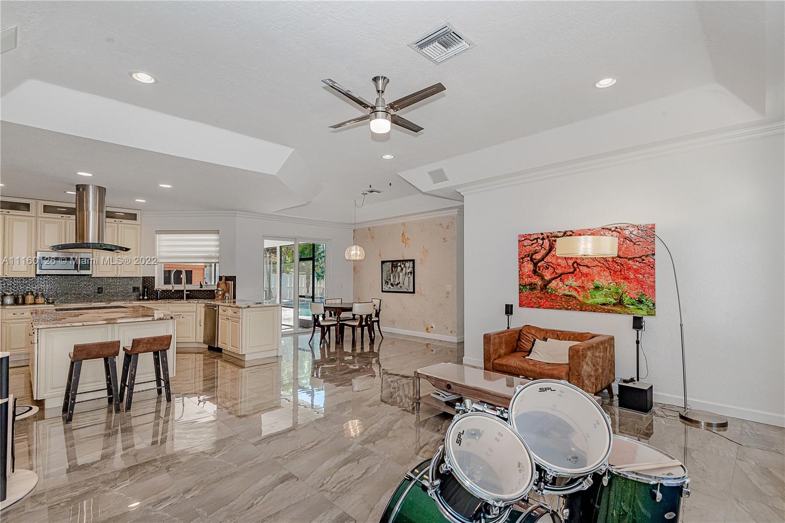 One of a kind beautifully and completely remodeled 4 bedroom/ 2.5 bathroom 3 three car garage split level single family home in exclusive Country Glen gated community. Very popular Windsor model. Large pool, private fenced in backyard. One story with high ceilings. 2020 brand new roof, 2017 impact windows, 2018 impact front door. A/C unit changed in 2018. State of the art spacious new kitchen with stainless steel appliances, big cooking island, granite countertops. Tile floors throughout the entire house. All bathrooms are remodeled. Brand new garage door. Custom closets throughout. Custom Zebra Blinds throughout. Freshly lushly landscaped front and back. Large Screened enclosed patio. Freshly painted interior and exterior.