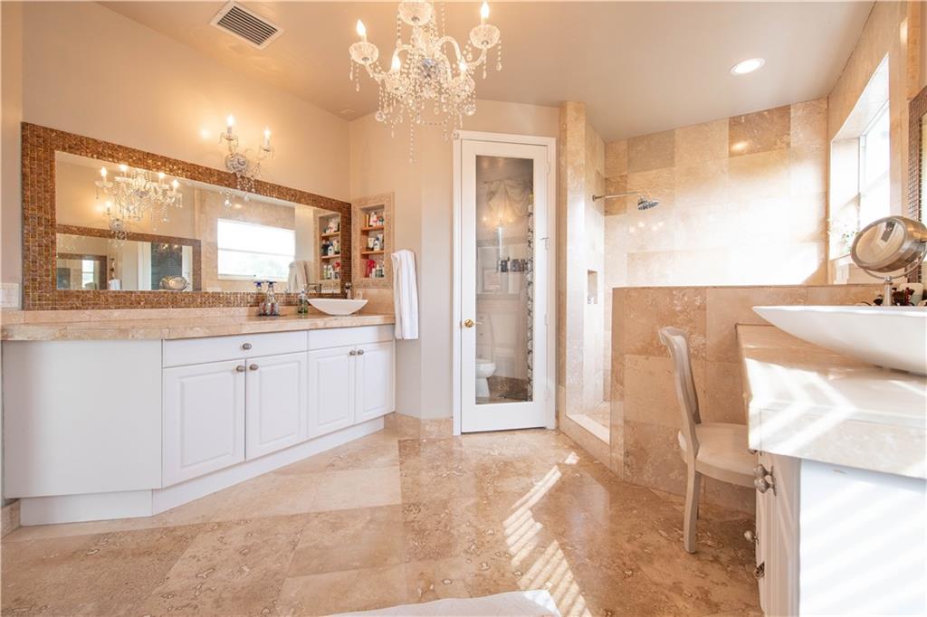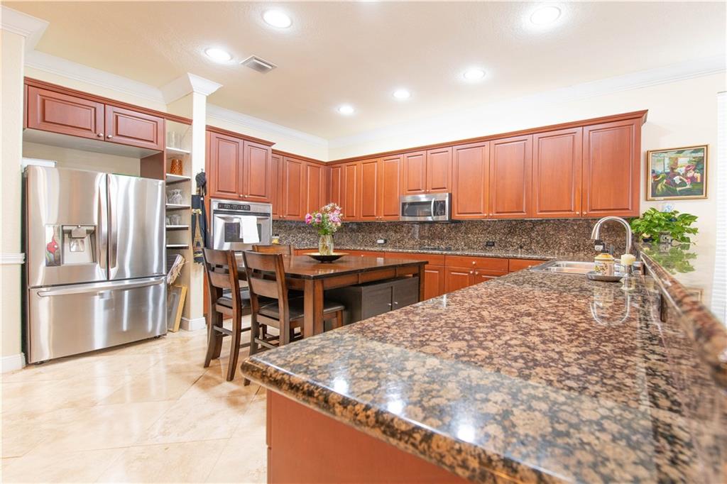 Magnificent and spacious corner lot features 5 oversized bedrooms and 6 bathrooms. The first floor has marble floors throughout and includes 2 bedrooms & 3 full bathrooms with new Jacuzzi, formal living & dining room, gourmet kitchen with real wood cabinetry & granite countertops, new microwave, breakfast area, large family room, and new water heater. Custom oak staircase. The second floor offers a huge master bedroom with a veranda and a remodeled bathroom with new Jacuzzi tub, the 2 guest bedrooms are en-suite with remodeled bathrooms including 2 new Jacuzzis tub, and new A/C unit. The outdoor space has a beautiful private patio, new fence, new canopies, lush landscaping, and an outside cabana bathroom.