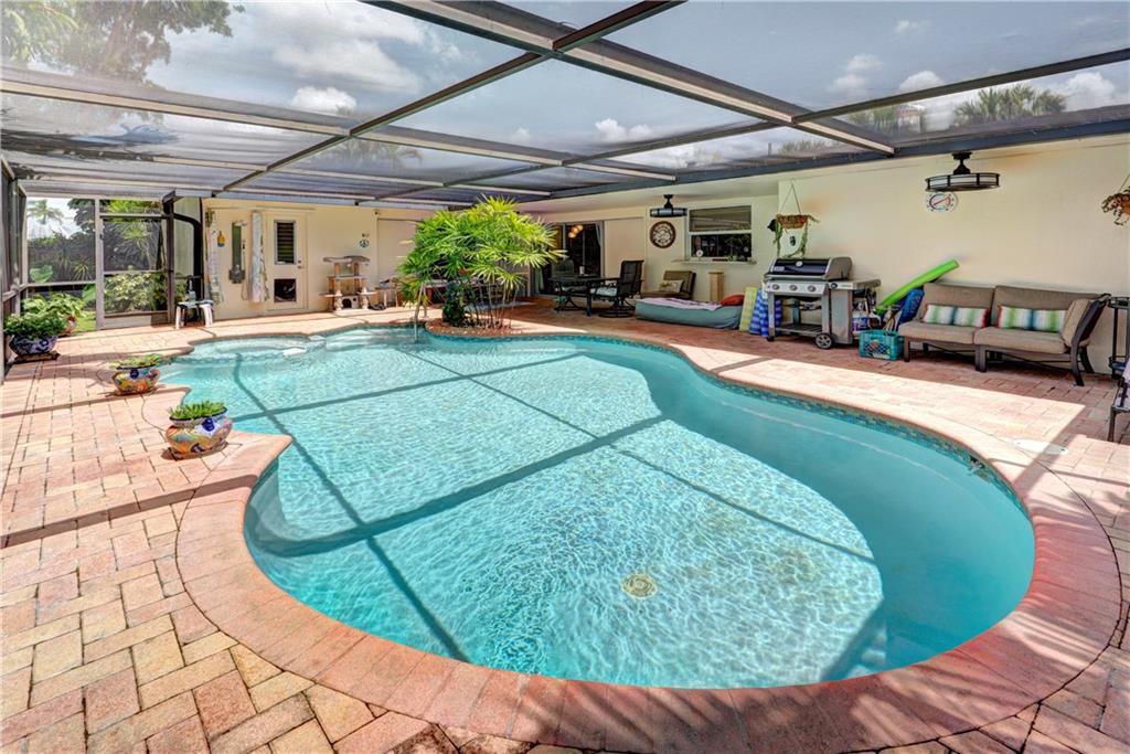 TROPICAL OASIS!! Pretty Pasadena Lakes pool home w/ a 1.5 car garage. 3 bedrooms + a den/office. Updated & immaculately kept. Upgraded white modern kitchen equipped w/ Stainless Steel appliances. Beautiful fans & light fixtures throughout home. Hurricane Impact windows & doors throughout, New Hurricane sliders in both front room and master bedroom (sliders are wall sliders and push all the way back to open the entire wall, installed approx. 3 yrs ago), outdoor shower, cabana door in master bath, lots of storage space & the washer/dryer stay. Tankless water heater in garage. Large screened in paver patio with a tropical setting. Pass through window from kitchen to patio-perfect for entertaining. Back yard is fenced. Pets welcome! Dog park close by! Salt water pool!